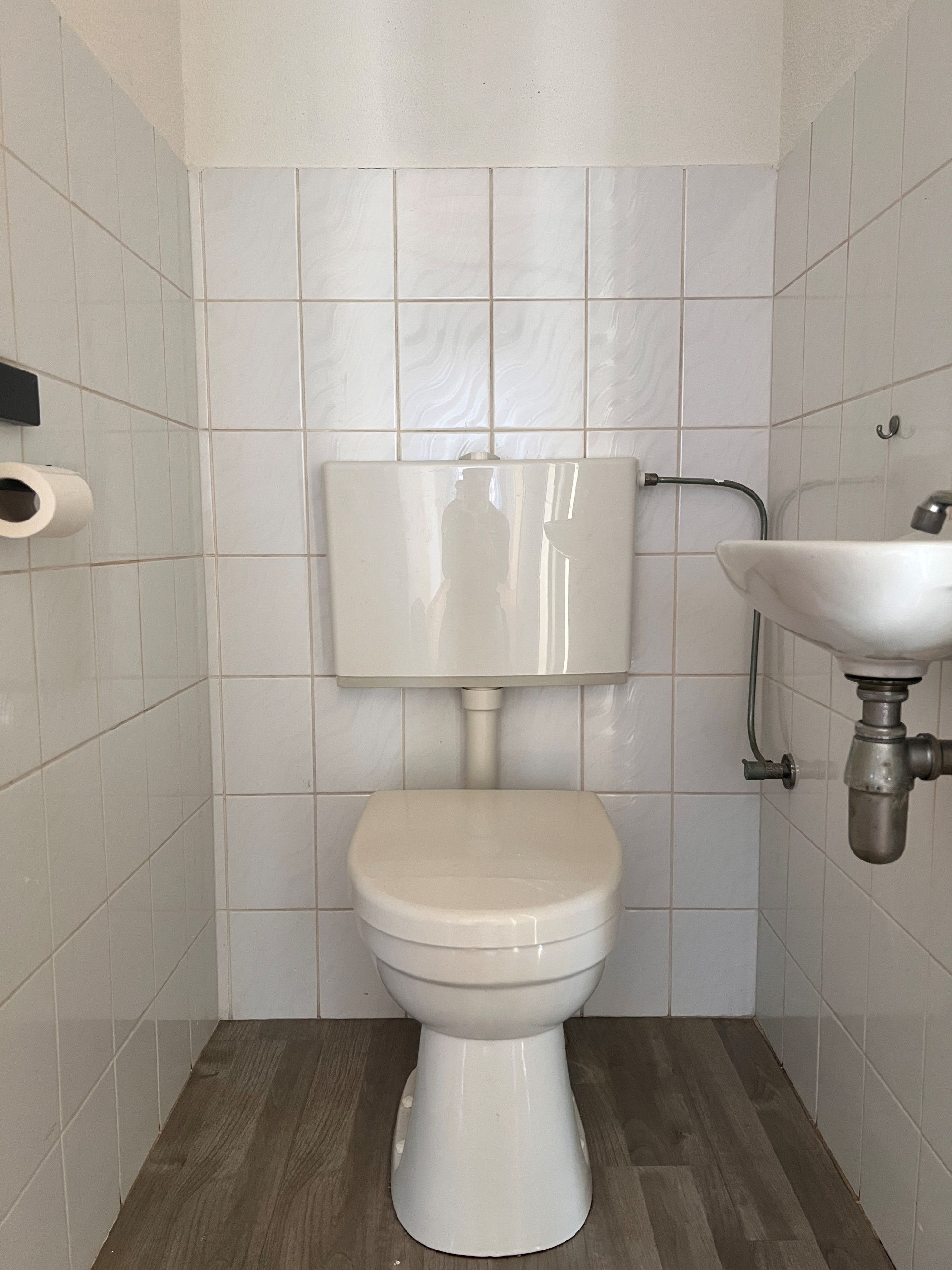 The spacious landing gives access to the living room (approx. 27m²), the separate kitchen (approx. 11m²) equipped with a 4-burner hob, extractor hood, combi oven, dishwasher, and fridge-freezer. From the kitchen, there is access to the roof terrace at the rear. The landing also leads to the guest toilet, a bedroom/study (approx. 14m²), and the first bathroom (approx. 5m²), fitted with a bath-shower combination, washbasin, designer radiator, and washing machine connection.