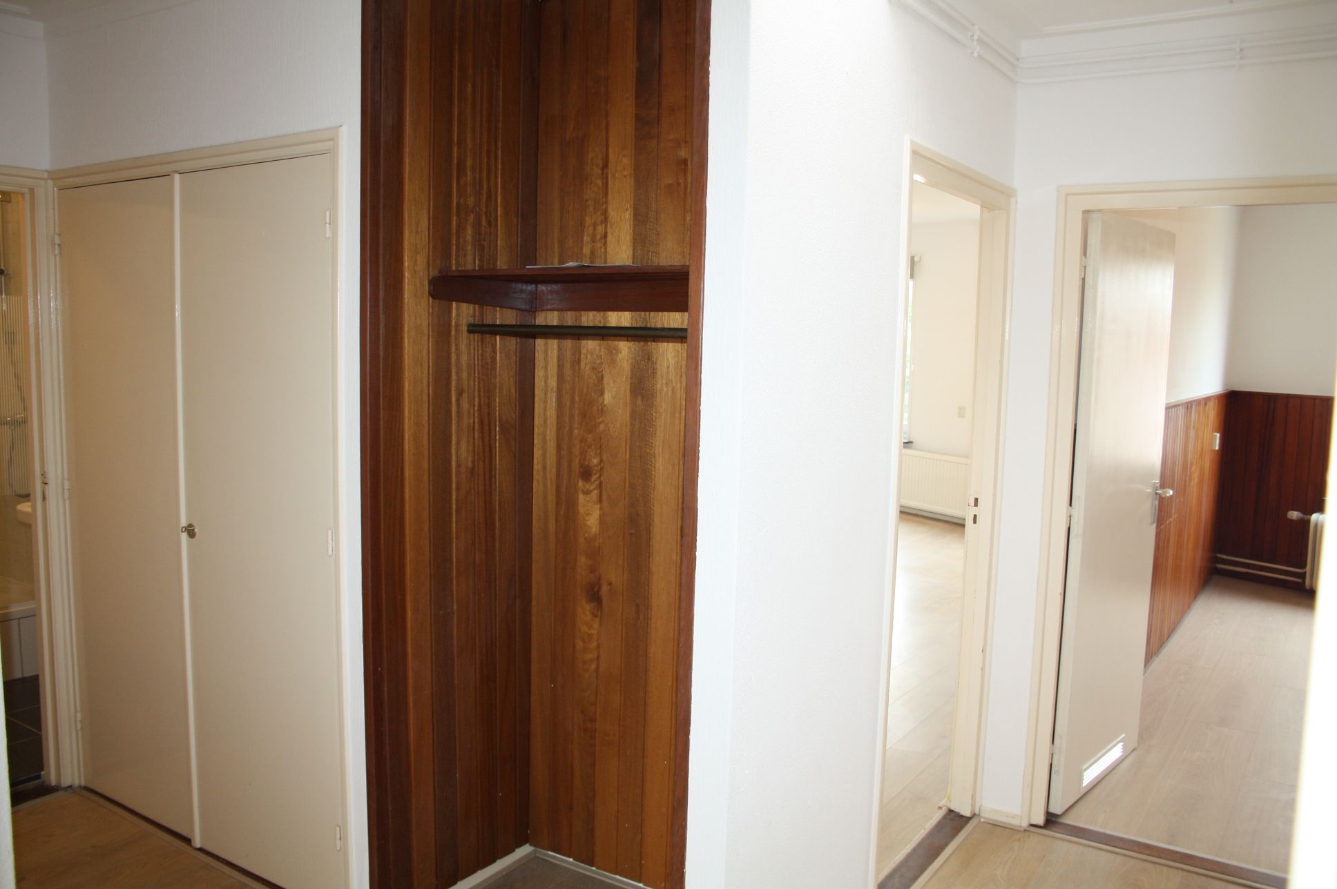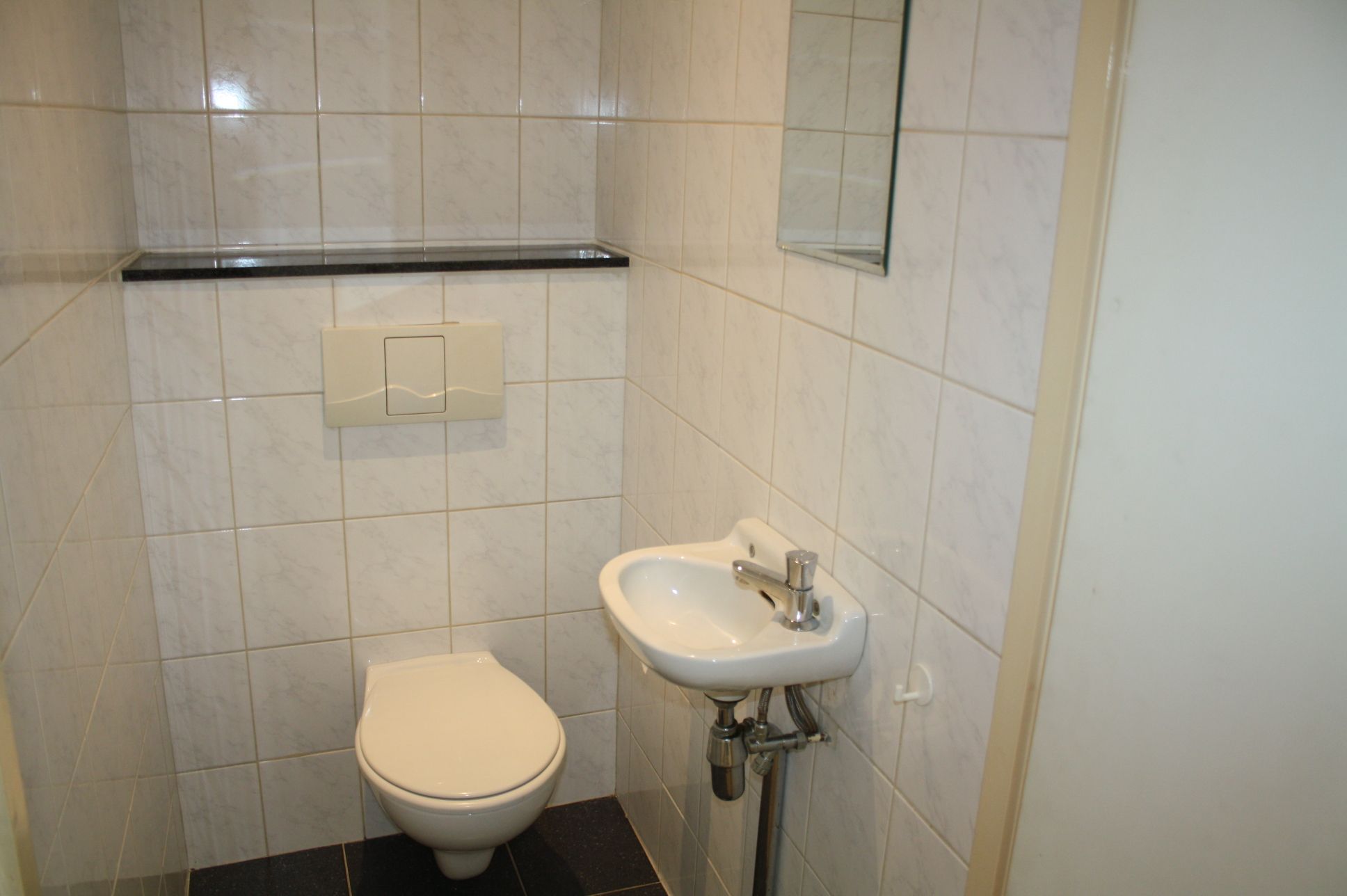 Hallway/entrance with a wall-mounted cupboard. Tiled toilet with a small sink. Living room (4.45 x 6.60 m) with laminate flooring and a beautiful view of the Markt. Closed kitchen (2.90 x 3.80 m) with a neat built-in kitchen and appliances (washing machine, dishwasher, refrigerator with freezer compartment, 4-burner gas stove, extractor hood, and dishwasher). Two bedrooms, both with laminate flooring.
