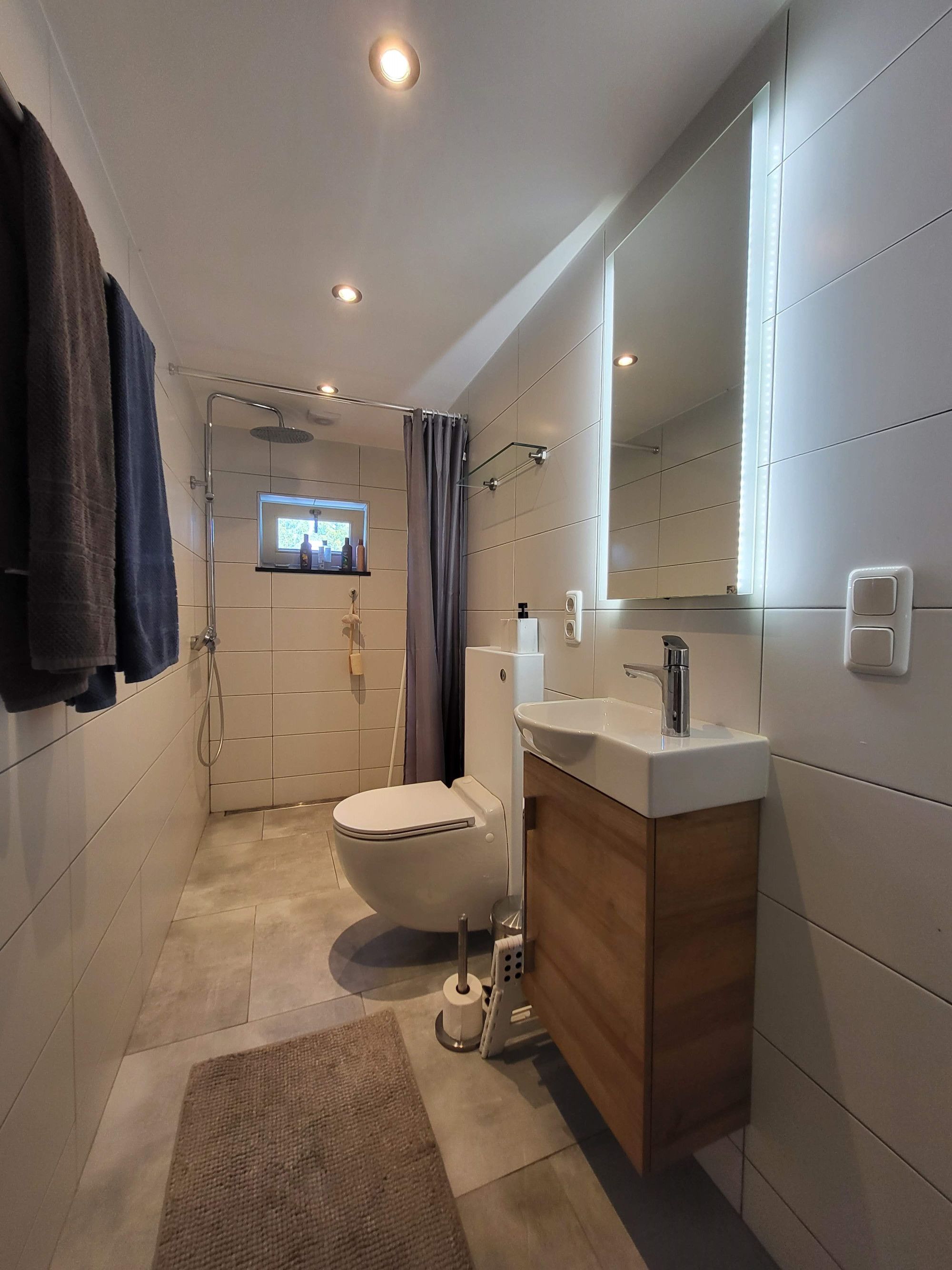 This holiday home, situated in the deep back garden of the house at Asseltsestraat 7 in Swalmen, Roermond, is accessible via a side gate and the back garden of that house. Built in 2021, the holiday home features a nice corner kitchen, a cozy living room with a sitting area, a bathroom with a toilet and walk-in shower, and a sleeping loft. This sleeping loft is situated on the 2nd floor and is accessible via a loft ladder.