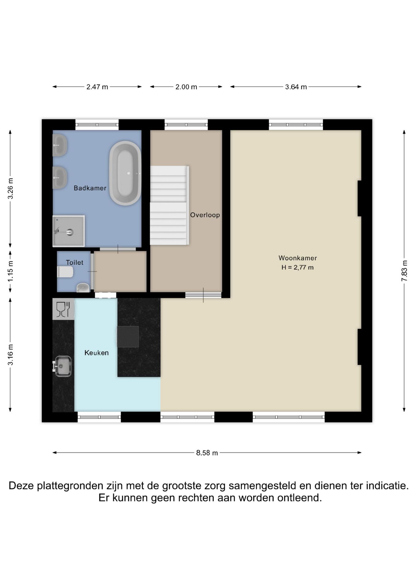 Alle door ons kantoor verstrekte informatie omtrent onroerende zaken, moet beschouwd worden als een uitnodiging om in onderhandeling te treden, en is geheel vrijblijvend! Alle vermelde maten en afmetingen zijn slechts bij benadering. Aan deze beperkte informatie kunnen geen rechten worden ontleend. Indien in enige documentatie of op enige website informatie staat die niet overeen komt met de werkelijkheid, dan geldt de feitelijke situatie waarin de woning zich bevindt, zoals koper deze tijdens de bezichtiging heeft kunnen waarnemen, en wordt de woning in deze feitelijke situatie/staat verkocht. Een (eventueel) bijgevoegde plattegrond dient uitsluitend als globale indicatie/visualisatie. Hieraan kunnen uitdrukkelijk geen rechten worden ontleend.