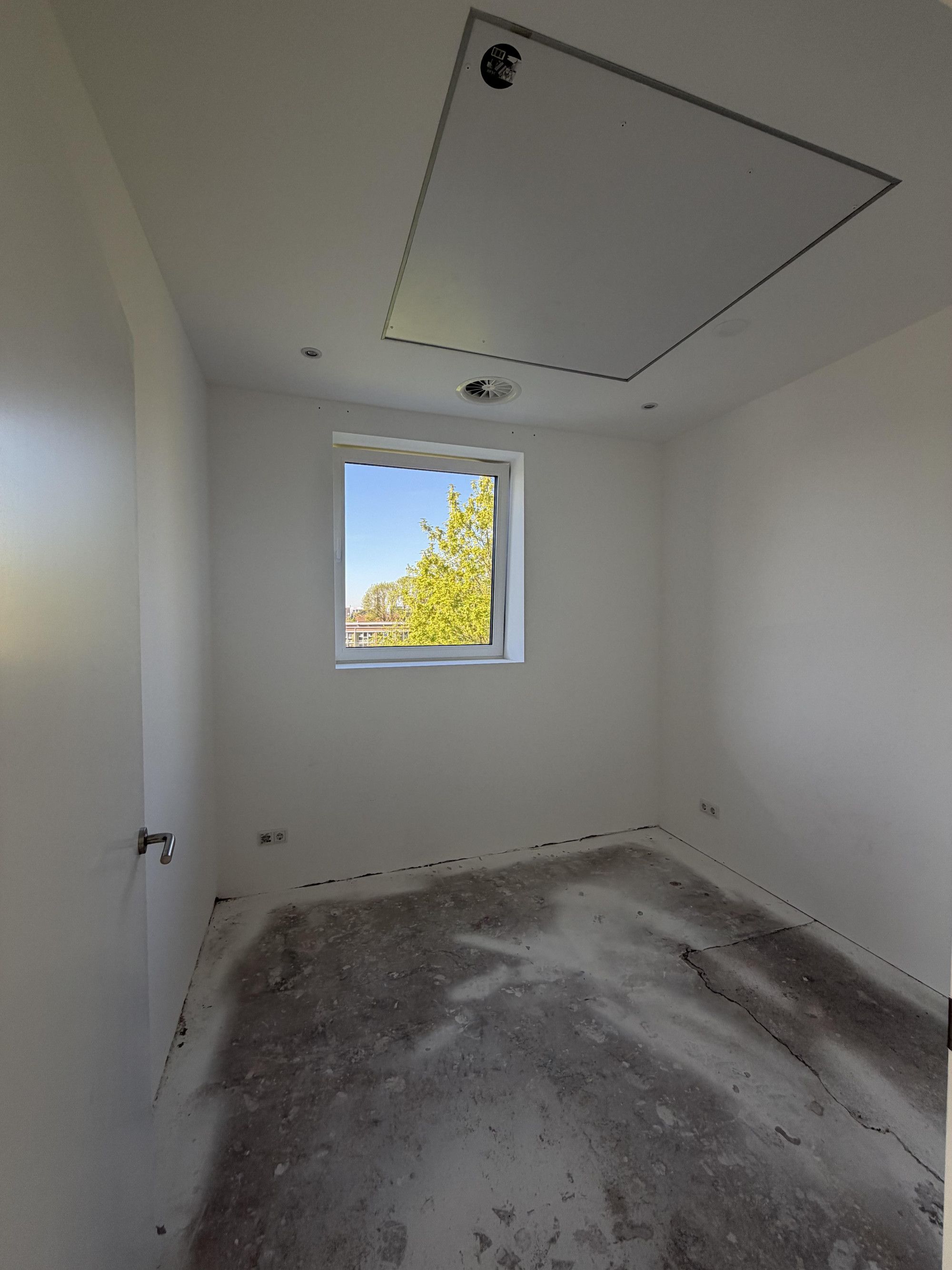 De open keuken is volledig uitgerust met inbouwapparatuur. De badkamer is voorzien van een inloopdouche en een wastafel met meubel. Daarnaast is er een separate toiletruimte aanwezig. Het appartement beschikt over twee slaapkamers, waarvan één ruime hoofdslaapkamer en één kleinere slaapkamer. Op de gang bevindt zich een interne berging met aansluitingen voor witgoed.