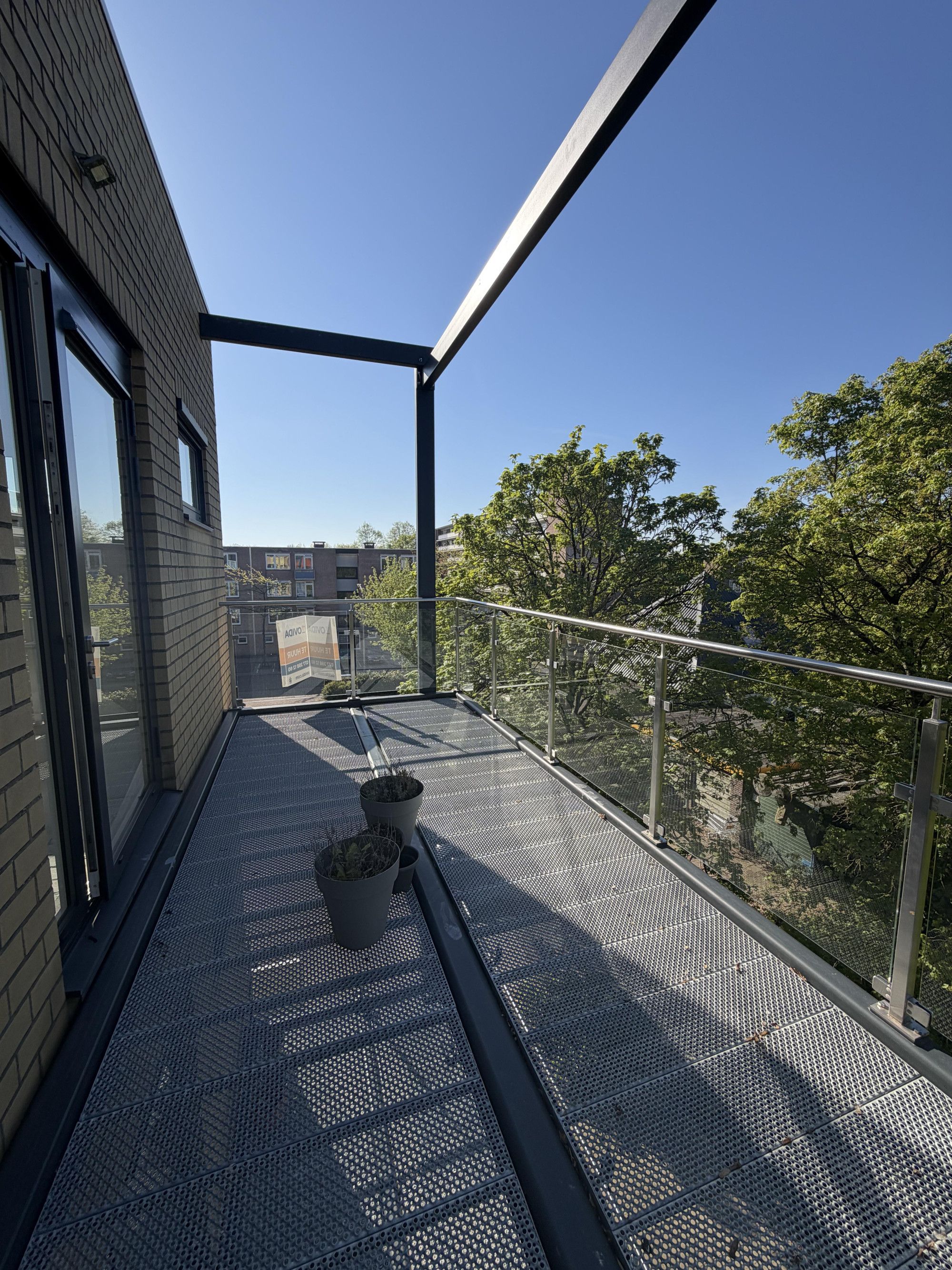 Via de entree komt u in de hal, die toegang biedt tot alle vertrekken van het appartement. De woonkamer met open keuken is ruim opgezet en beschikt door de hoekligging over veel natuurlijke lichtinval. Vanuit de woonkamer is het balkon bereikbaar met een oppervlakte van circa 10 m².