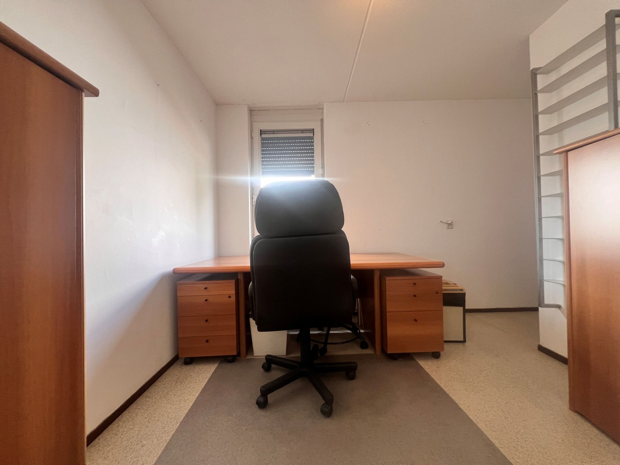 Bedroom 3 (10 m²) at the rear, currently used as an office/workspace.