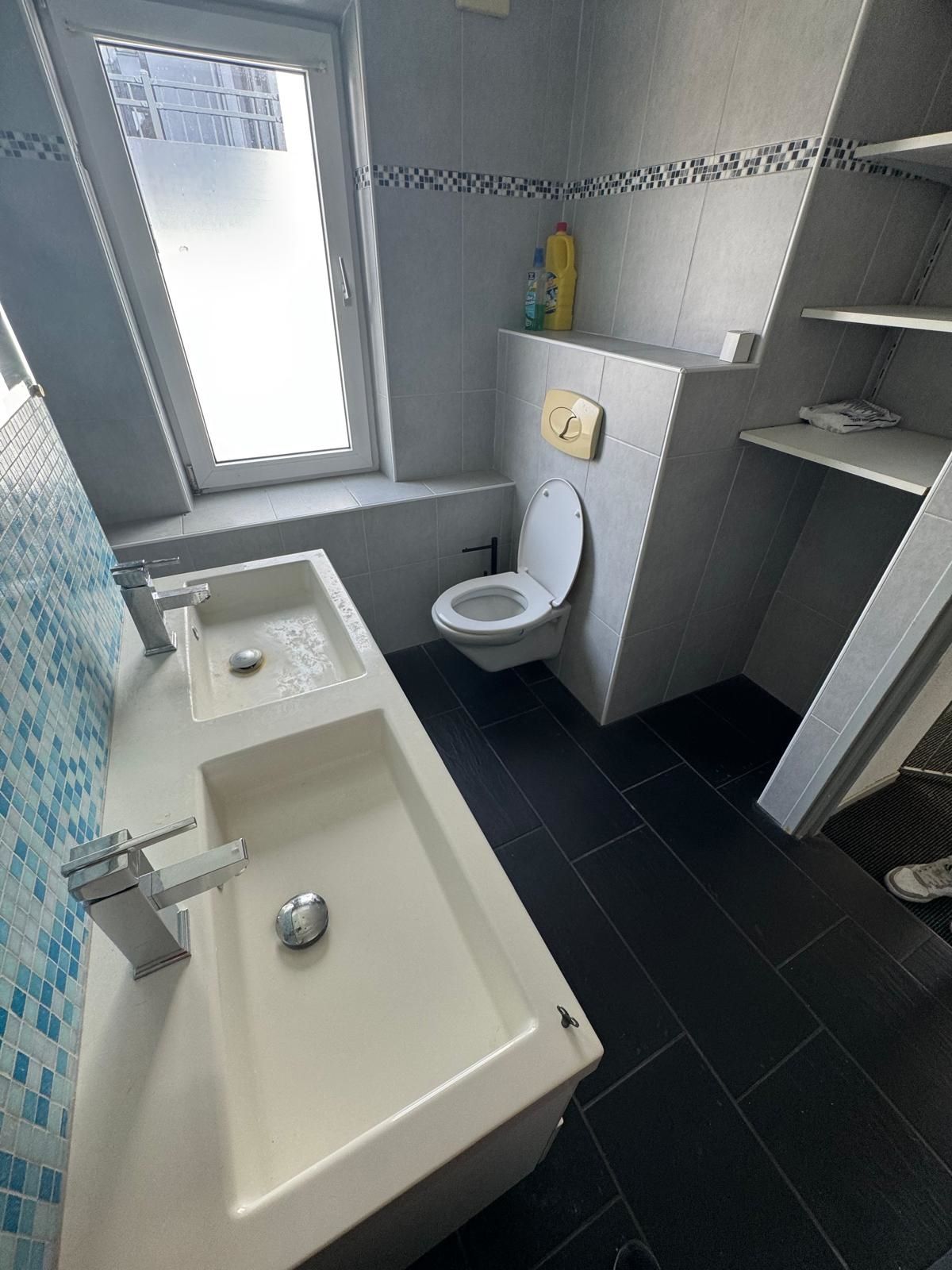een berging. De badkamer is voorzien van een 2 vaste wastafels, toilet en een douche.
