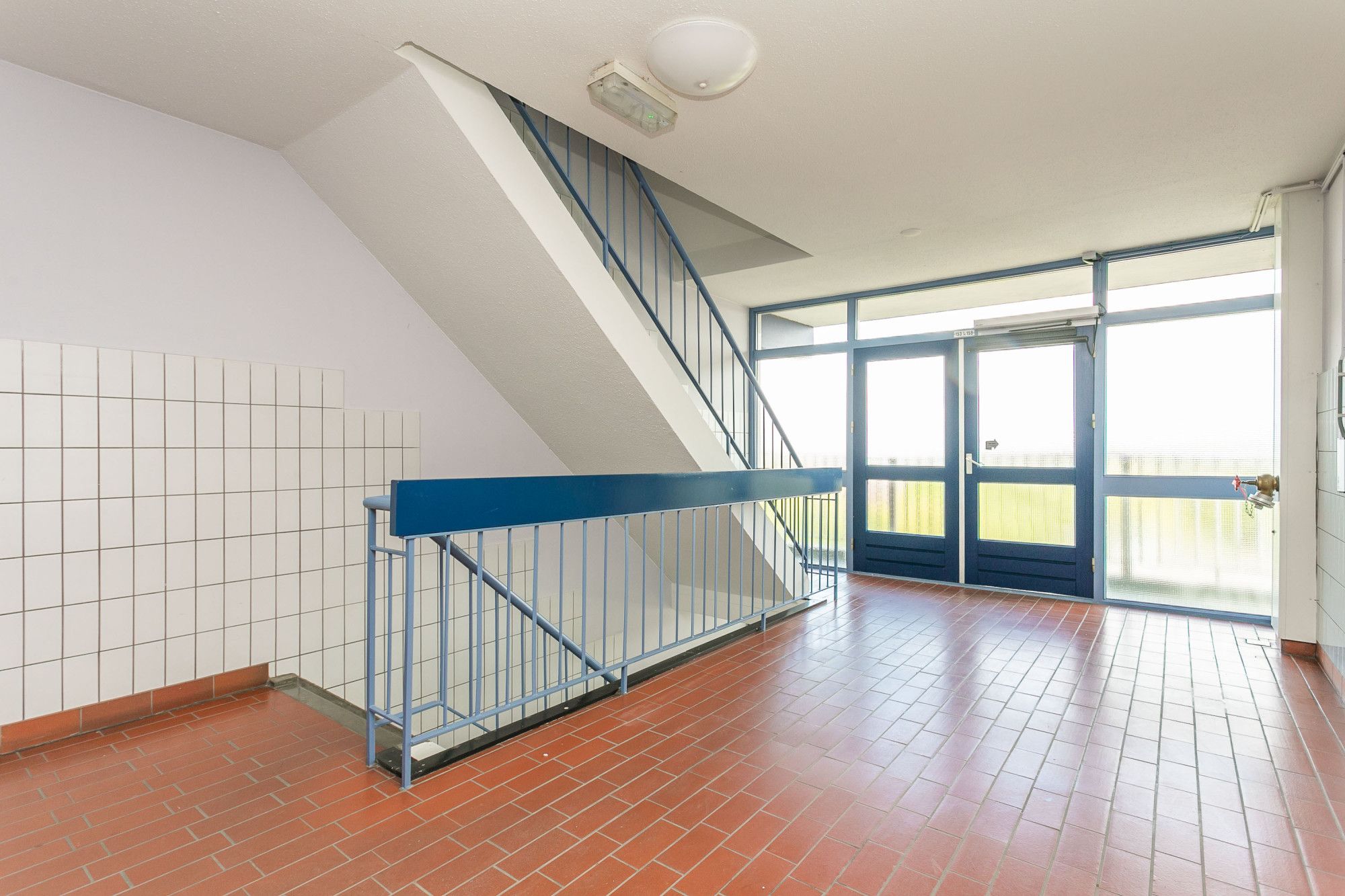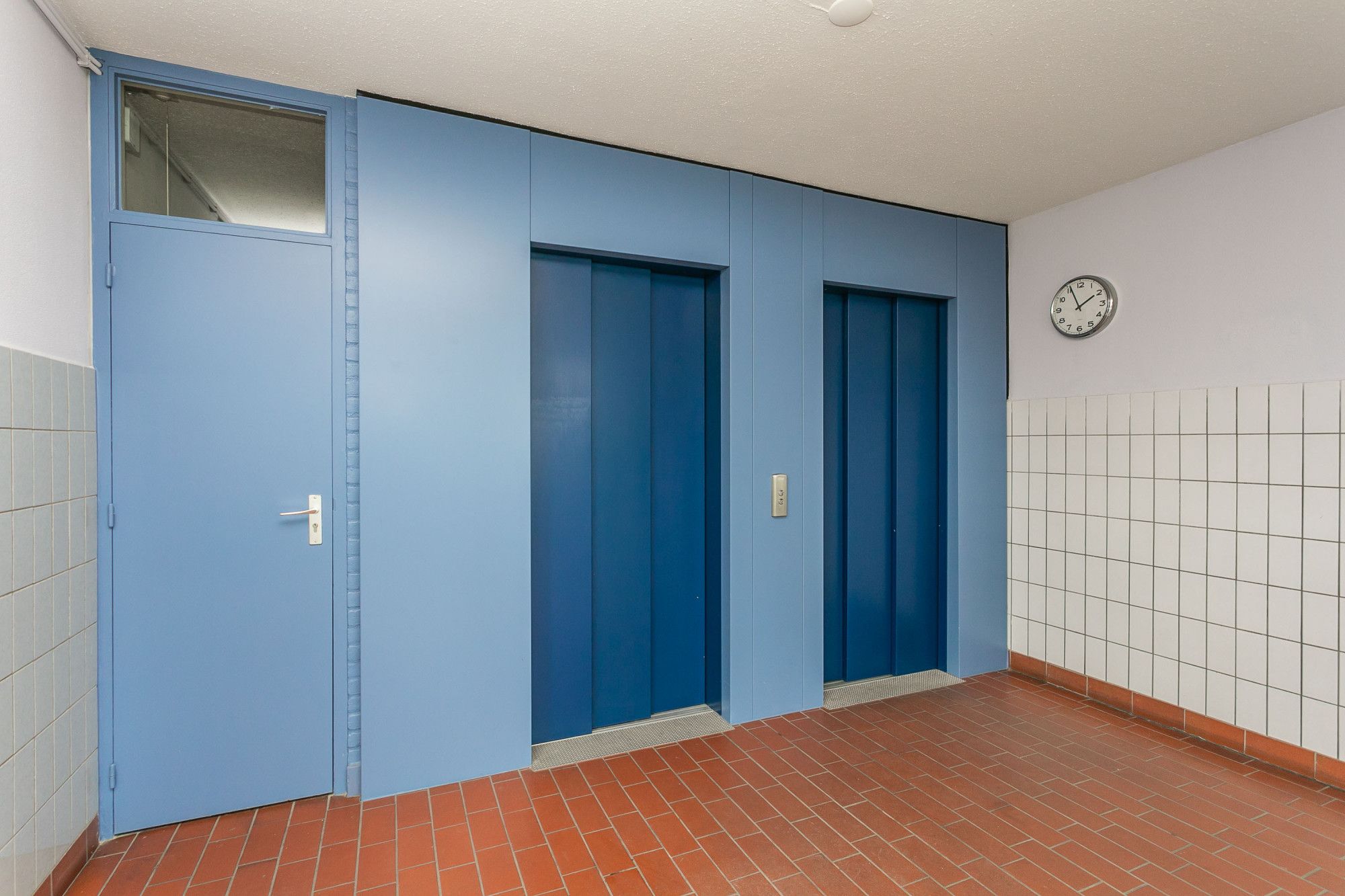 Via de centrale entree met brievenbussen, beltableau, trappenhuis en dubbele lift bereikt u de zevende verdieping. Het appartement ligt rustig aan het einde van de galerij en beschikt tevens over een privé-berging op de begane grond.