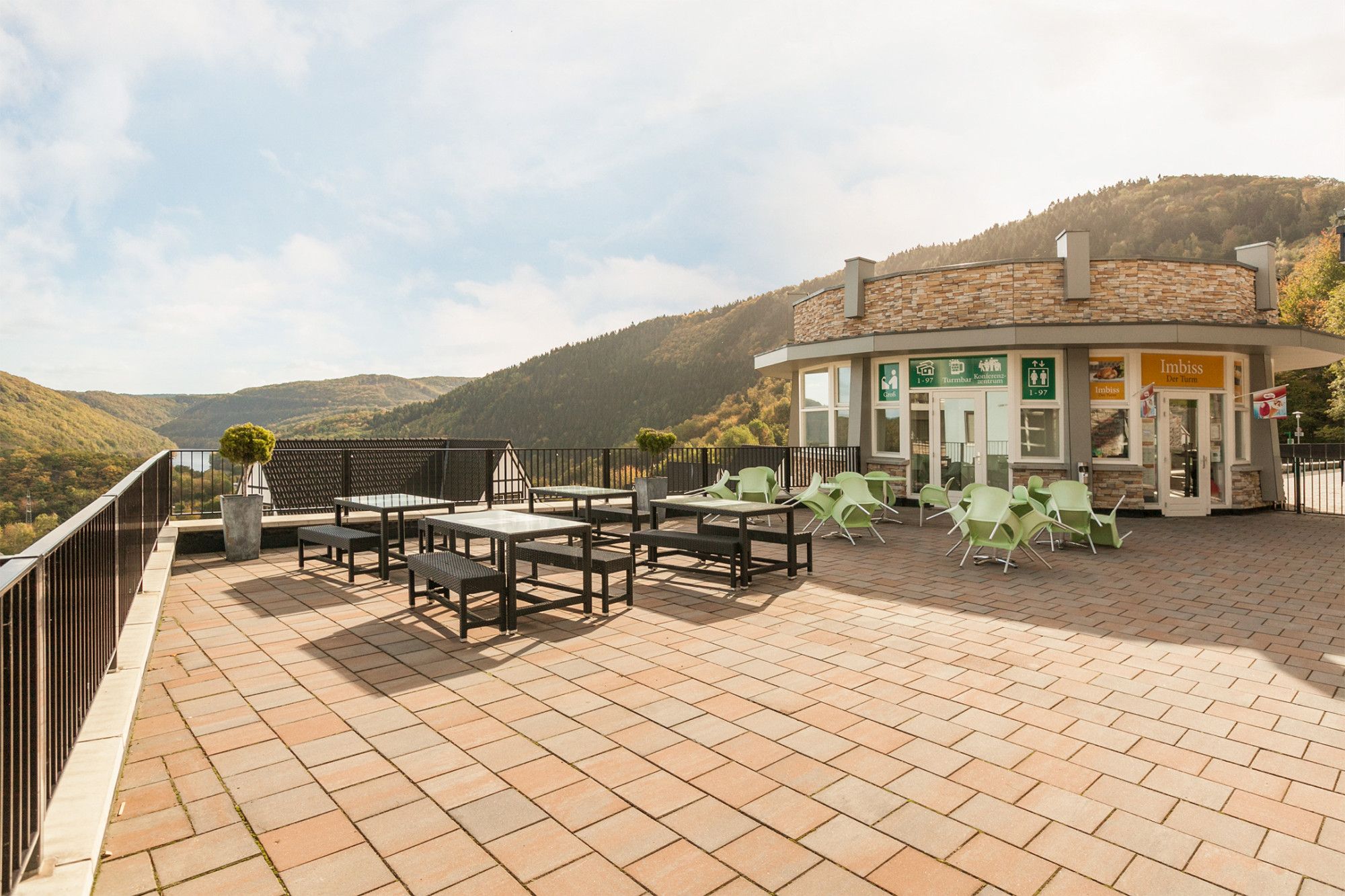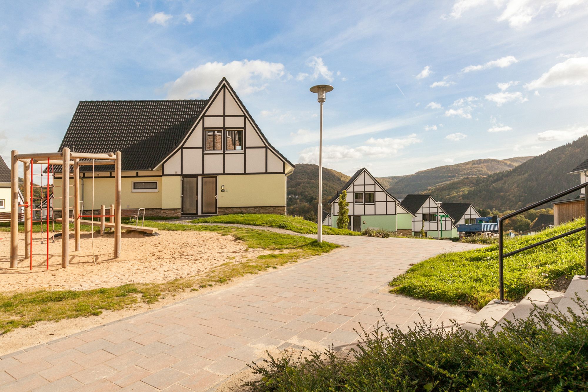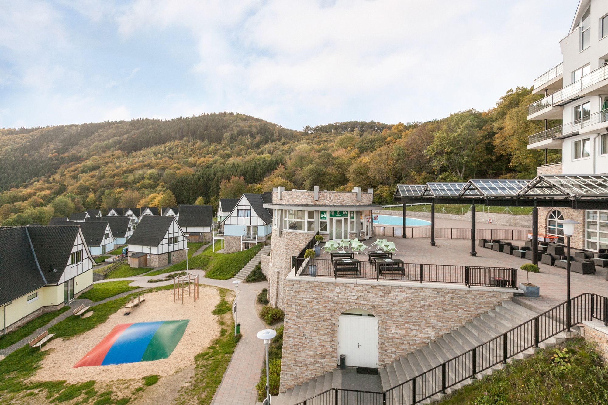 Het uitgestrekte vakantiepark Eifeler Tor beschikt over 96 bungalows en 74 appartementen op of aan de hellingen van het park. Het park heeft een binnenzwembad en een buitenzwembad met kinderbad, evenals verschillende restaurants, een fietsverhuur en winkels. De Eifel is een bijzondere omgeving, waar sporen van vroegere bewoners goed te zien zijn. Pittoreske dorpjes en indrukwekkende burchten, kastelen en kloosters. De omgeving is ideaal voor mensen die houden van uitdagende mountainbiketochten door het Nationaal Park Eifel of van wandelen door de ongerepte natuur.