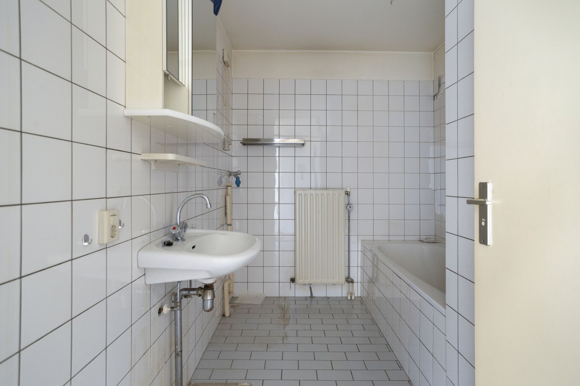 Badkamer voorzien van ligbad, wastafel en aansluiting/afvoer wasmachine.