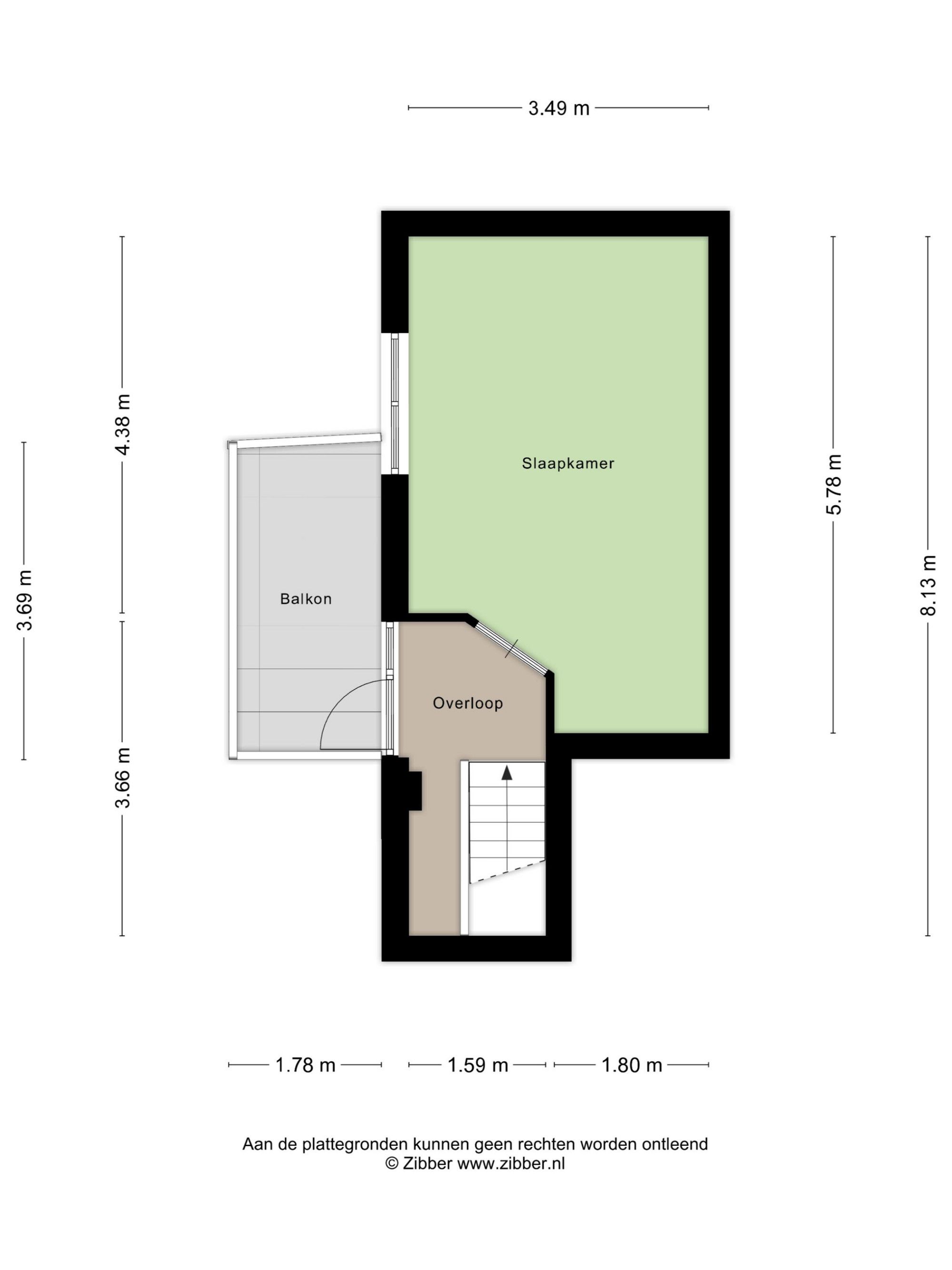 Slaapkamer (circa 5,78/4,38 x 3,49 m).
