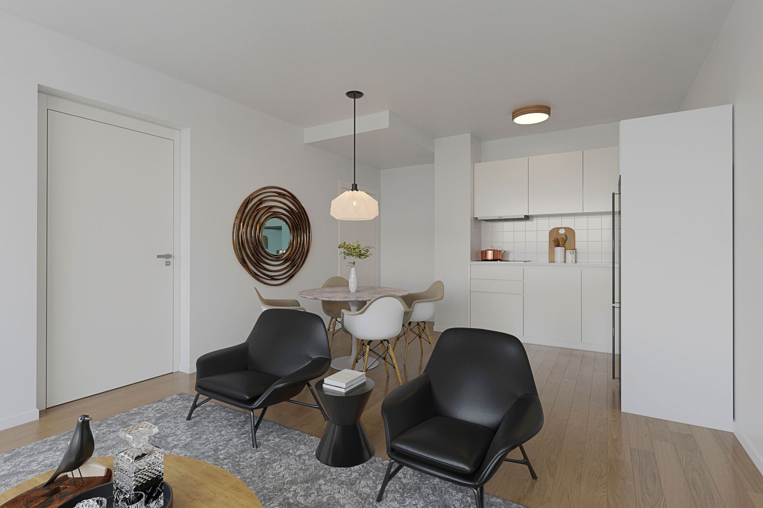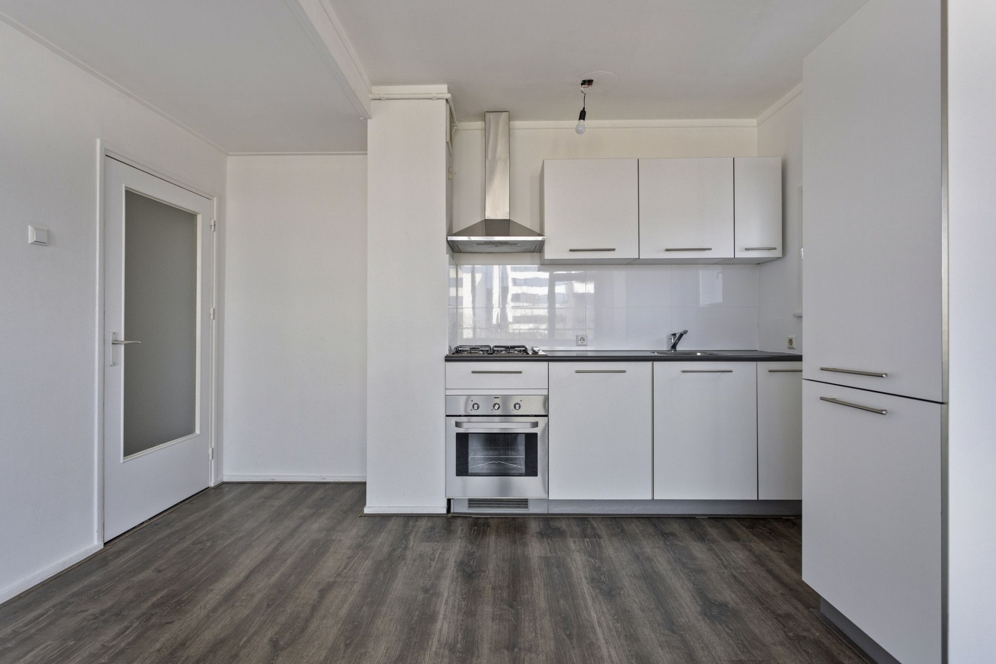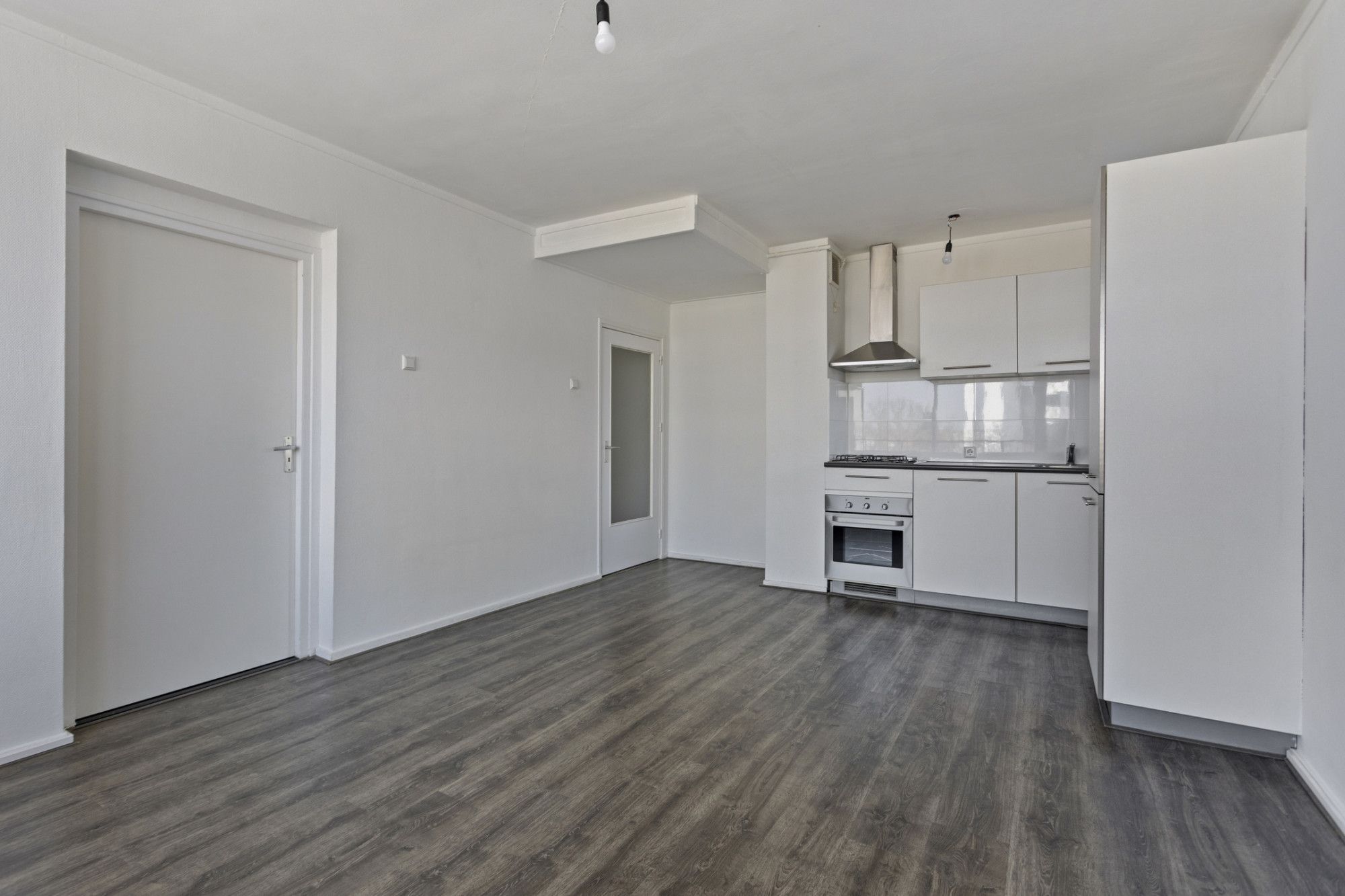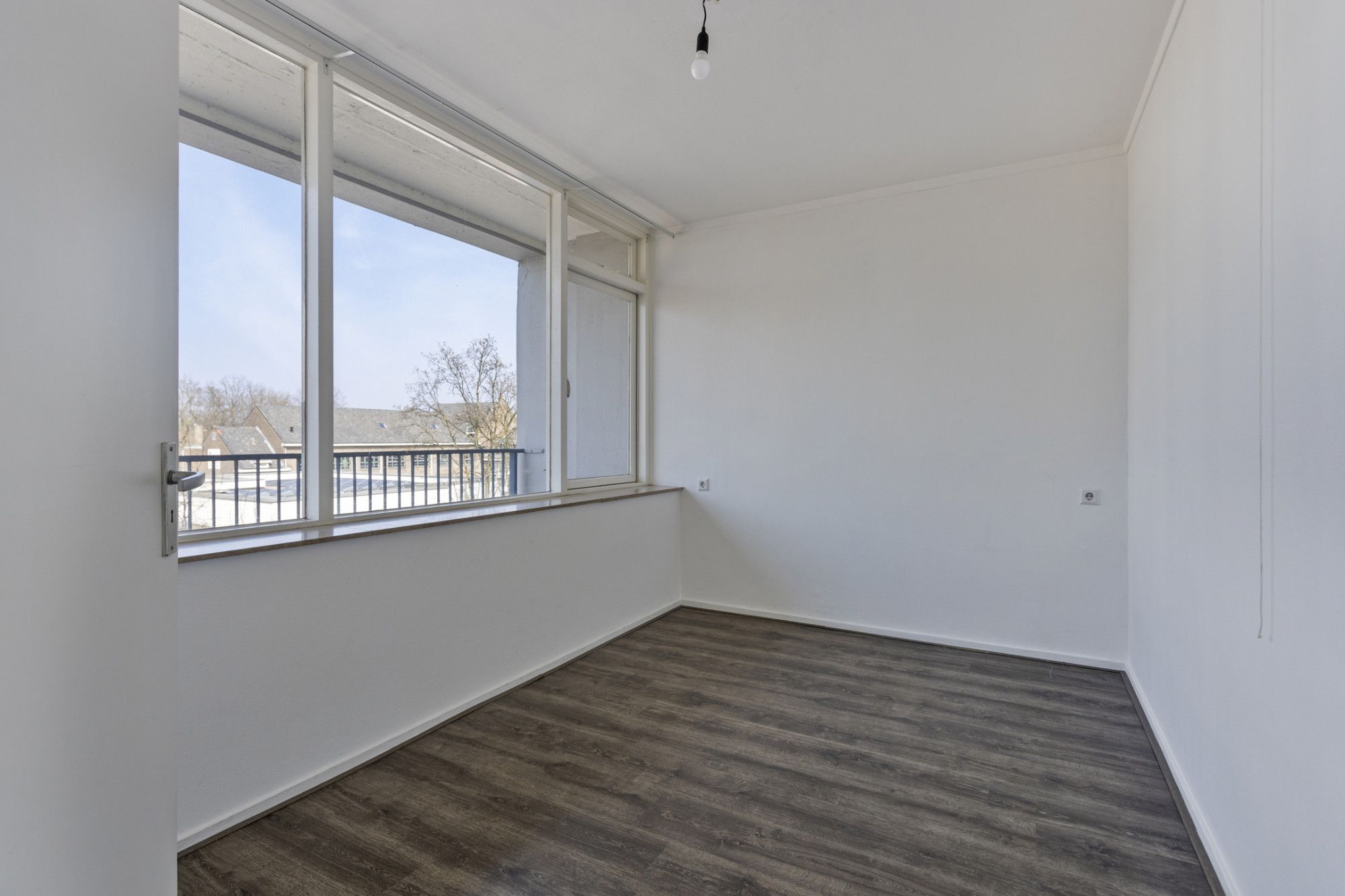 Lichte woonkamer met toegang tot het balkon. Vanuit de woonkamer toegang tot de slaapkamer.