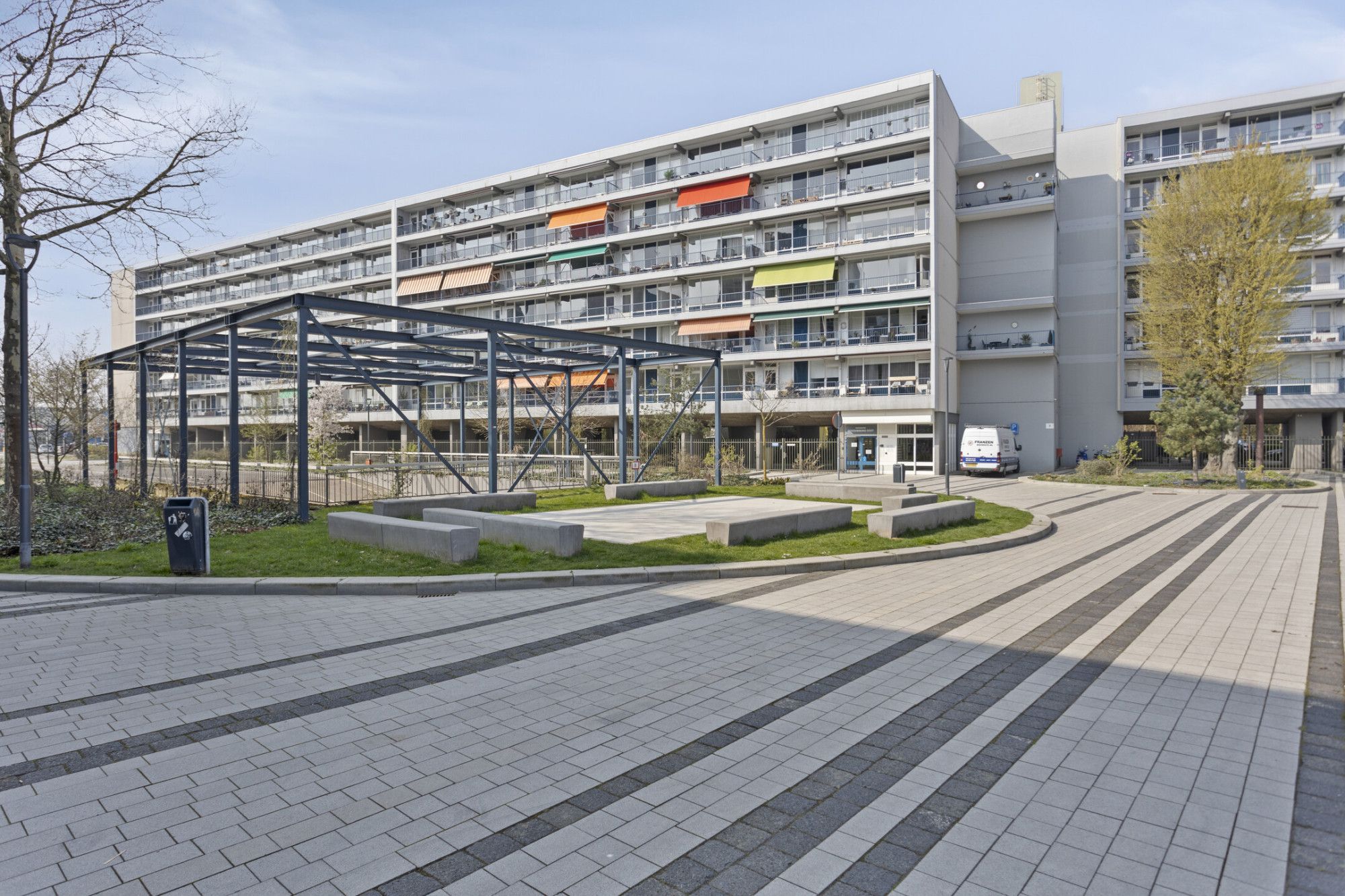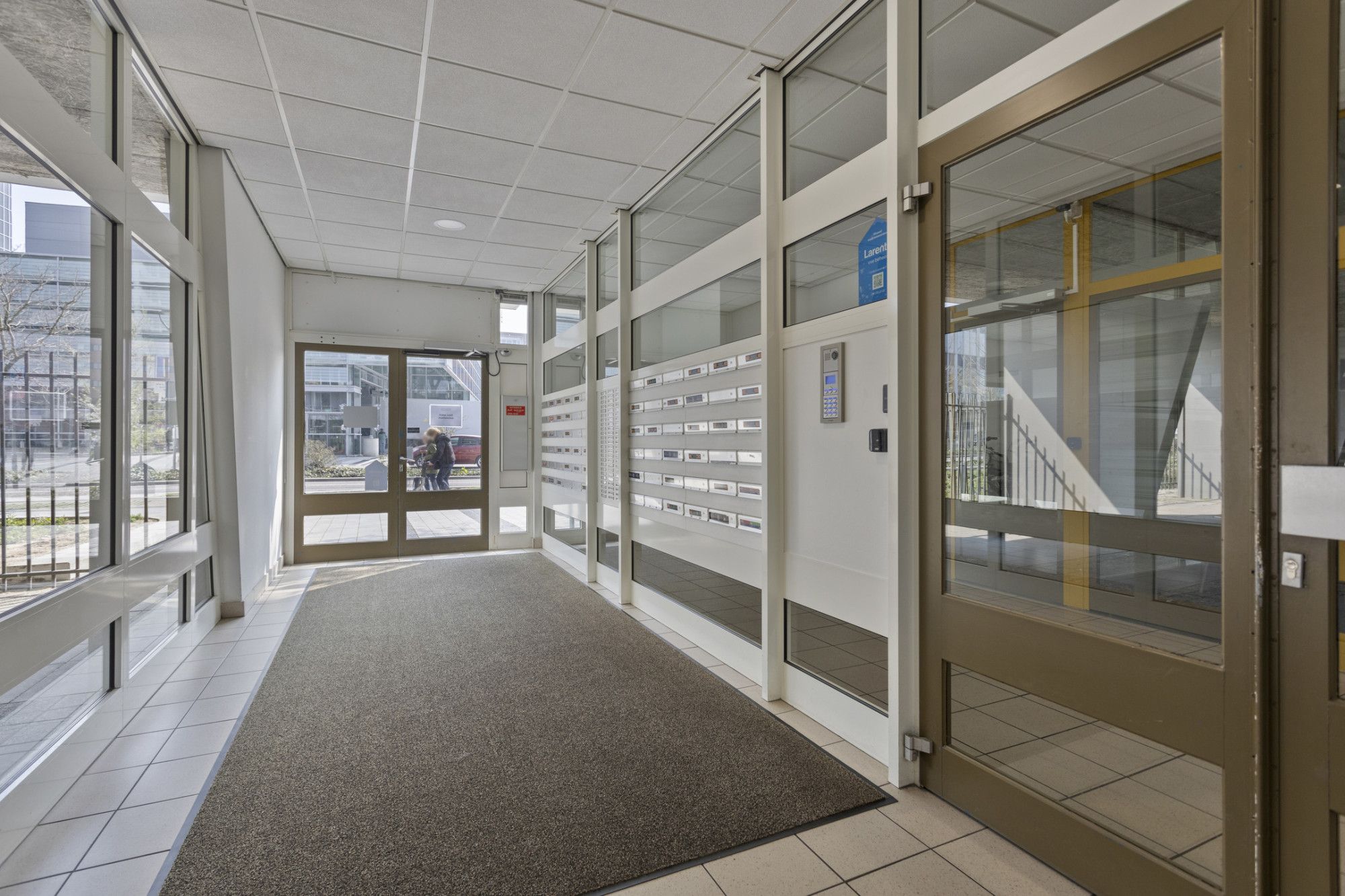 Centrale entree met brievenbussen en lift installatie