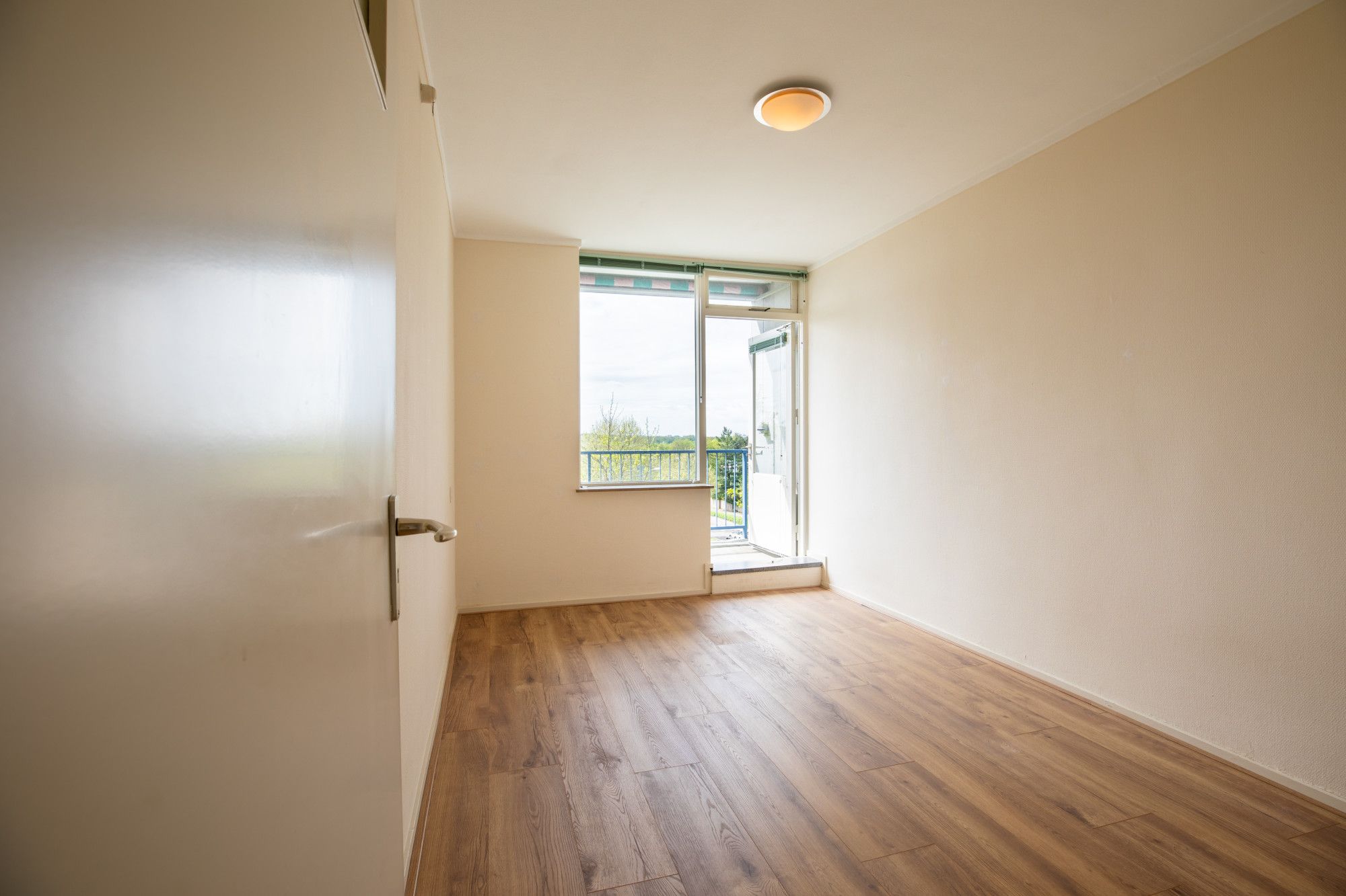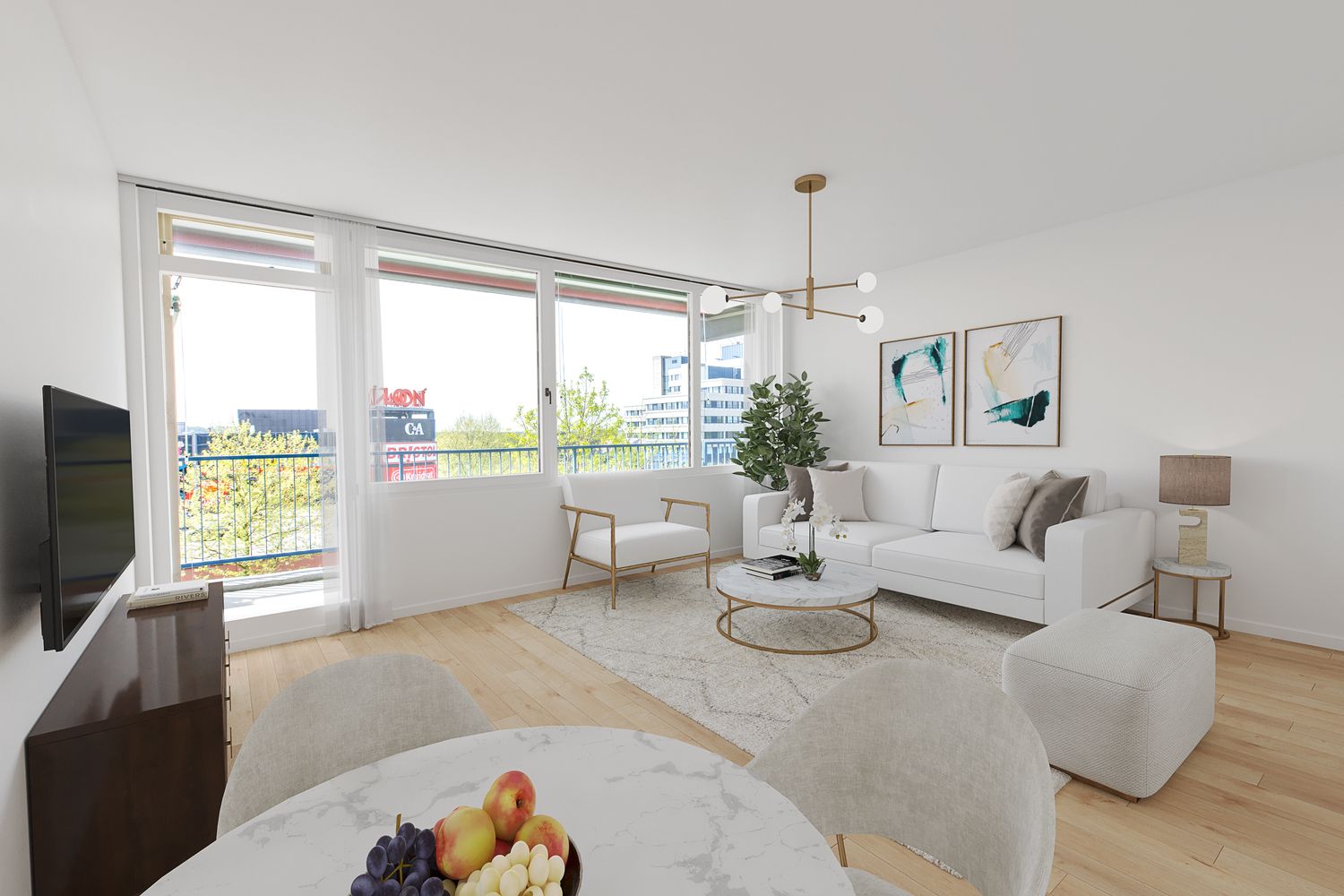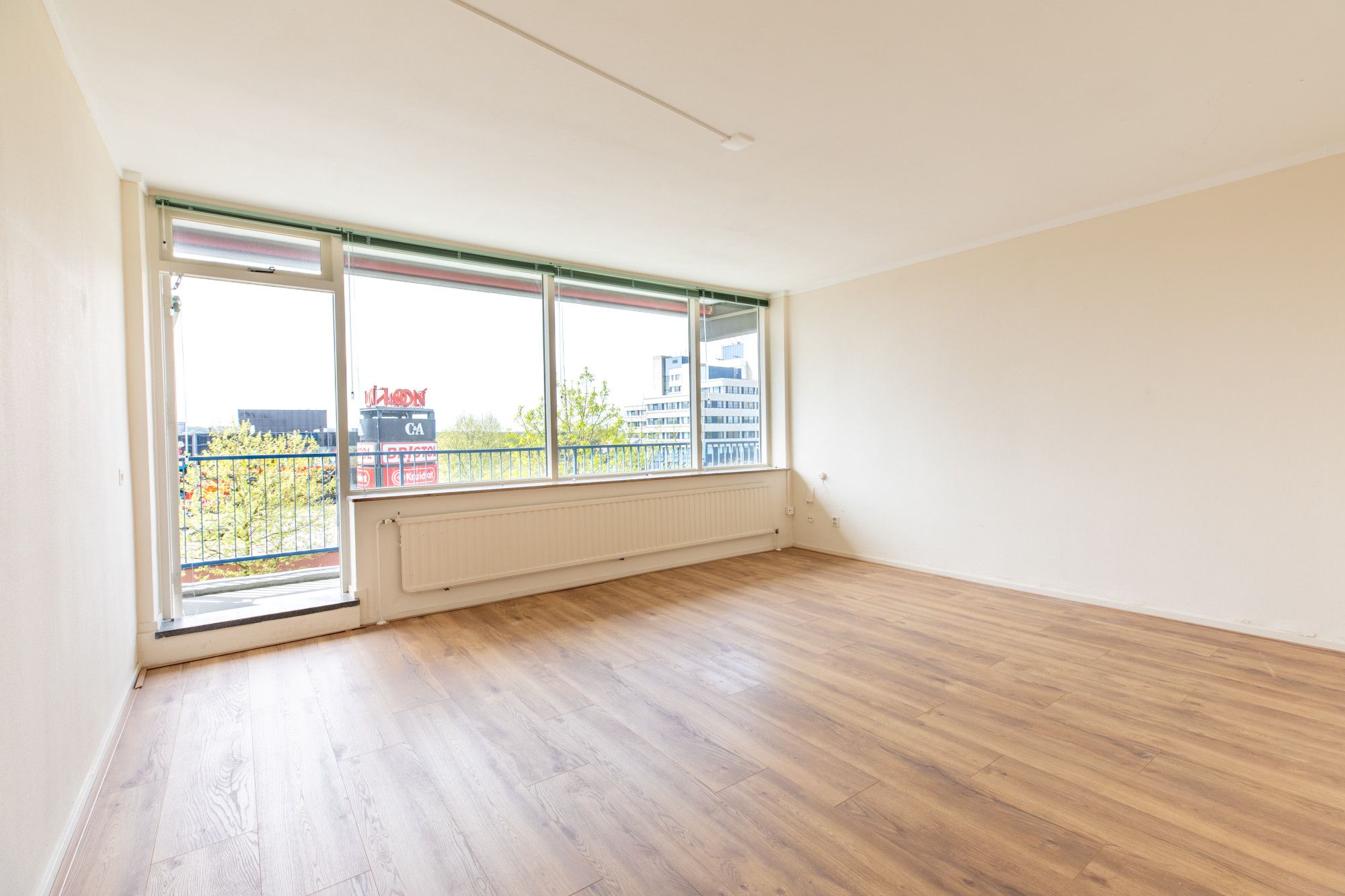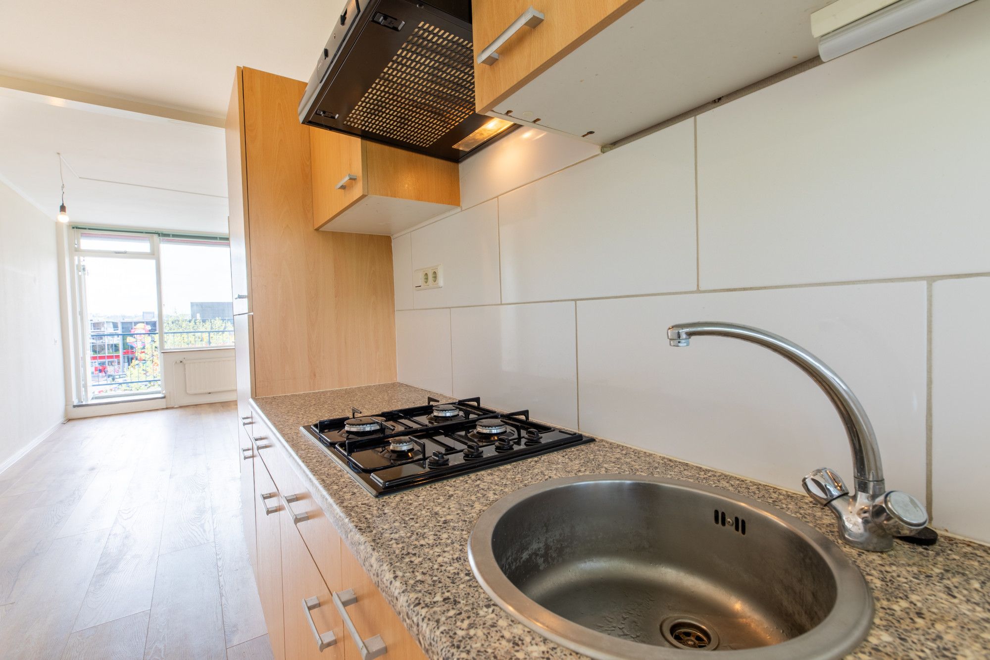 Lichte woonkamer (4.97 x 4.25 m) met vrij zicht met toegang tot het balkon (10.17 x 1.25 m) in open verbinding met keuken (4.15 x 2.07 m) met keukeninstallatie met diverse onder- en bovenkasten.