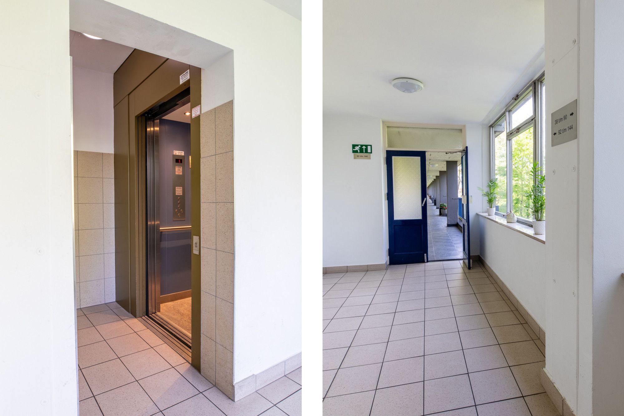 Centrale entree met brievenbussen, bellen plateau en lift installatie.