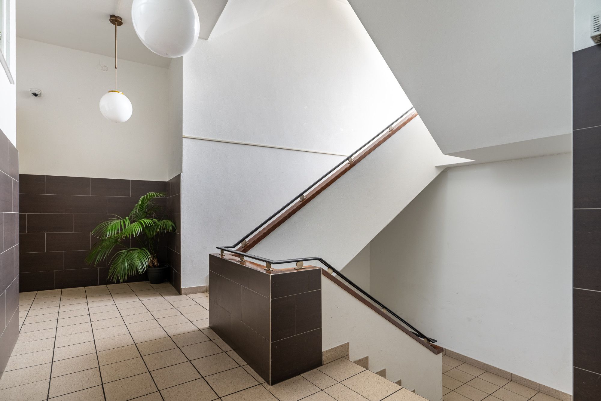 Centrale entree met brievenbussen, bellen plateau en lift installatie