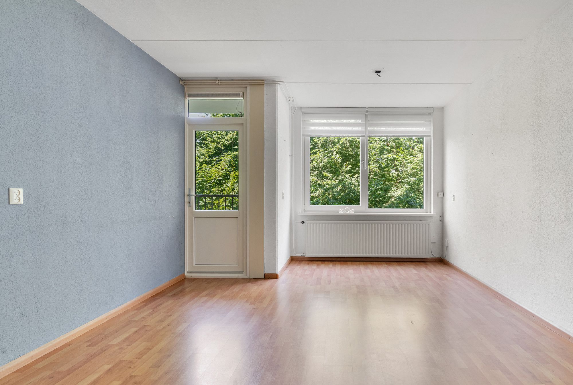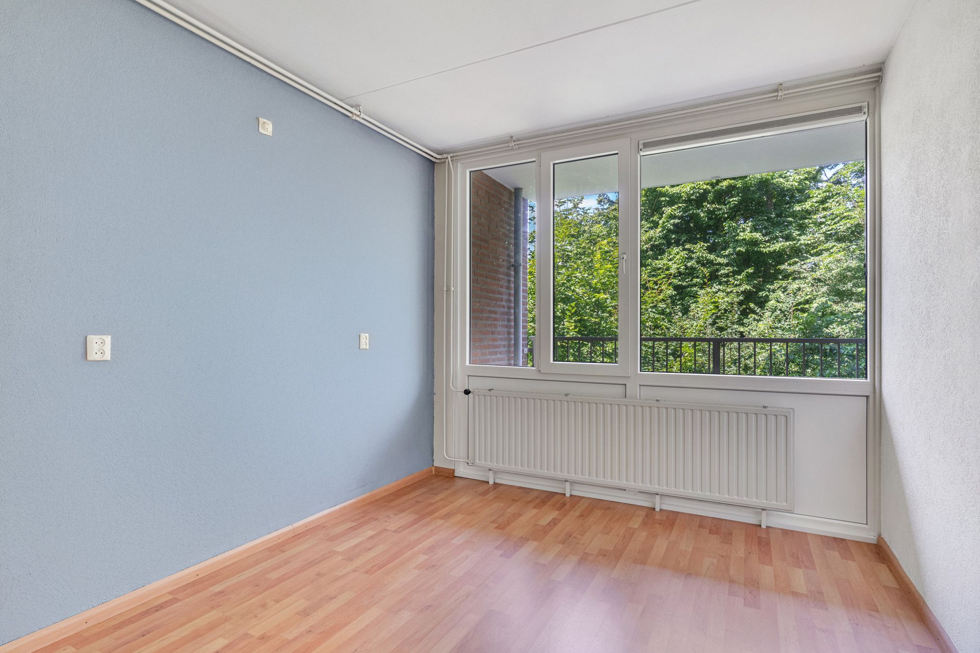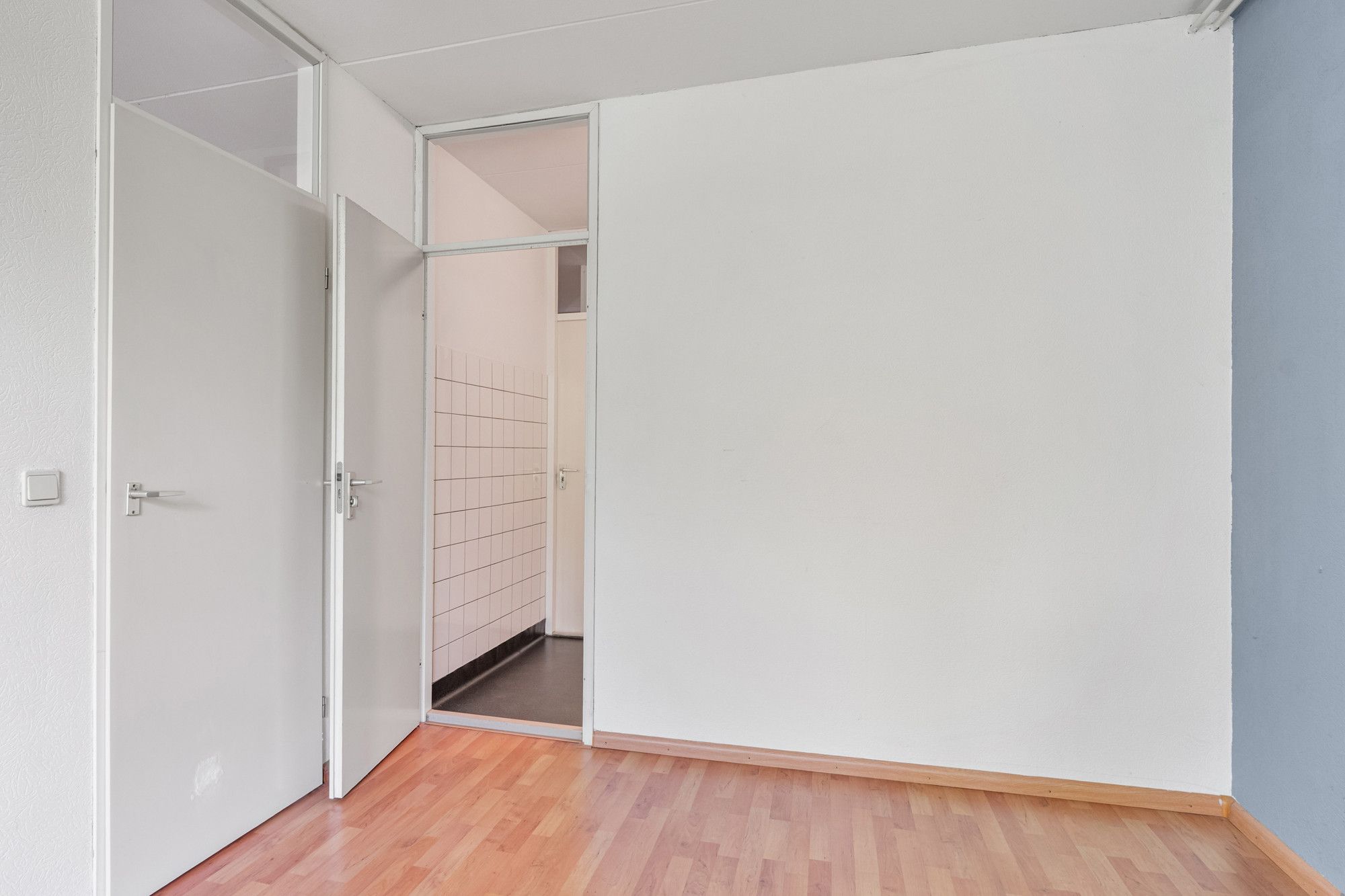 De slaapkamer is royaal en licht, en eveneens gelegen aan de balkonzijde, wat zorgt voor een prettig uitzicht en veel daglicht.