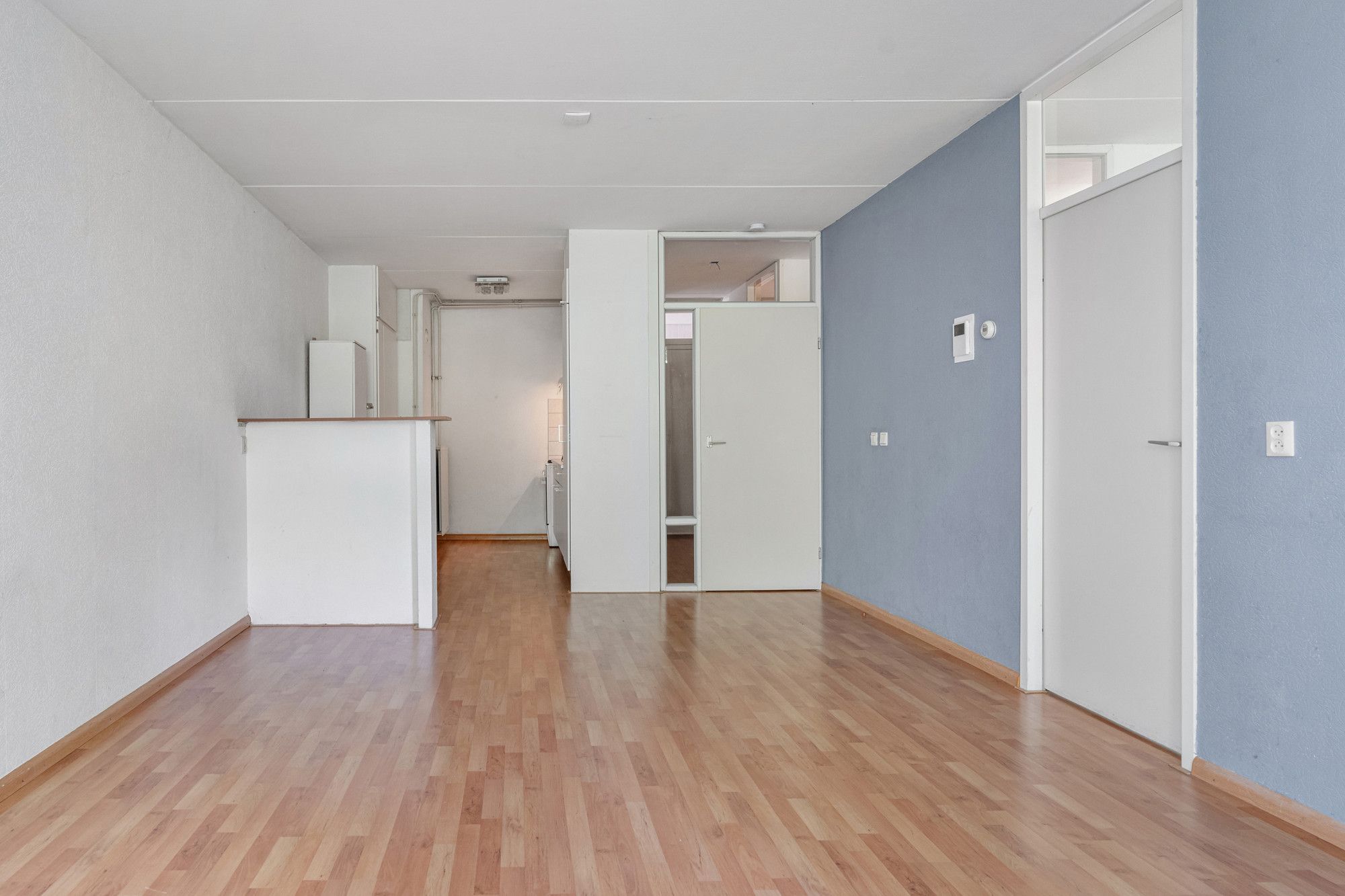 Rechts naast de voordeur van het appartement vindt u de meterkast. Bij binnenkomst komt u in een ruime hal met kapstokmogelijkheid. Vanuit de hal zijn vrijwel alle ruimtes bereikbaar.