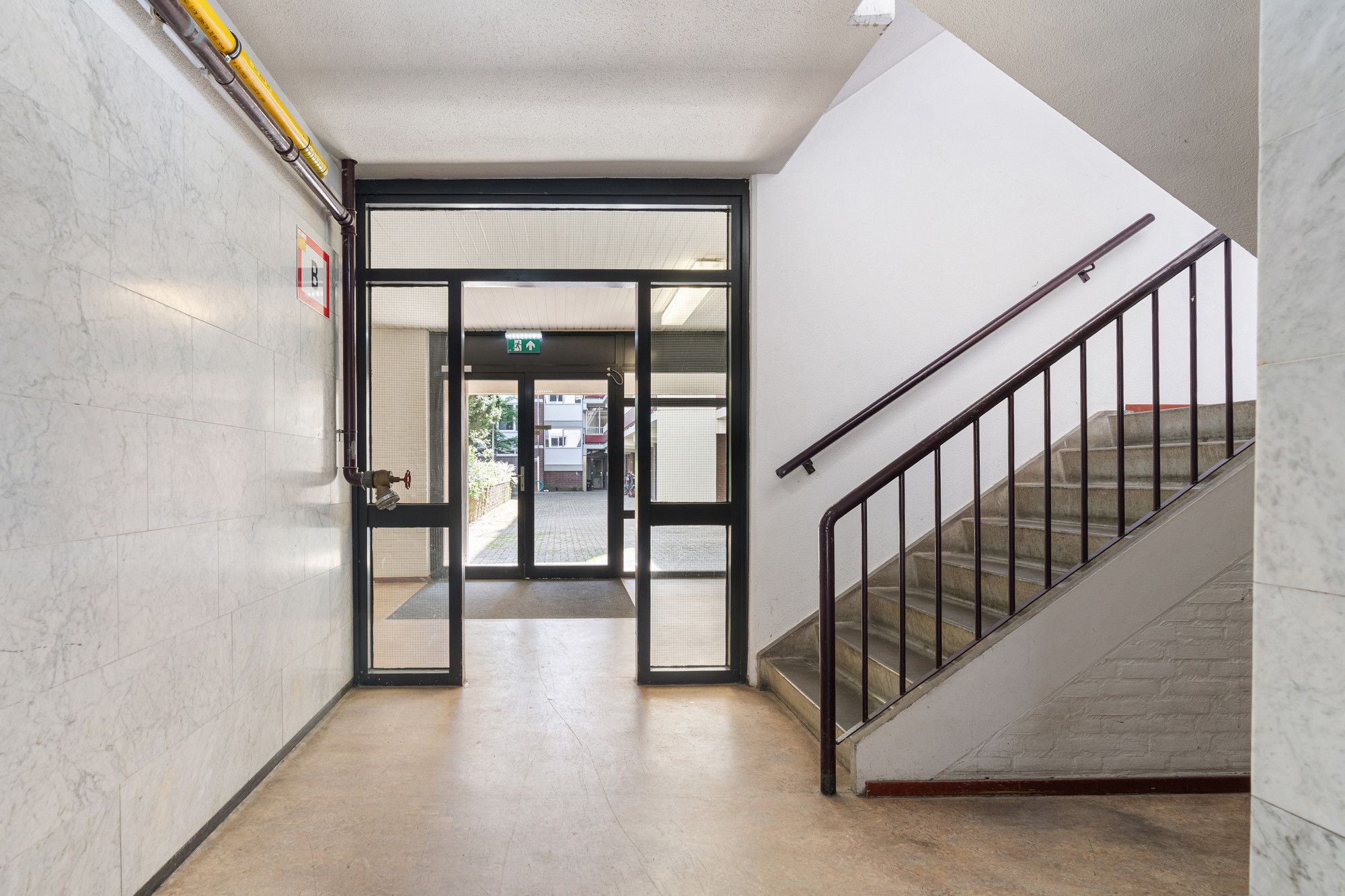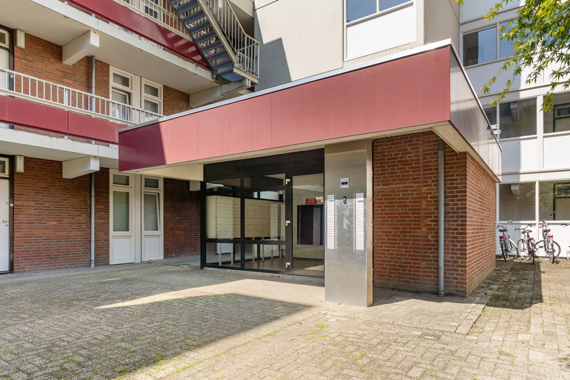 Via de centrale entree betreedt u het gebouw, met een nette gezamenlijke hal, brievenbussen, bellentableau (video-intercom), lift en trappenhuis. Op de begane grond bevindt zich ook de privéberging, ideaal voor het stallen van fietsen of het opbergen van extra spullen.