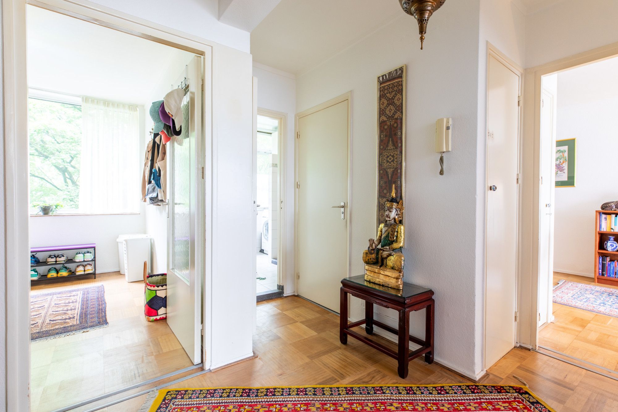 Hal met toegang tot alle vertrekken voorzien van doorlopende parketvloer met muurkast en deels betegelde toiletruimte met wandcloset.