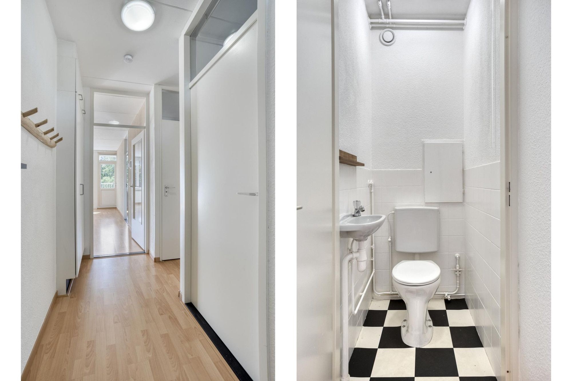 Hoofdingang met bellentableau, brievenbussen en toegang tot zowel het trappenhuis als de lift. Verder beschikt de woning hier over een eigen berging (6,6 m²) - perfect voor opslag! - en is er een gezamenlijke, afgesloten, inpandige fietsenstalling zodat uw fiets altijd droog en veilig is.