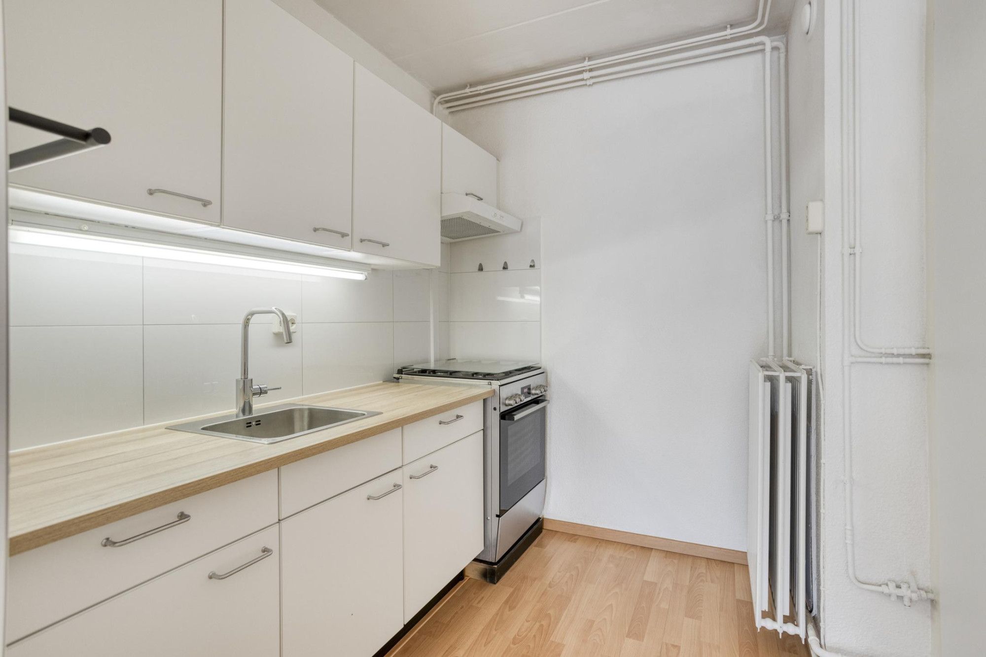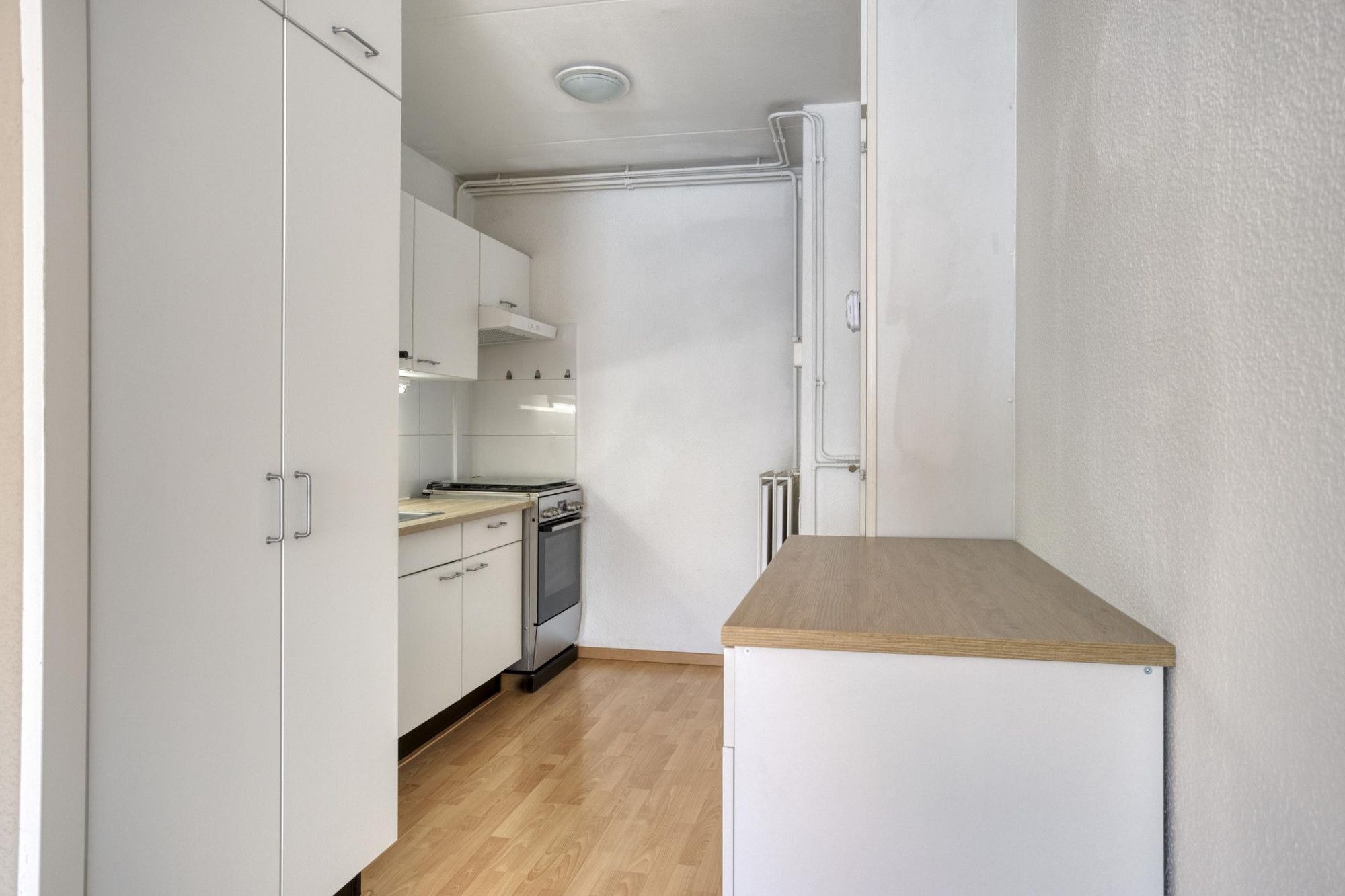 De open keuken is recentelijk vernieuwd en beschikt over een gasfornuis, afzuigkap en veel kastruimte. In een van die muurkasten bevindt zich de CV-installatie.