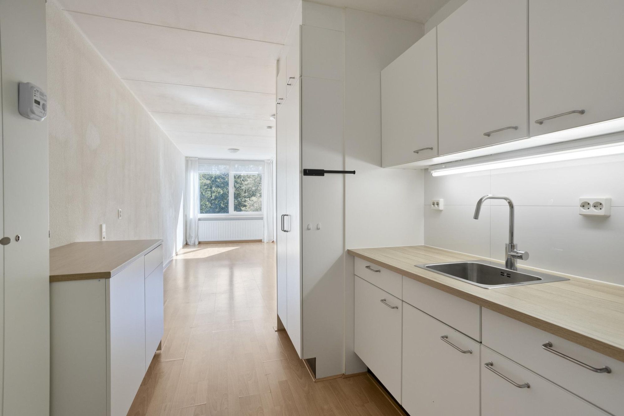 Het appartement bevindt zich op de vierde etage en heeft een hoekligging. Hierdoor ervaart u extra rust, veel lichtinval en het gevoel van halfvrijstaand wonen.