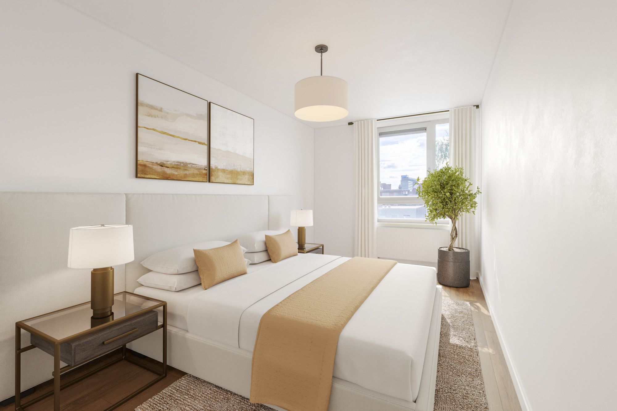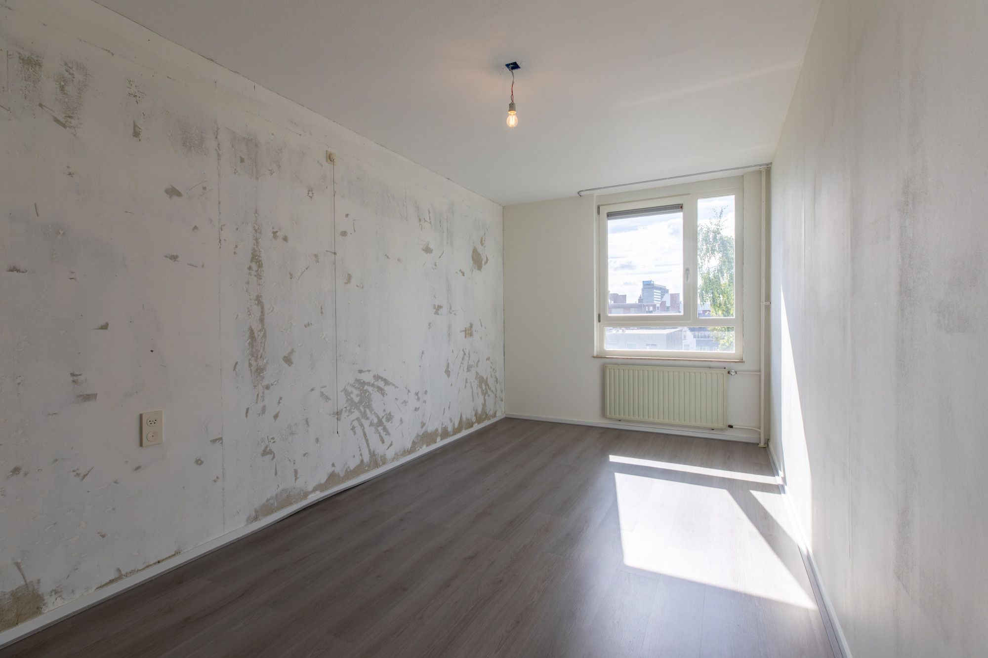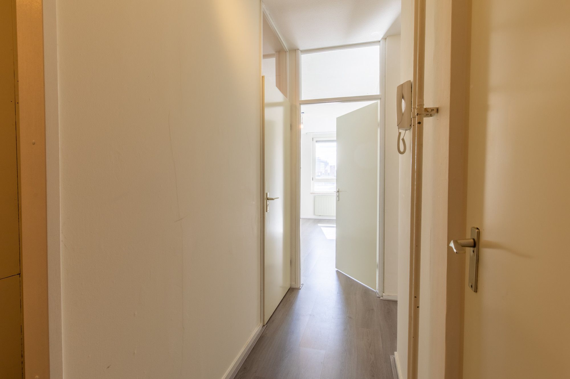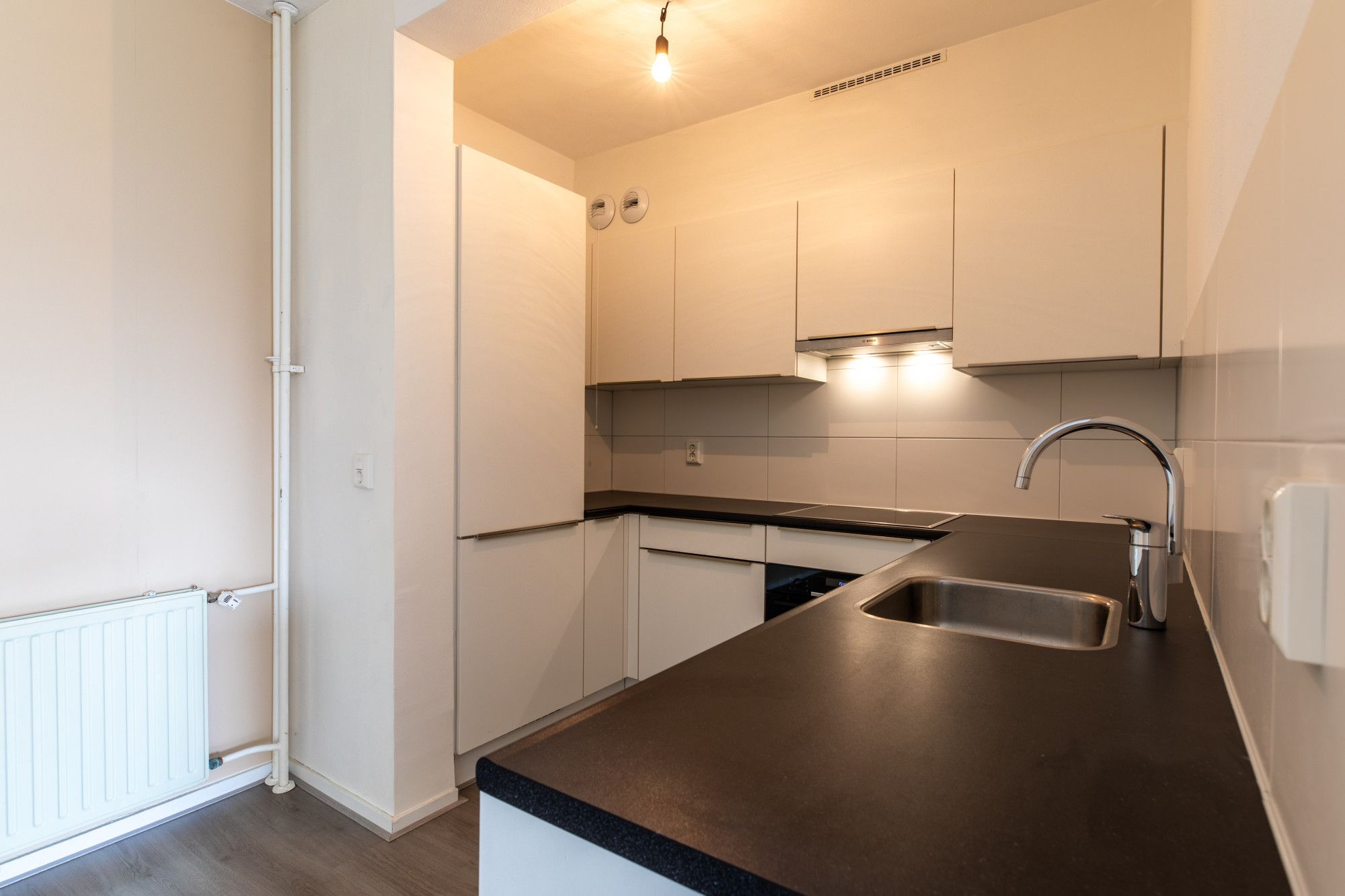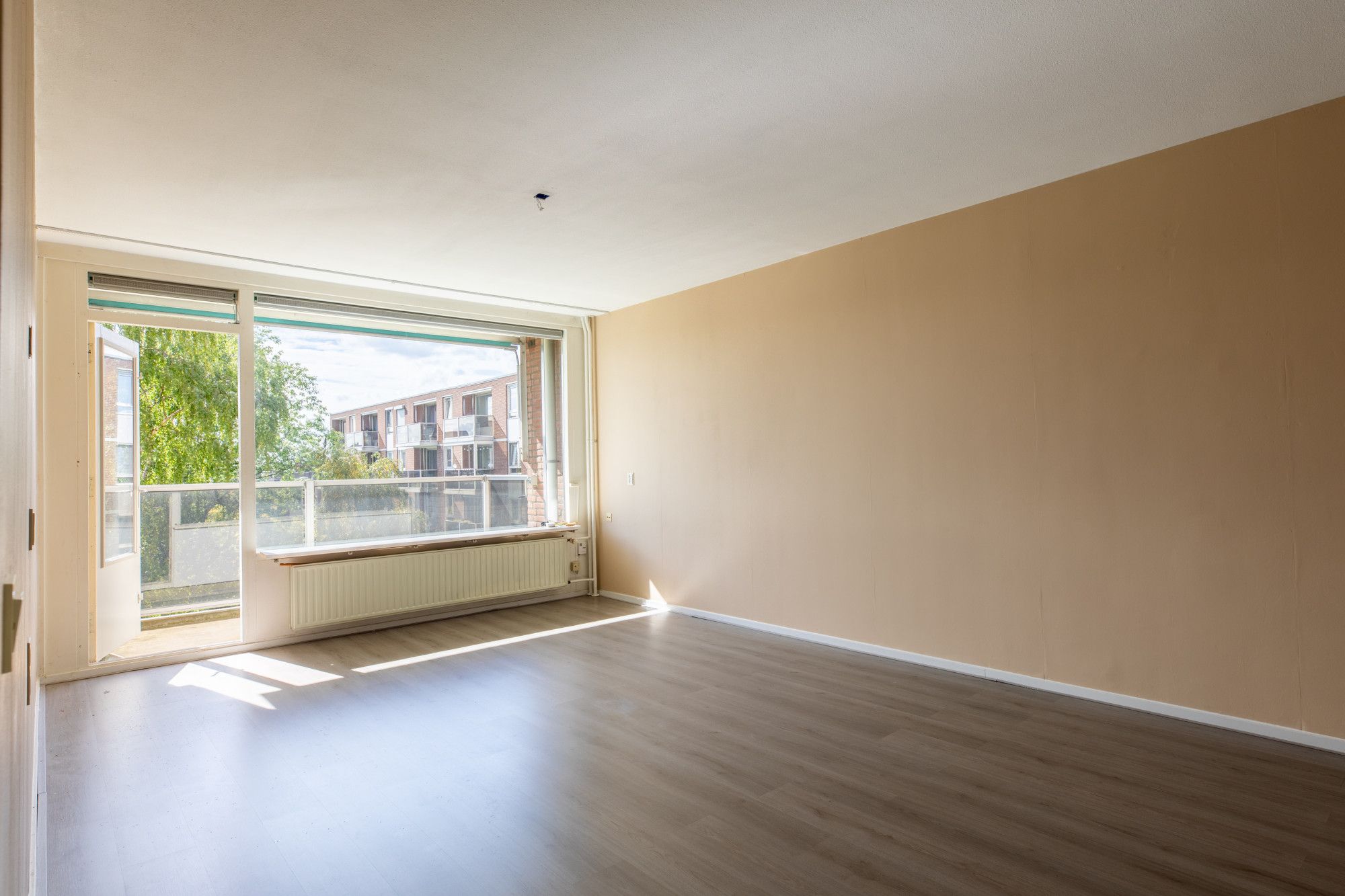 Ruime woonkamer met toegang naar balkon op het zuid-westen. Halfopen keuken voorzien van een moderne keukeninstallatie. Twee slaapkamers.