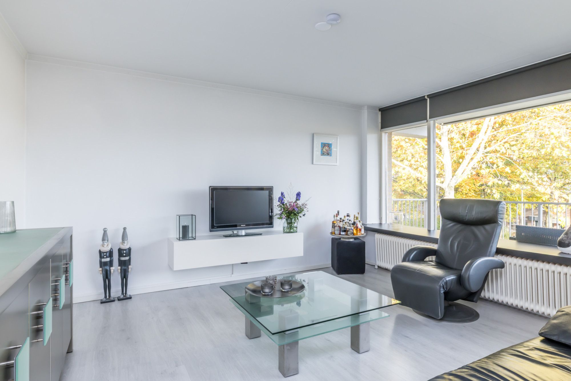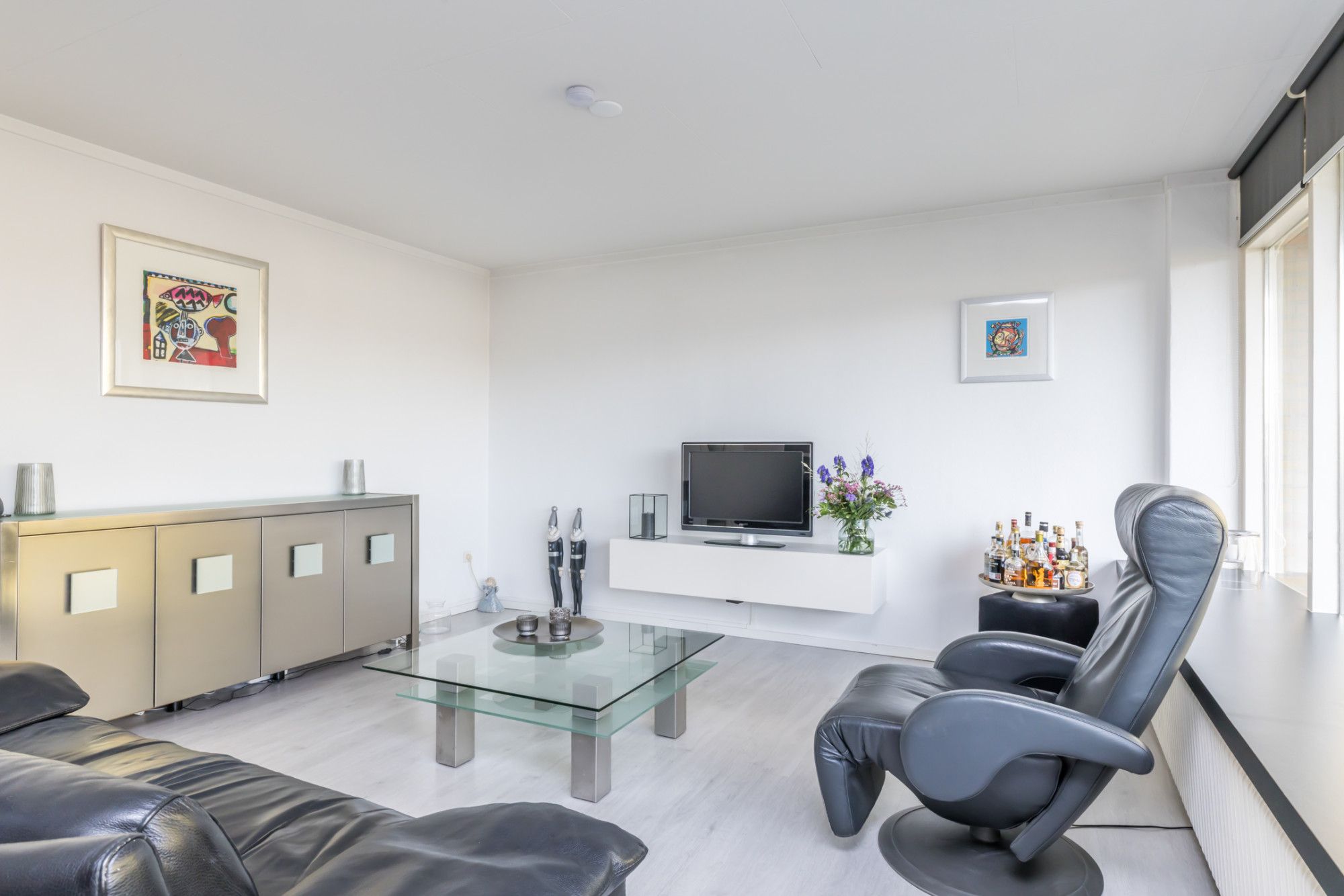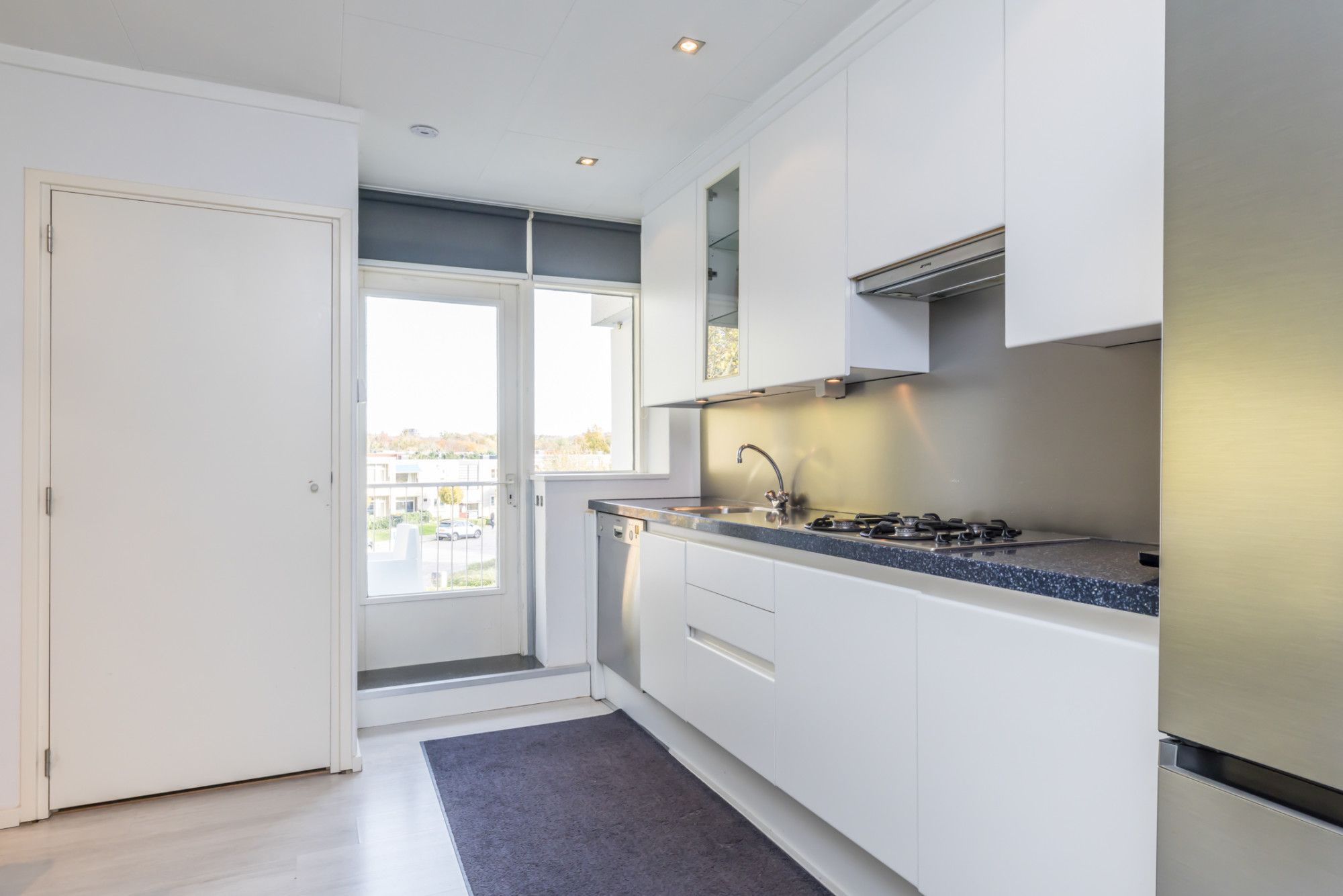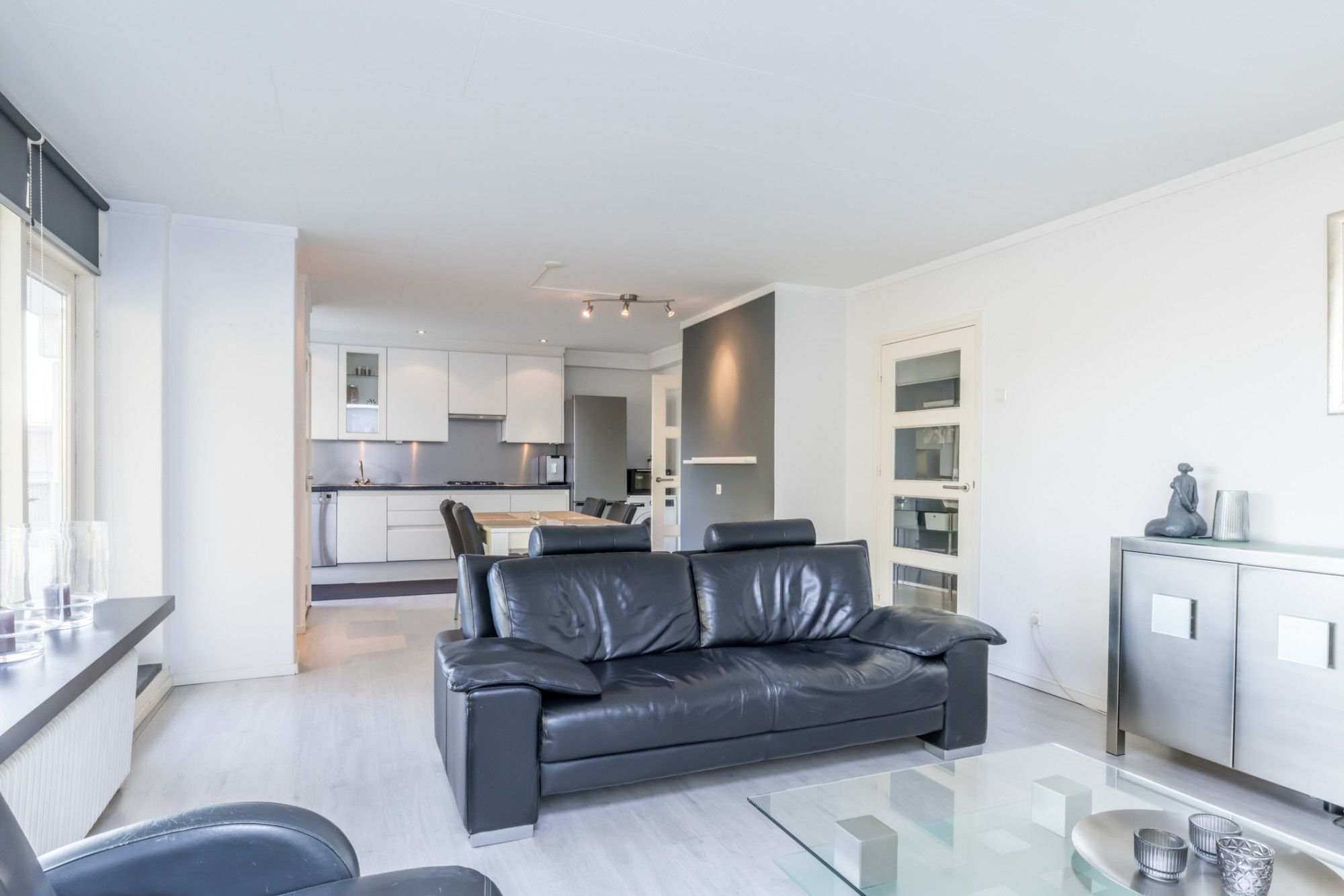 De ruime living (ca. 40 m2) biedt directe toegang tot de open keuken, deur naar balkon en kenmerkt zich door de vele daglichttoetreding. De keuken is v.v. installatie en apparatuur: 4- pits gasfornuis, afzuigkap en vaatwasser. Tevens vindt men hier de aansluitingen voor witgoedapparatuur en bergkast met alwaar cv-ketel.