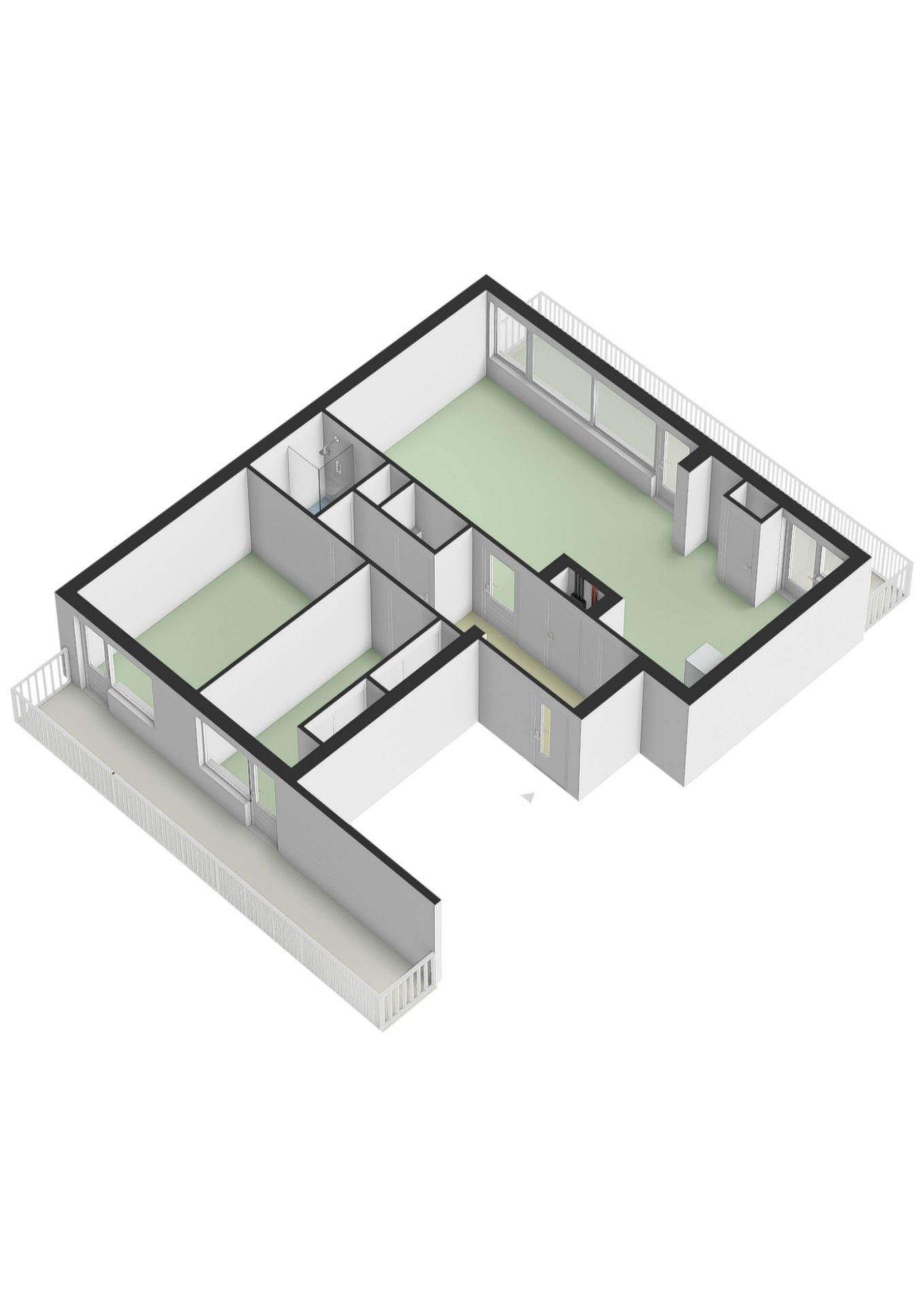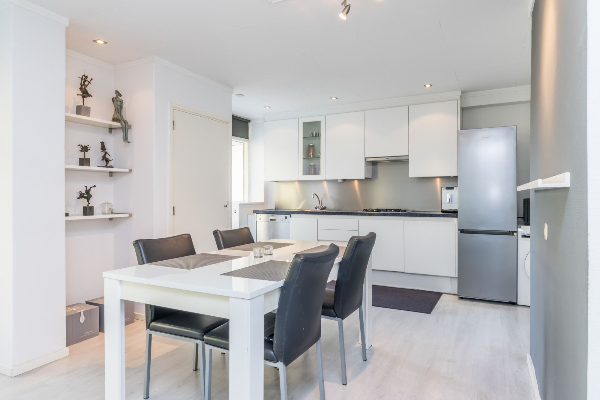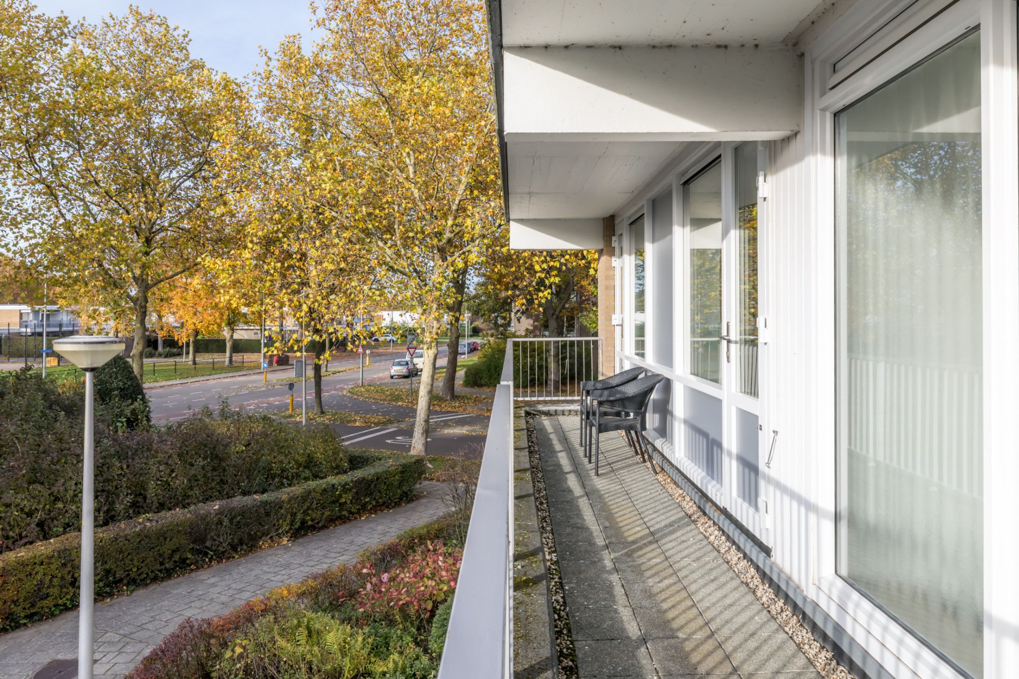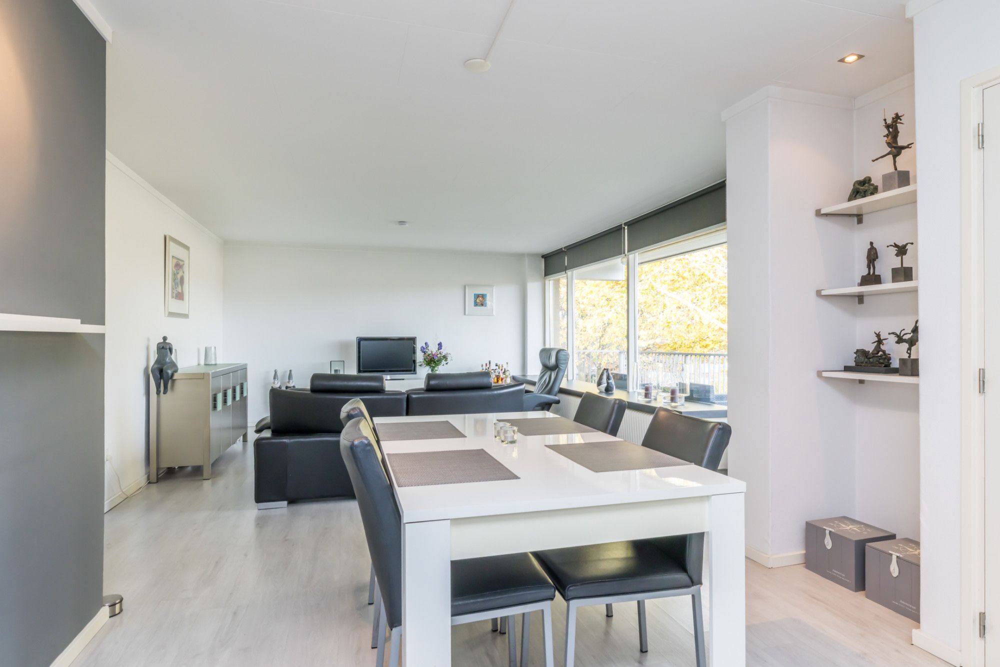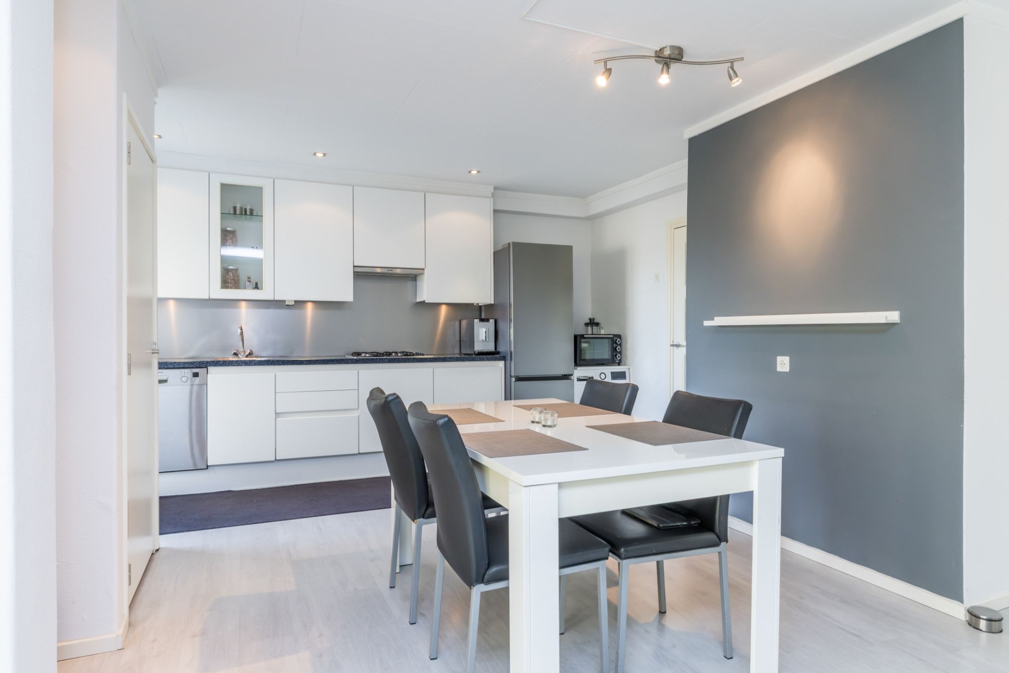 De ruime living (ca. 40 m2) biedt directe toegang tot de open keuken, deur naar balkon en kenmerkt zich door de vele daglichttoetreding. De keuken is v.v. installatie en apparatuur: 4- pits gasfornuis, afzuigkap en vaatwasser. Tevens vindt men hier de aansluitingen voor witgoedapparatuur en bergkast met alwaar cv-ketel.