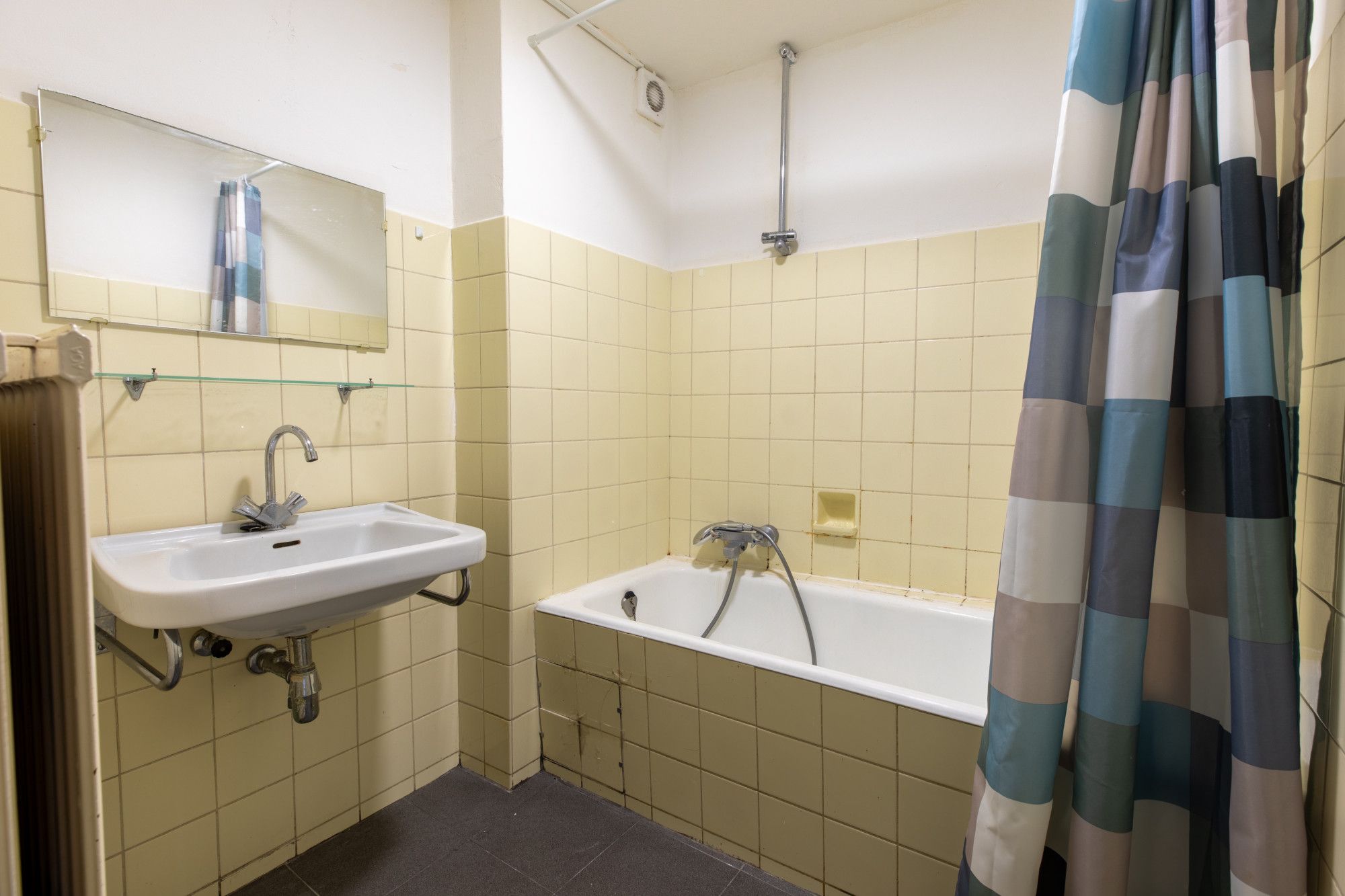 Badkamer (3.39 x 2.09 m) betegeld en voorzien van ligbad en vaste wastafel.