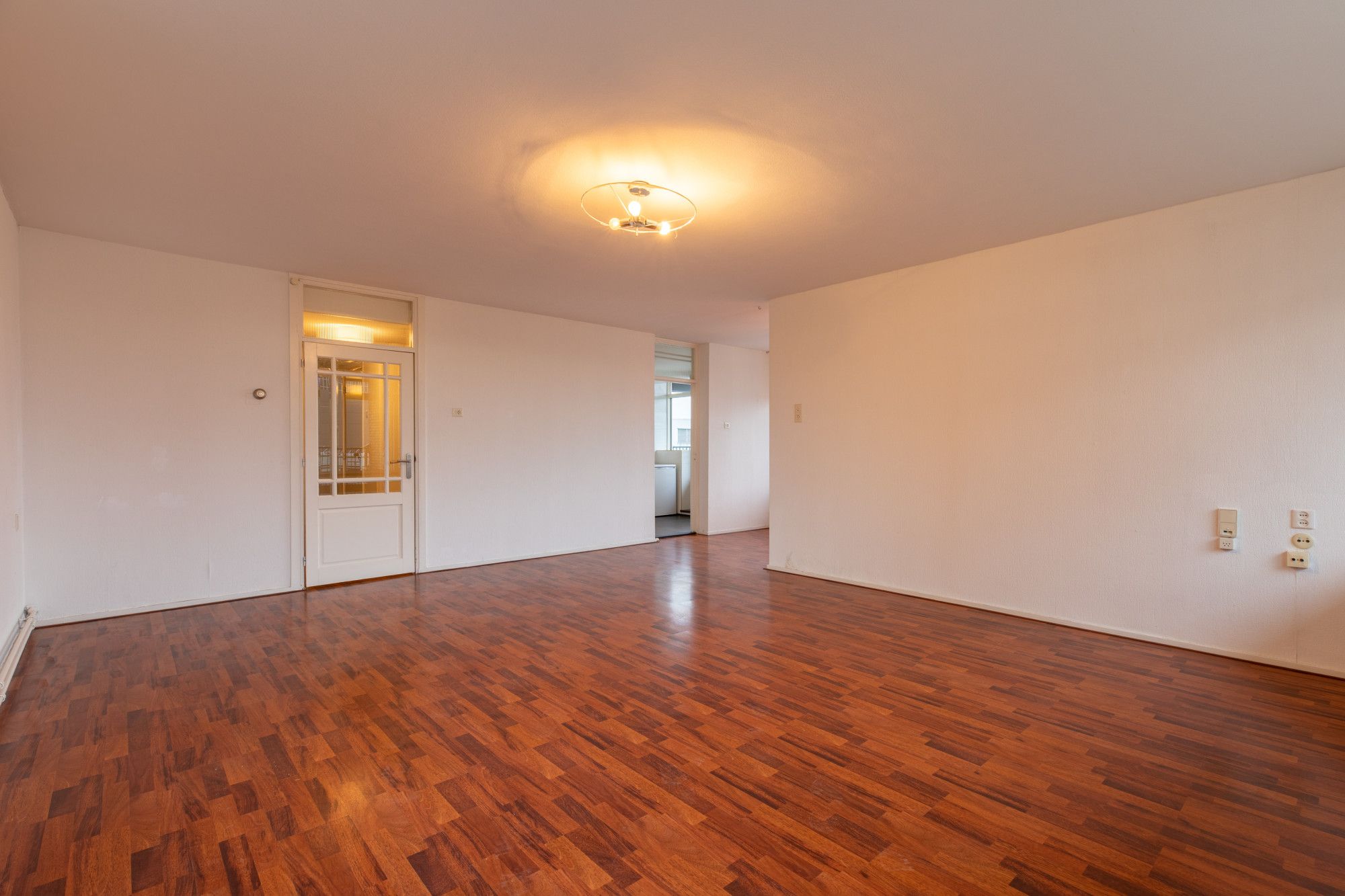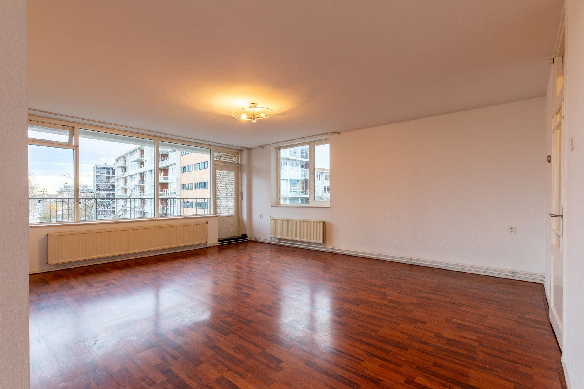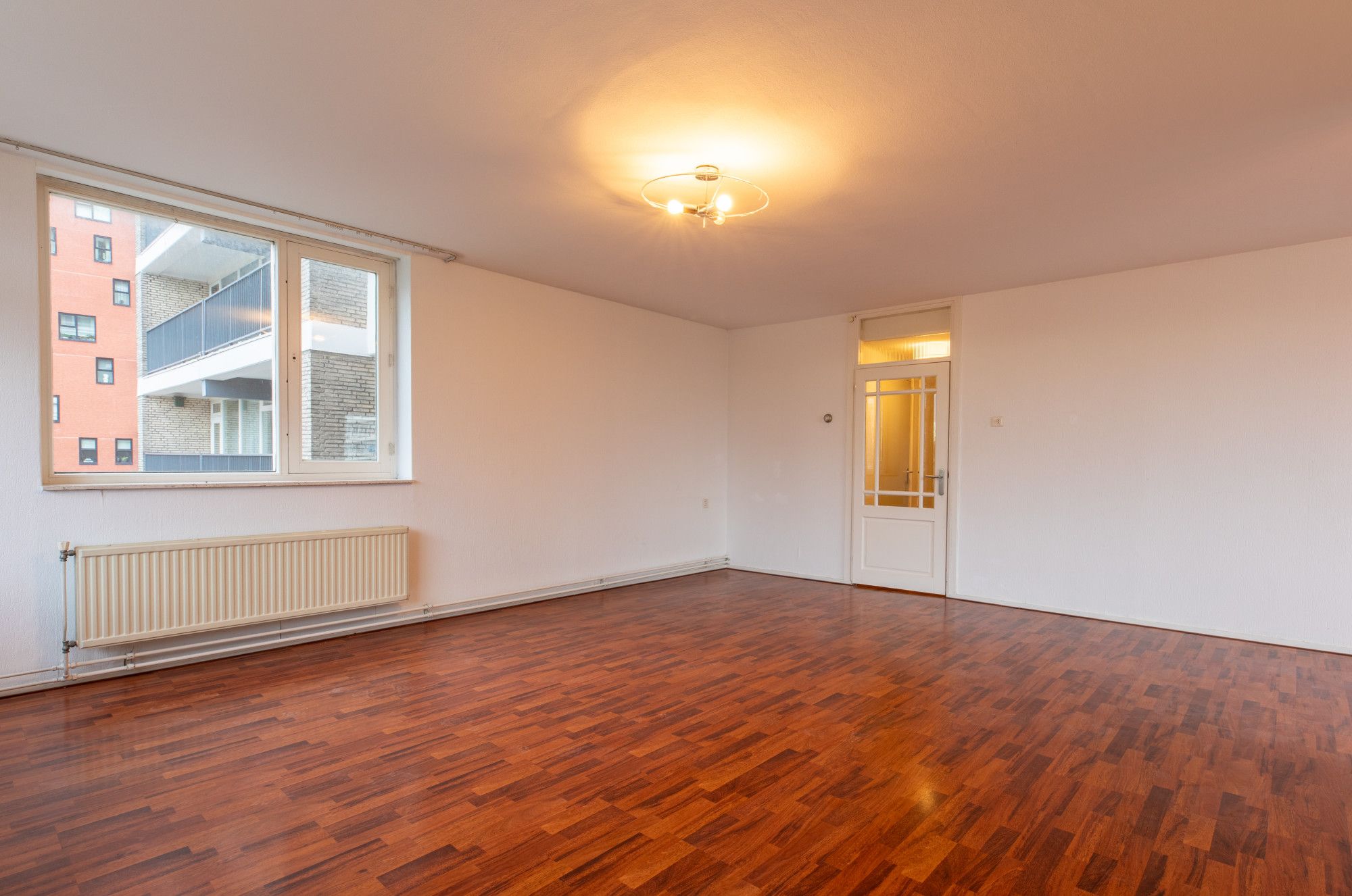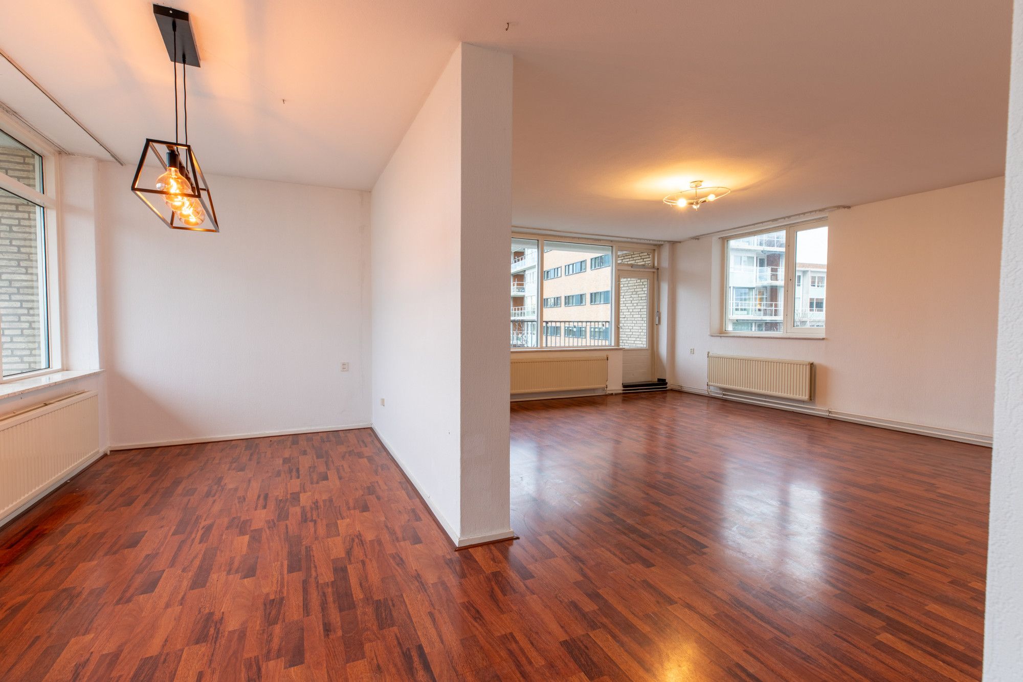 Ruime woonkamer (5.975 X 4.98 m) voorzien van laminaatvloer en met toegang tot balkon (4.74 x 1.19 m).
