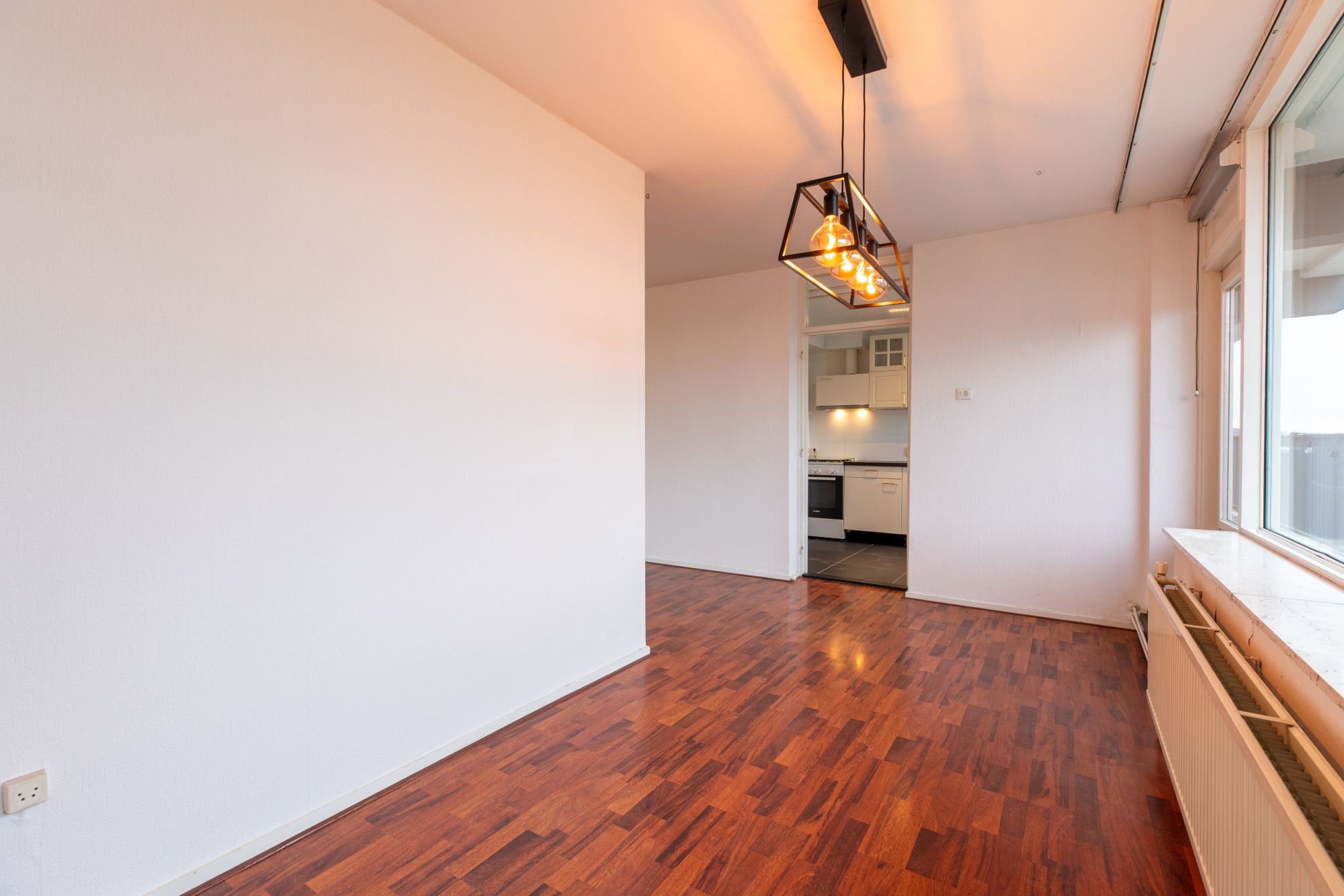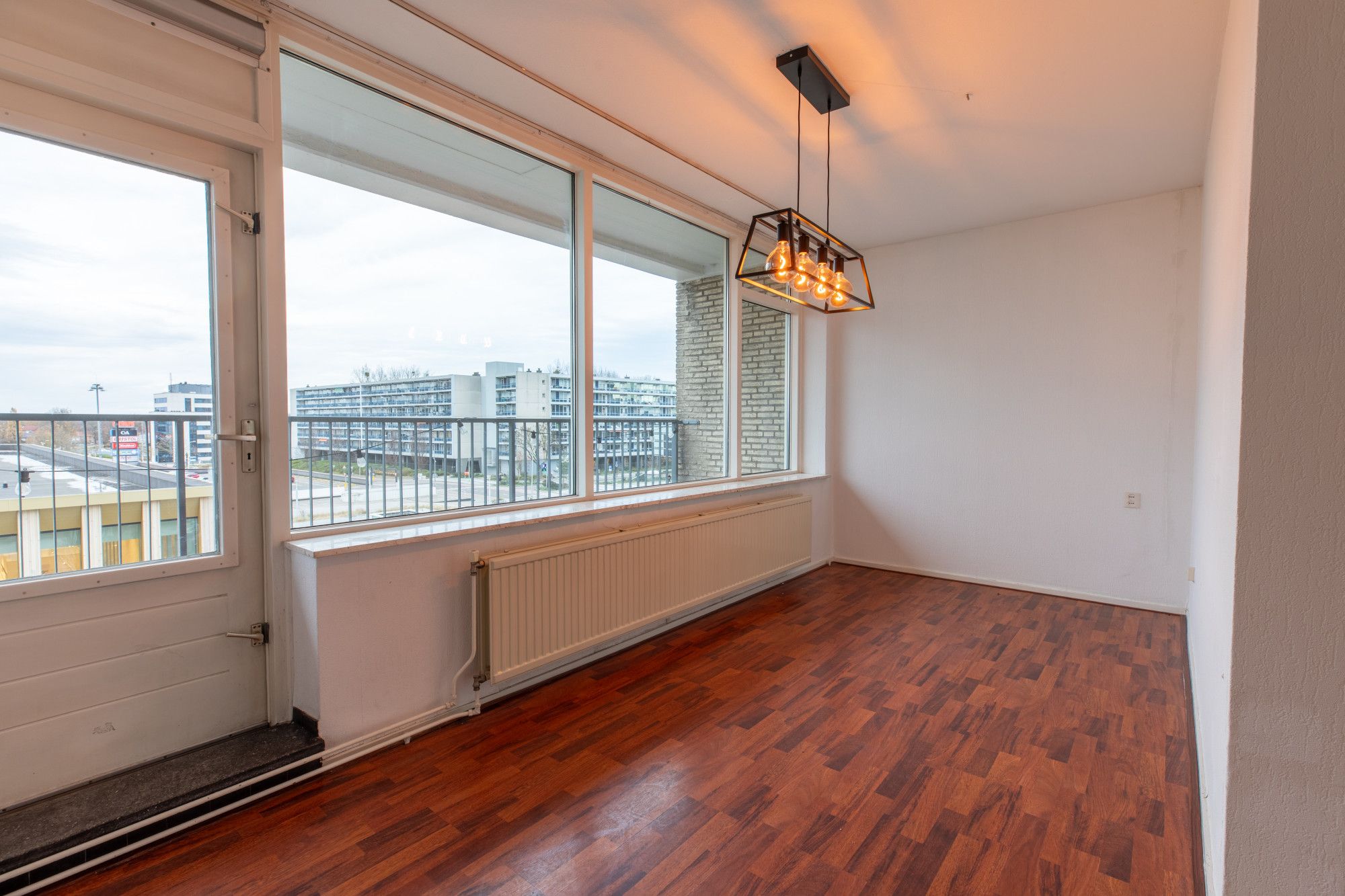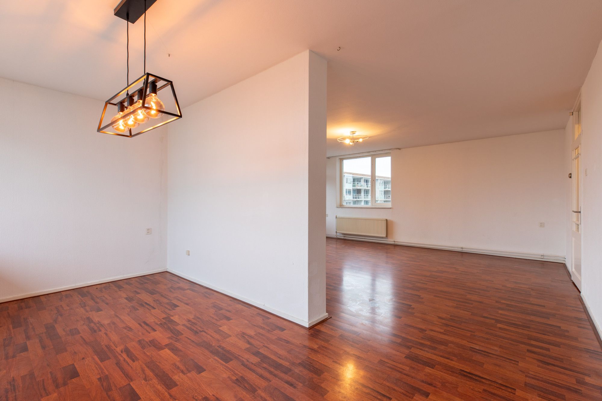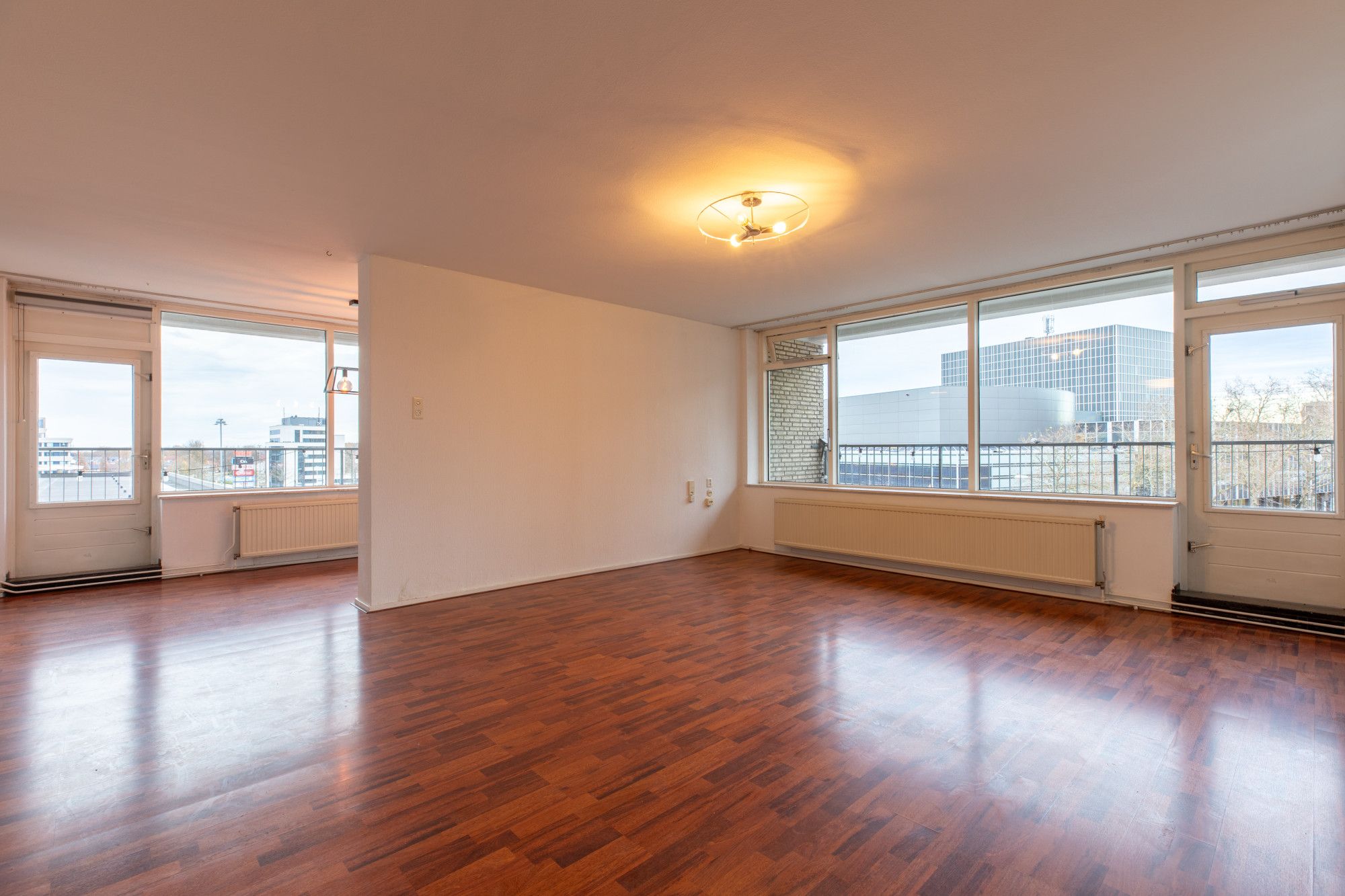 Ruime woonkamer (5.975 X 4.98 m) voorzien van laminaatvloer en met toegang tot balkon (4.74 x 1.19 m).