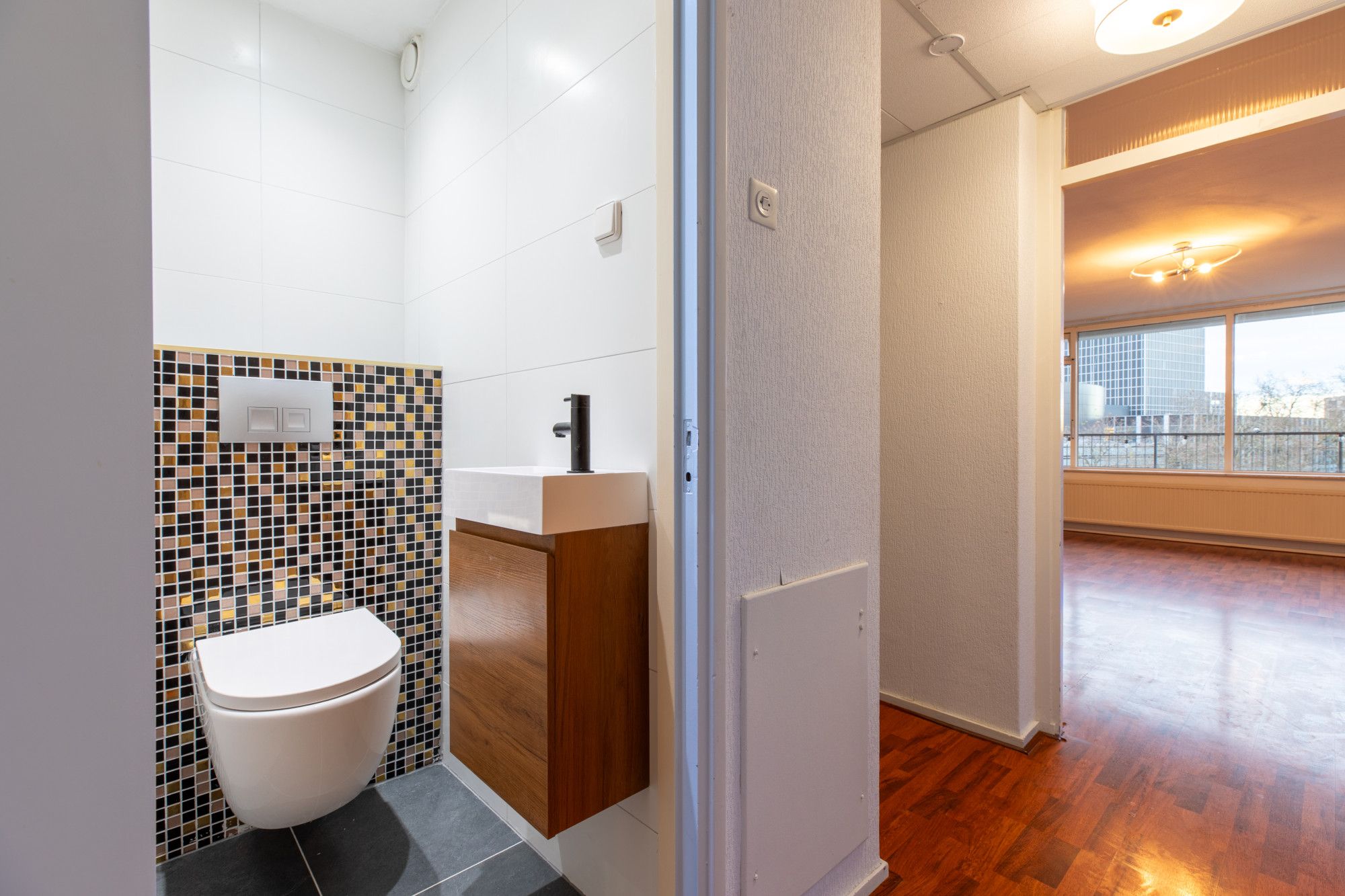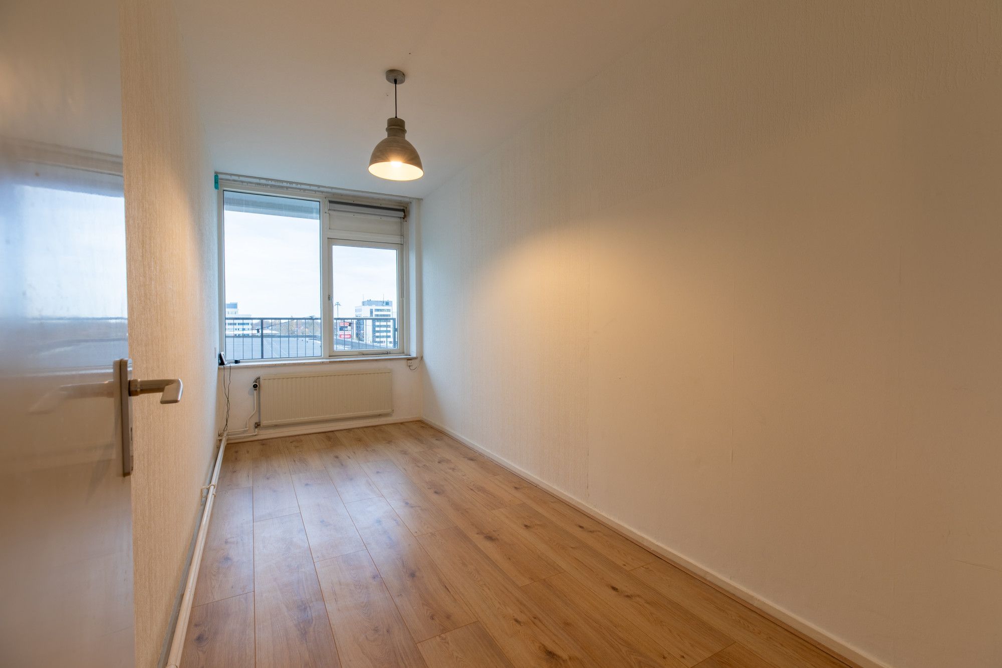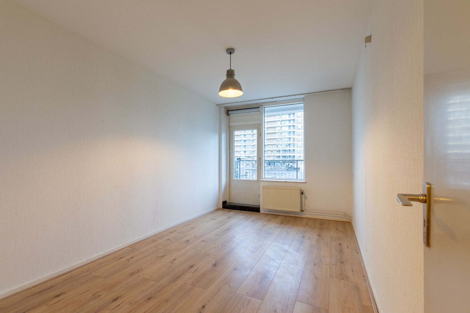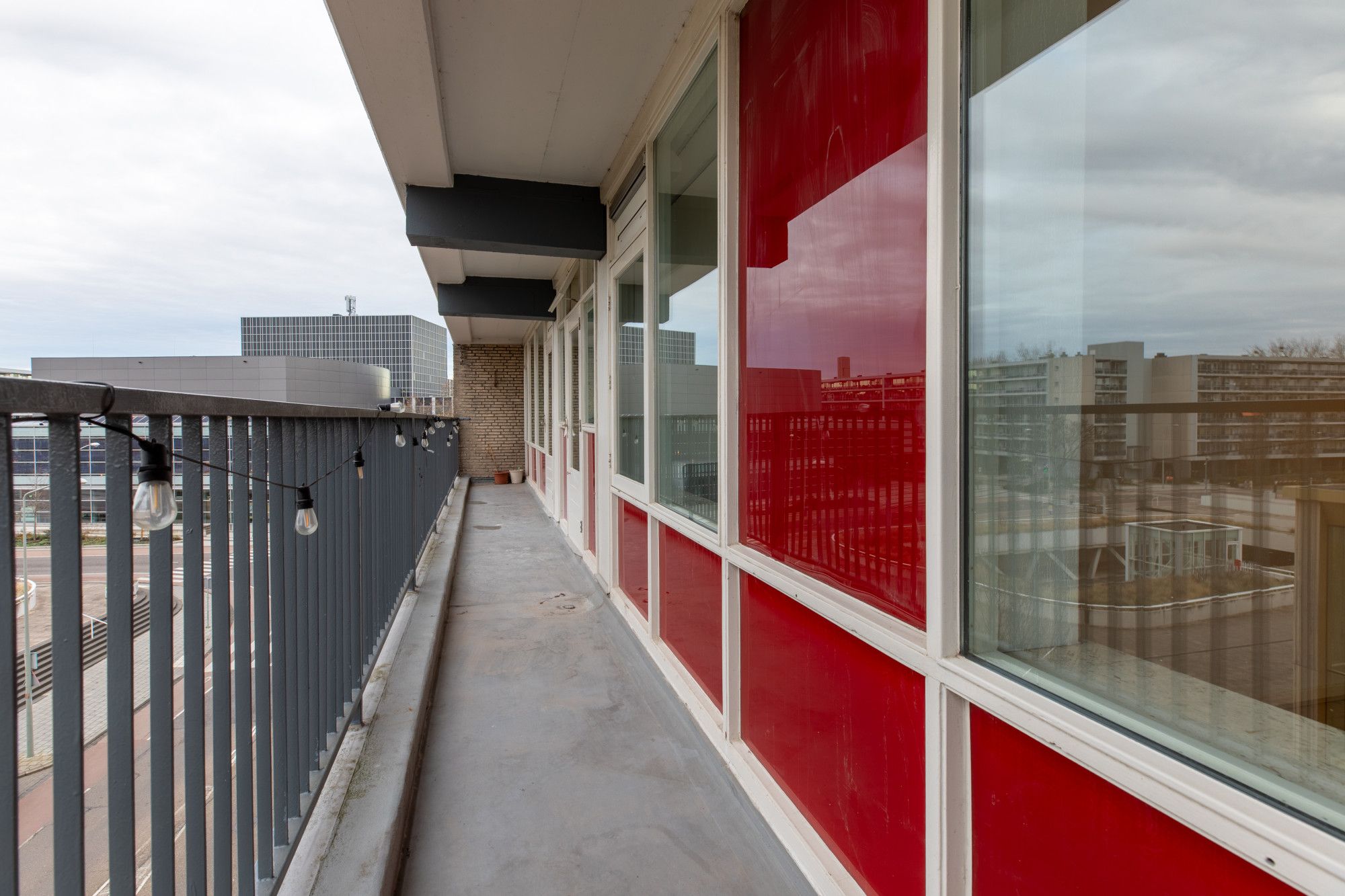 Ruime woonkamer (5.975 X 4.98 m) voorzien van laminaatvloer en met toegang tot balkon (4.74 x 1.19 m).