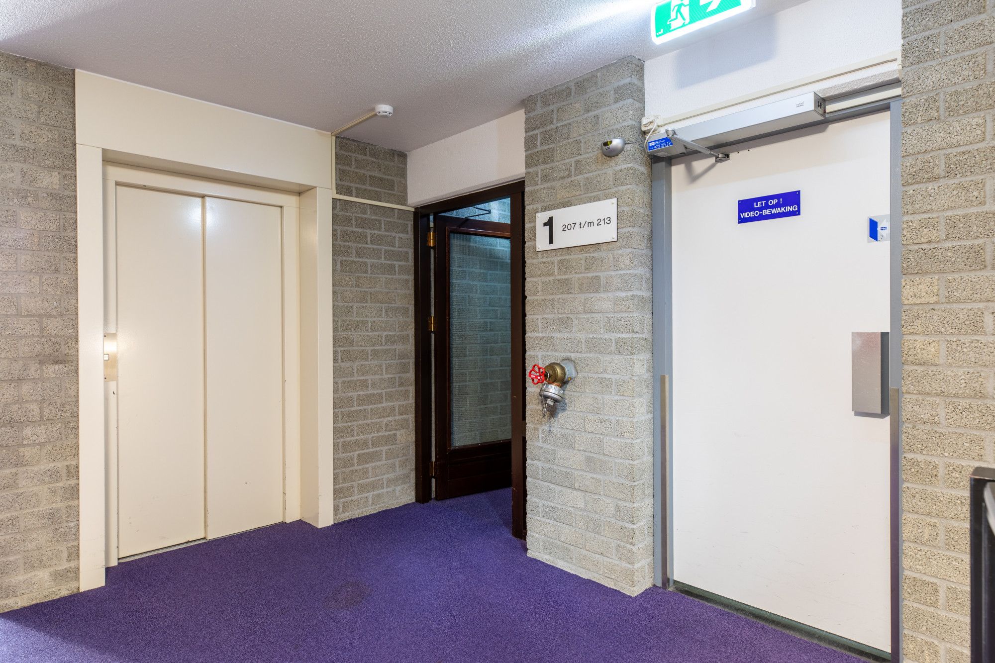 Representatieve ontvangst hal met brievenbussen en toegang naar de dubbele liften.