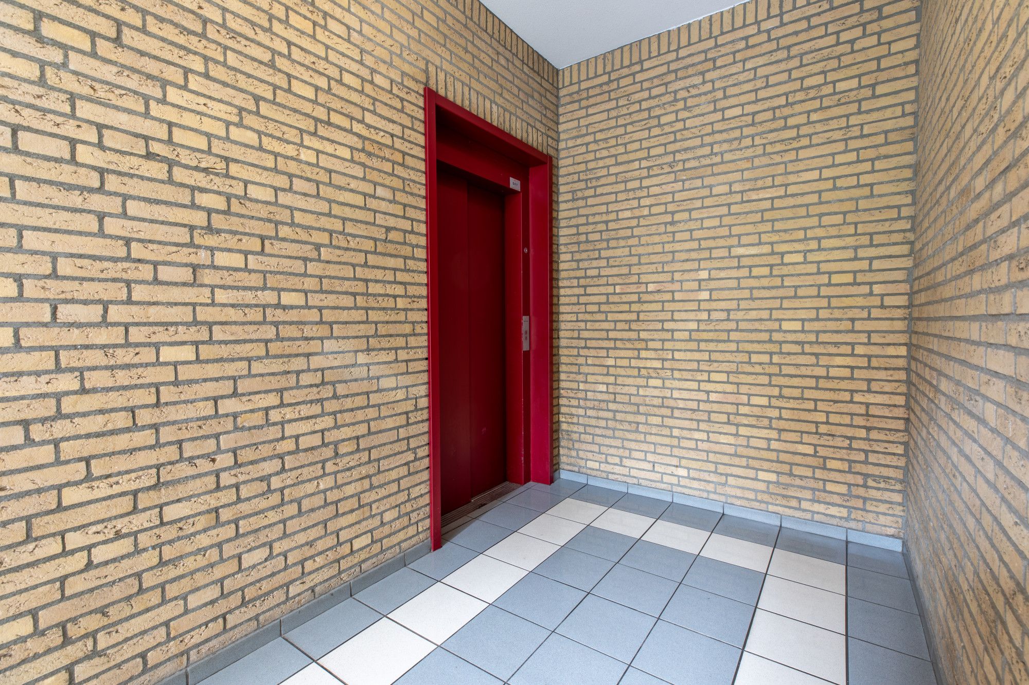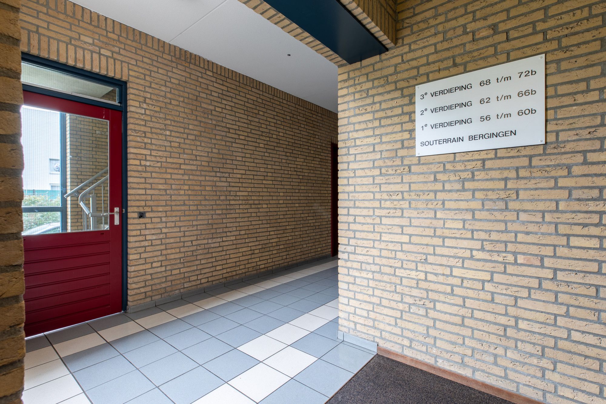 Centrale entree met brievenbussen, bellentableau en liftinstallatie.
