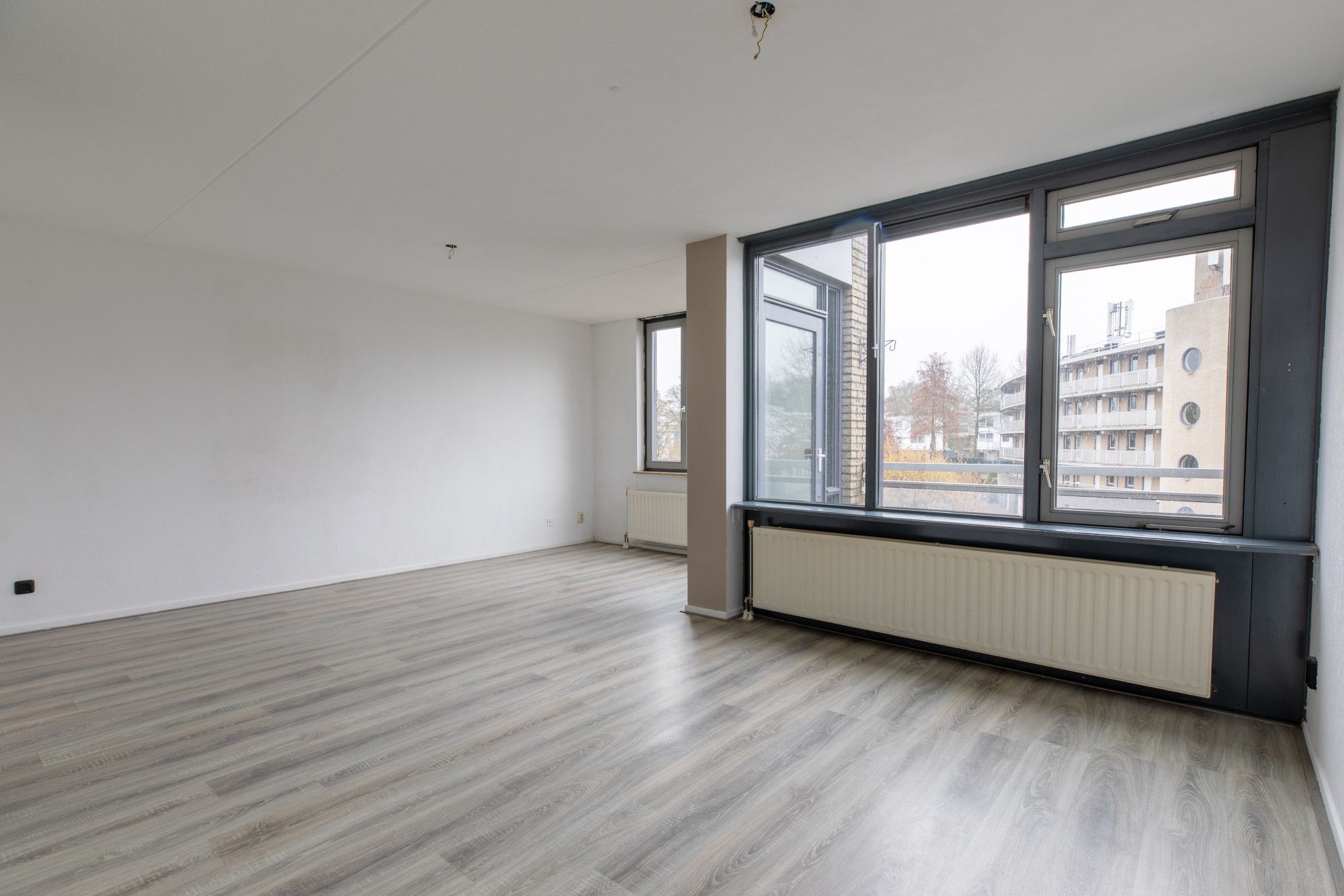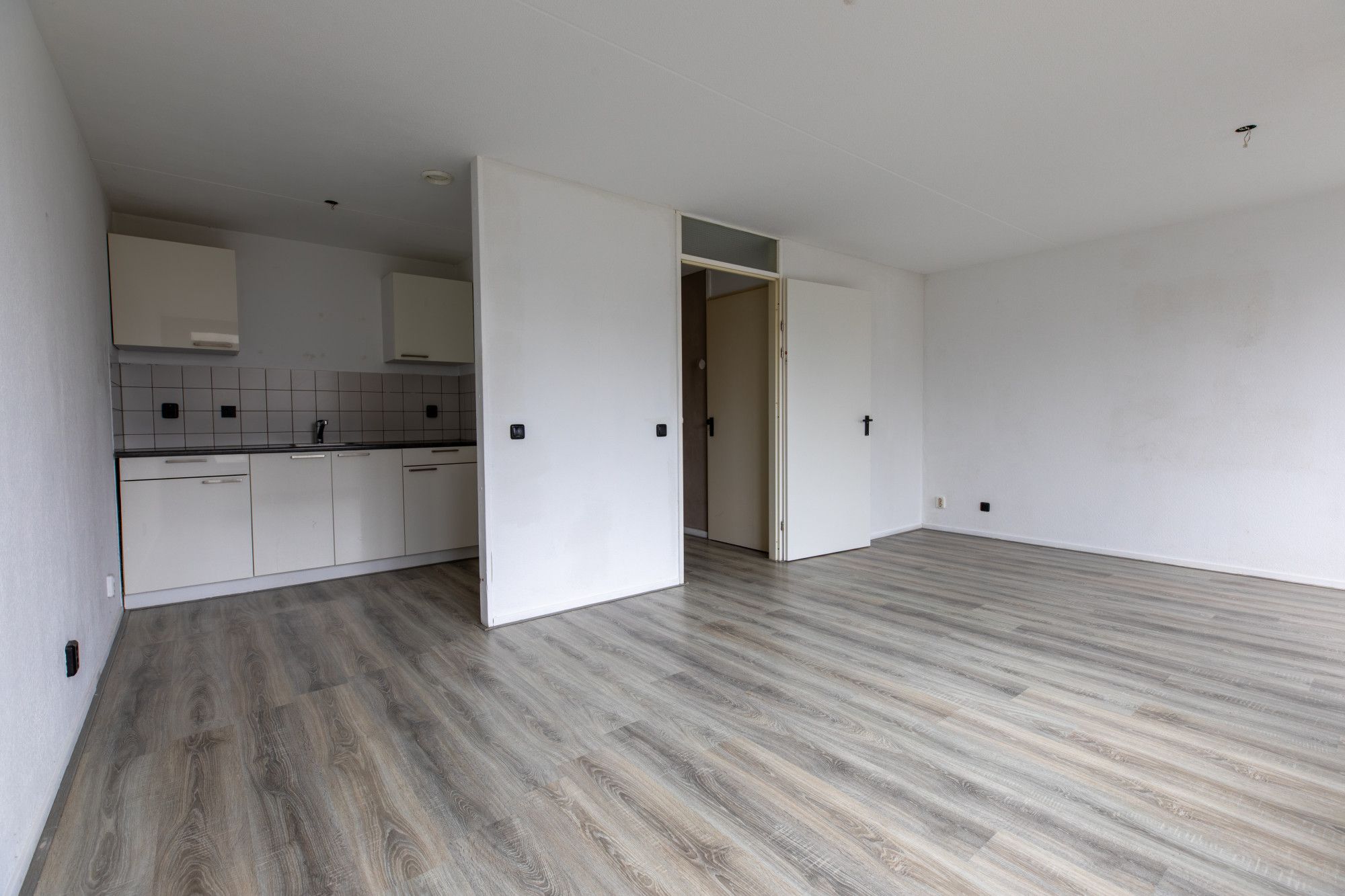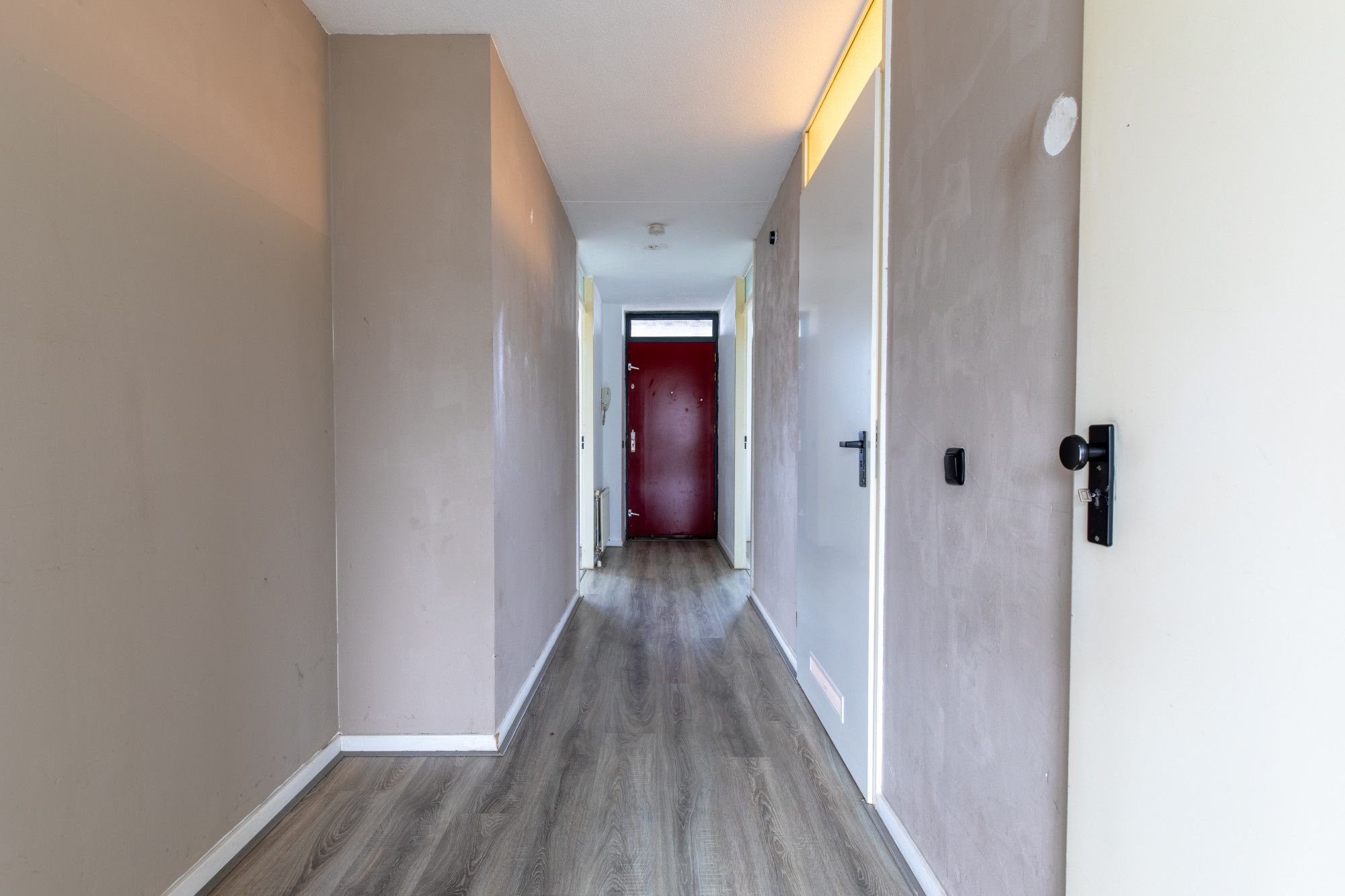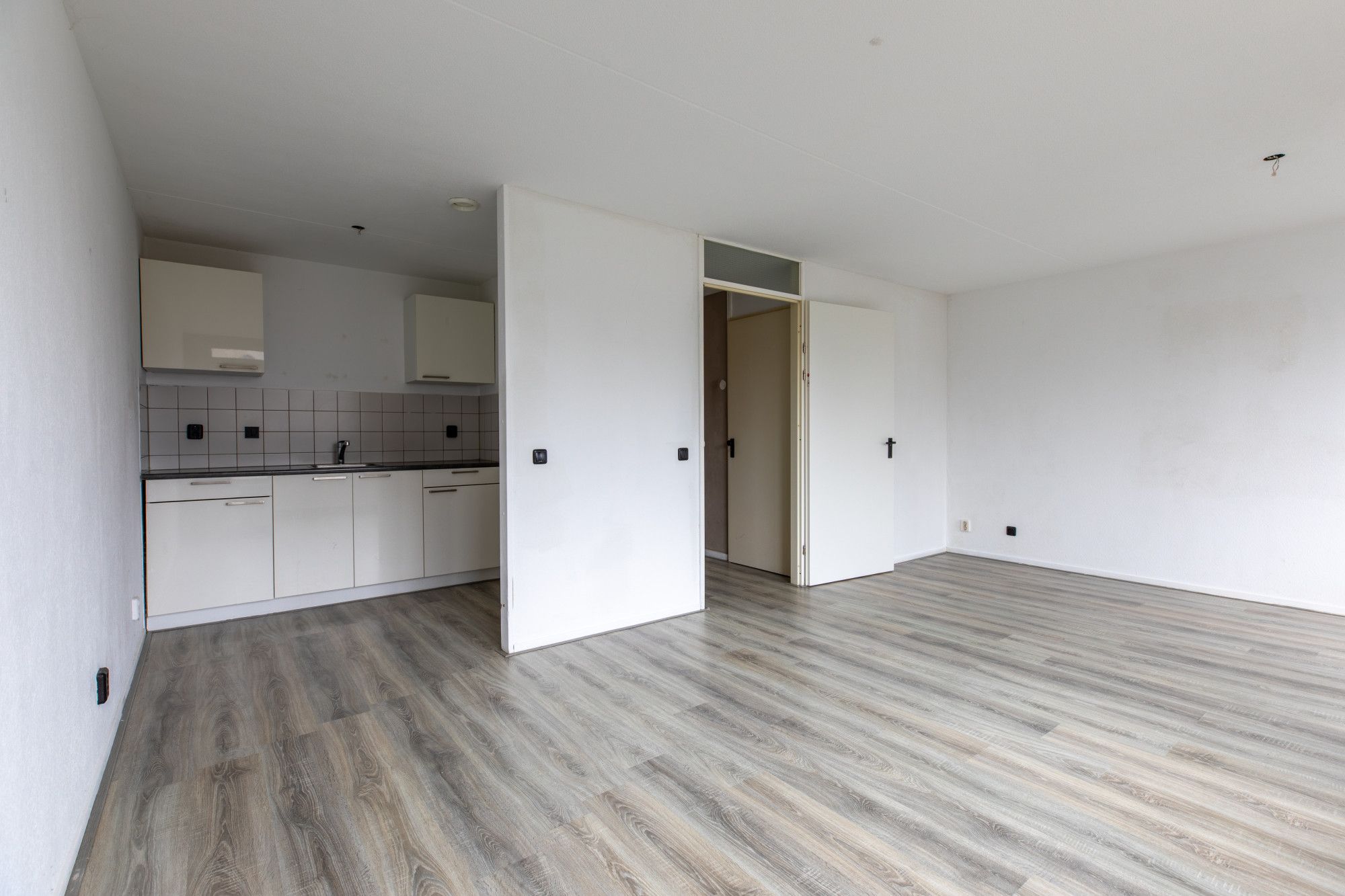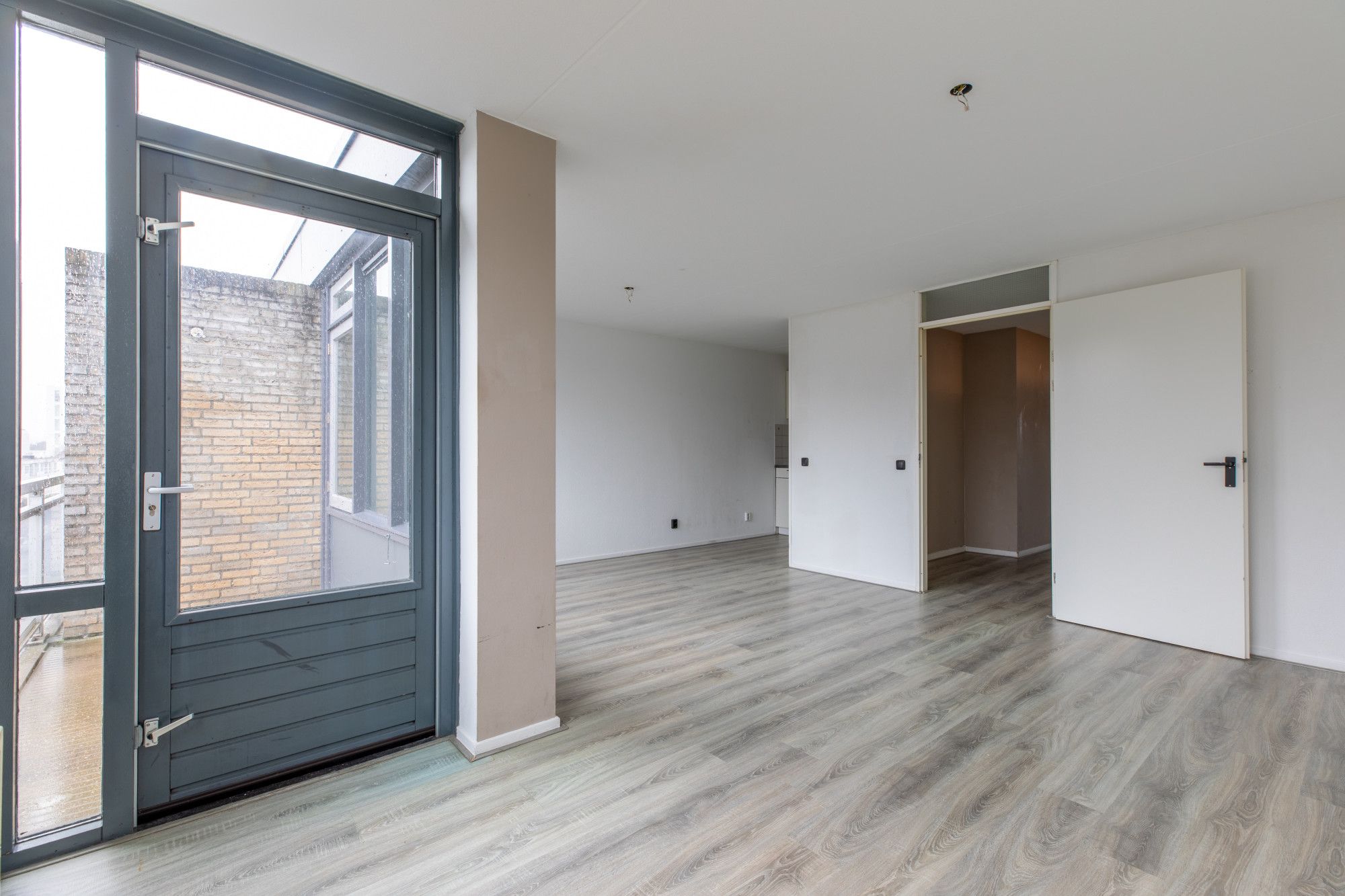 Via de galerij is het appartement te bereiken. Hal met meterkast. Twee slaapkamers. Woonkamer met toegang naar balkon. Eenvoudige keuken. Badkamer met douche, wastafel en toilet.
