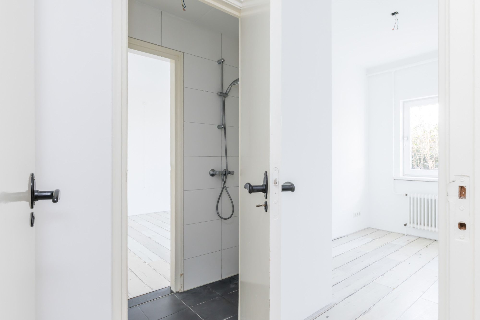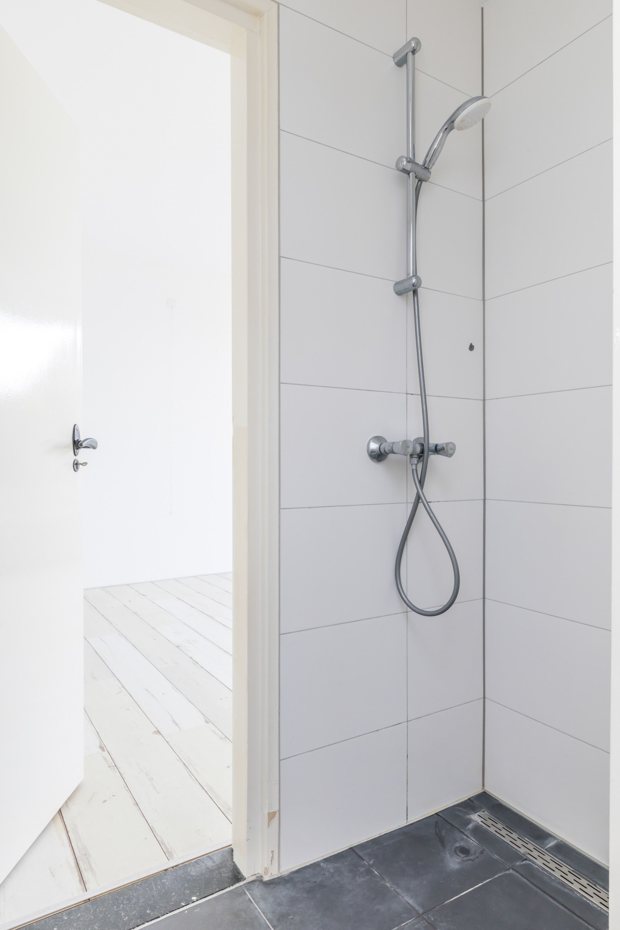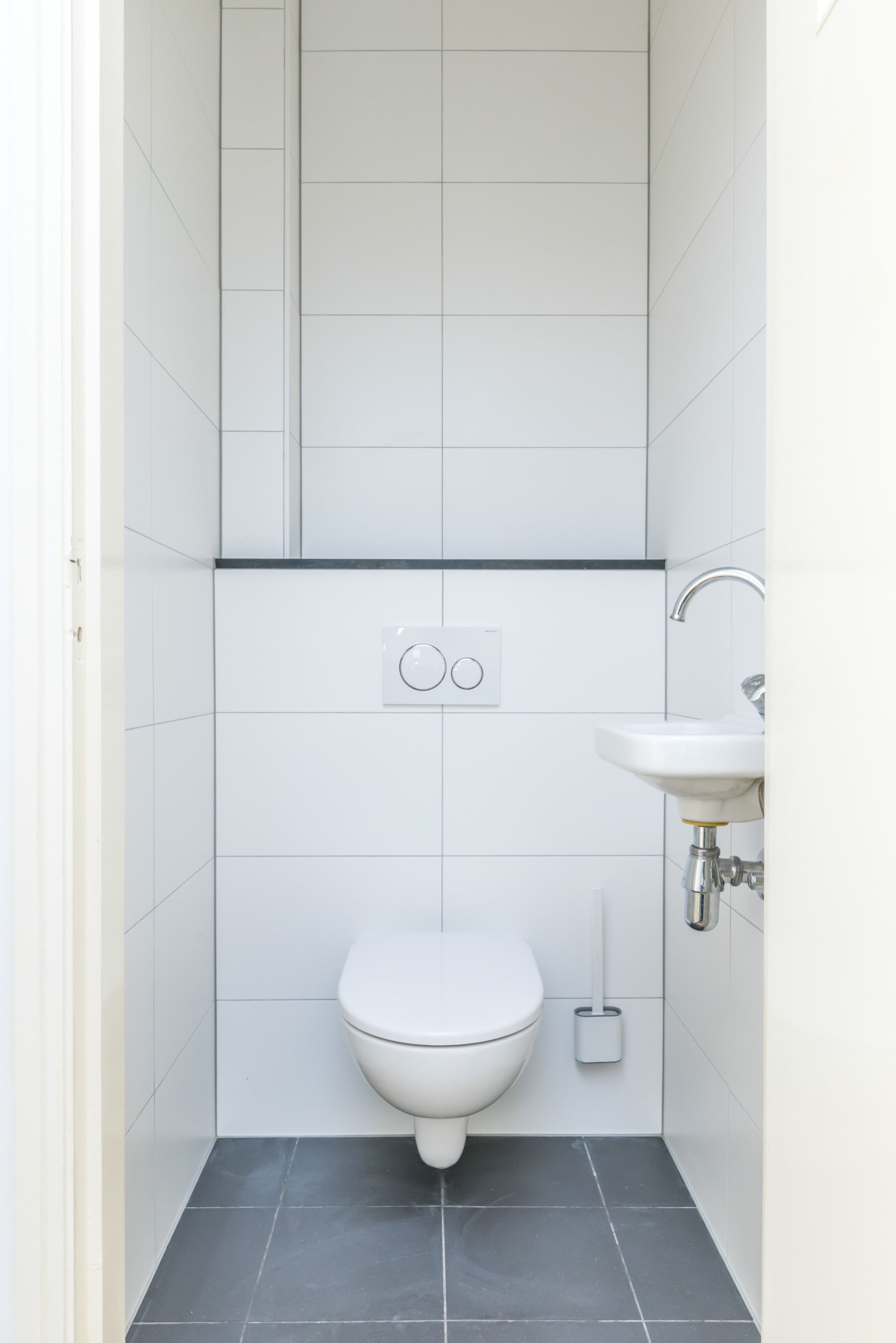 Eigen entree, vanuit de hal heeft men toegang tot living, slaapkamer, keuken en moderne toiletruimte v.v. zwevend closet.