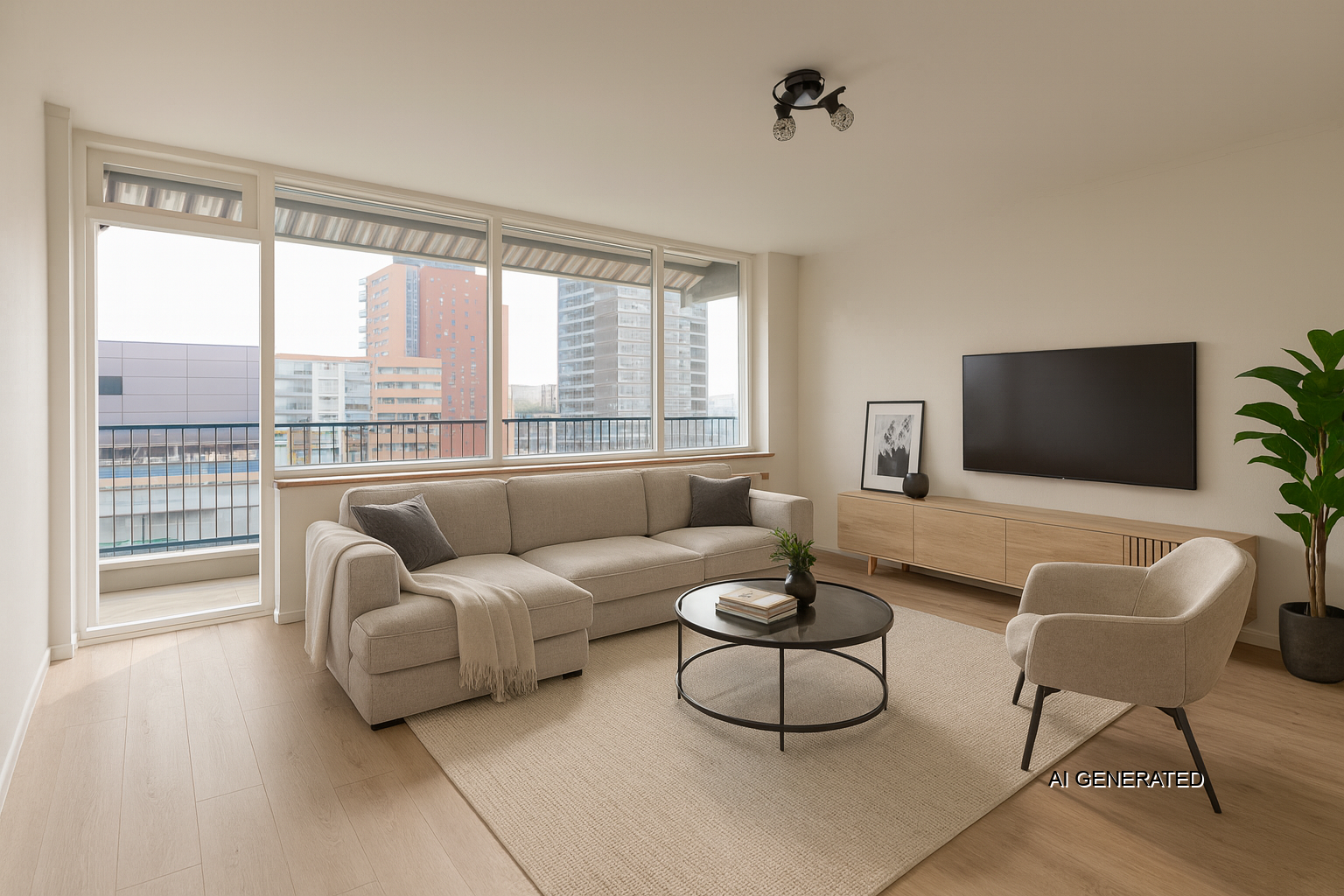 Riante heldere woonkamer met toegang ruim balkon