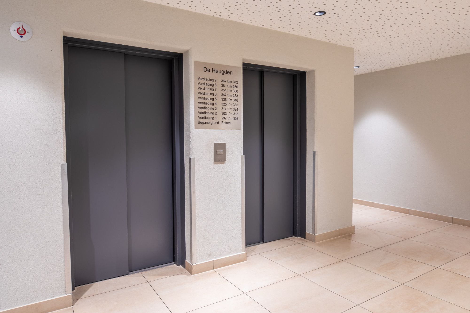 Centrale entree met bellenplateau en liftinstallatie en eigen afgesloten berging. Eigen parkeerplaats op afgesloten terrein.