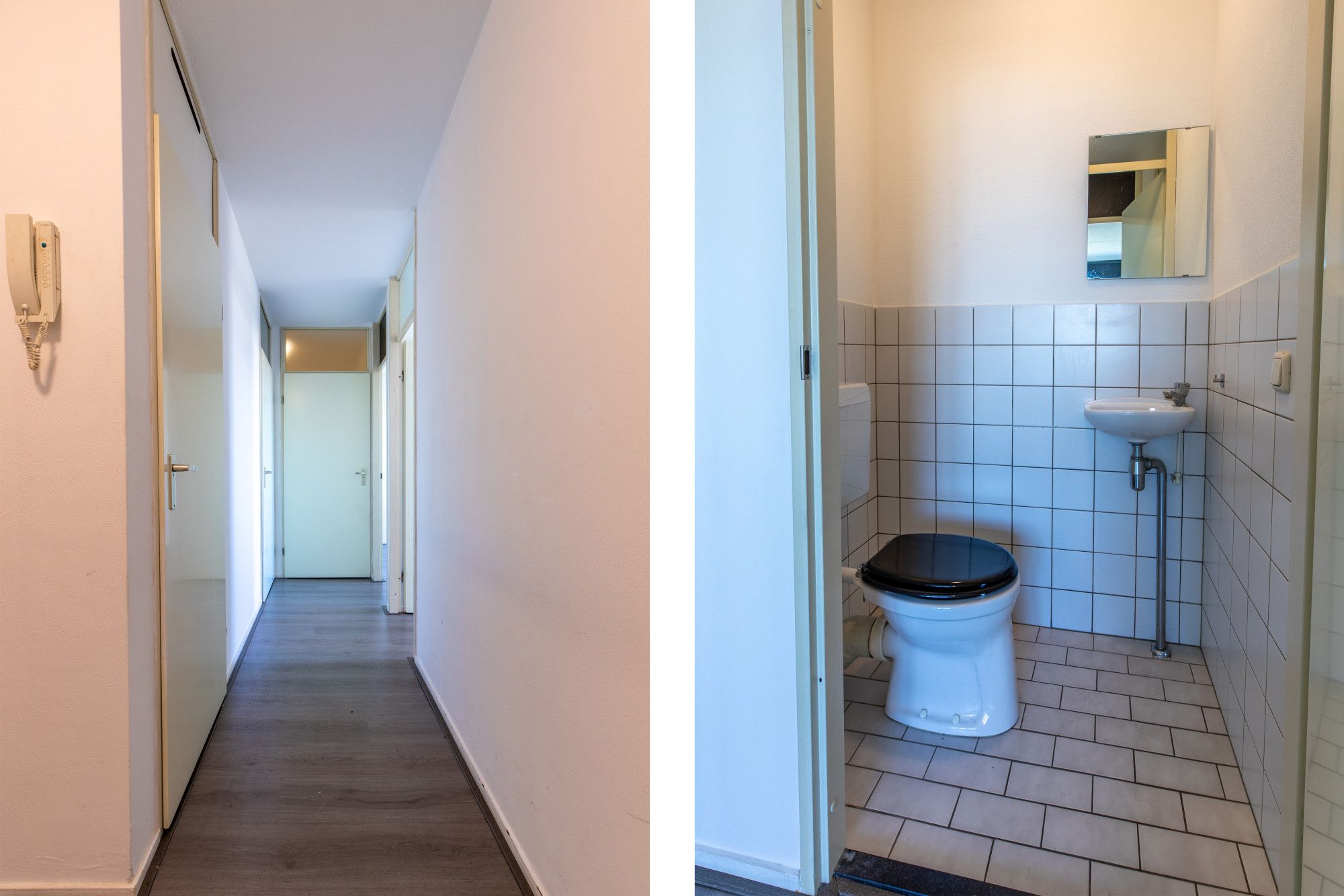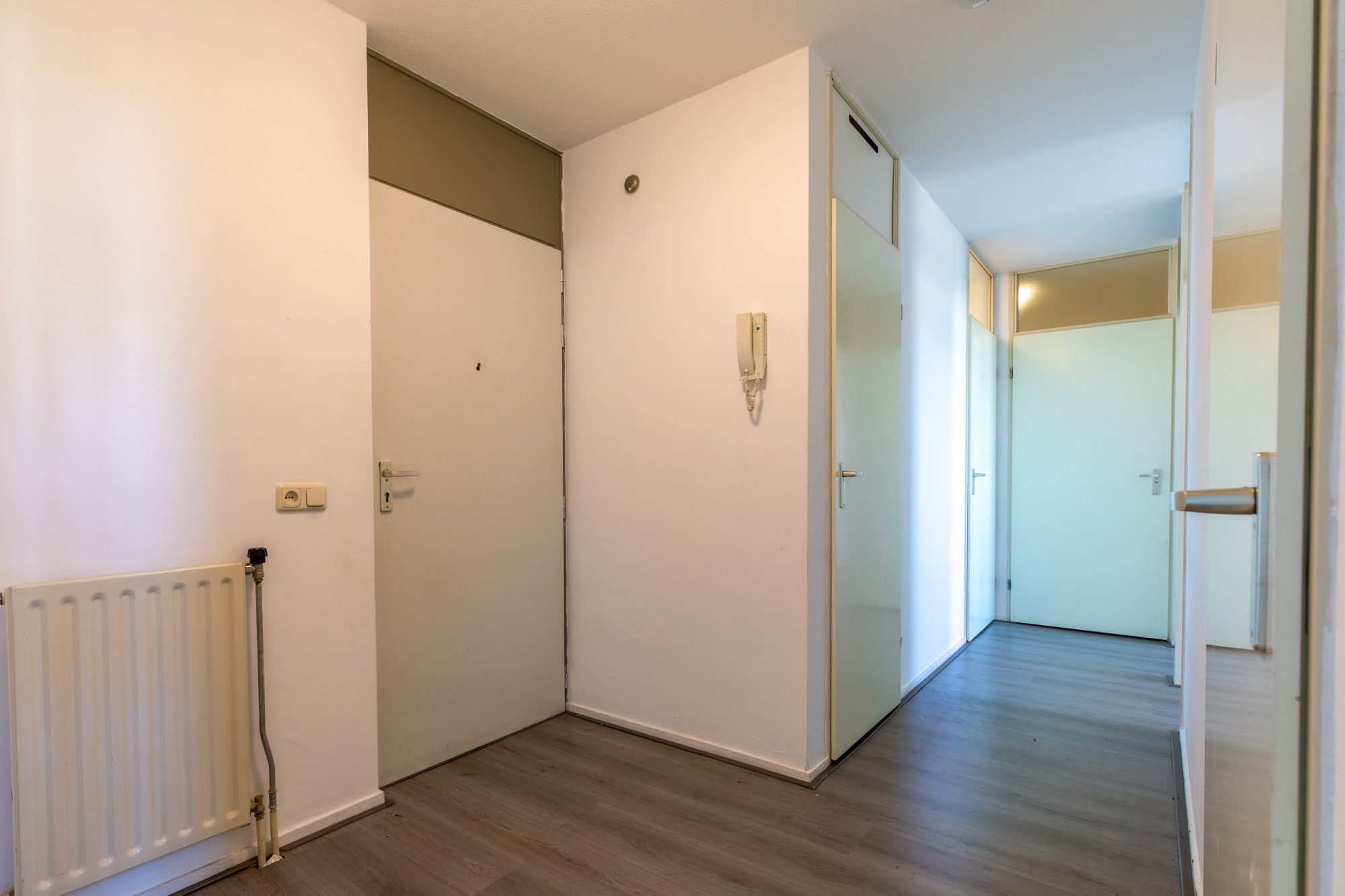 Verdeelhal met toegang tot de appartementen. Entree/hal met toegang tot alle vertrekken, deels betegelde toiletruimte met duoblok, fonteintje en techniekruimte alwaar CV installatie.