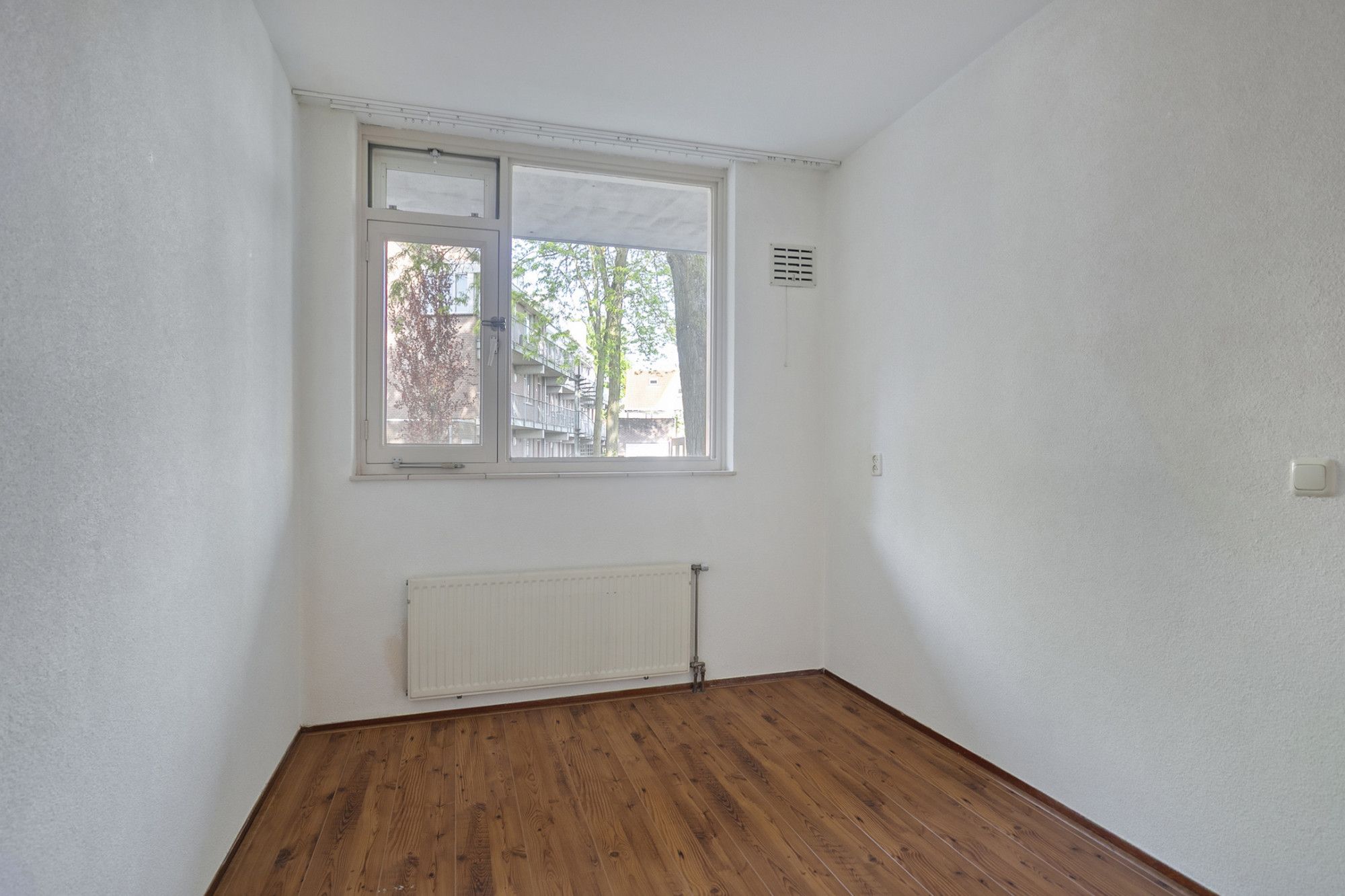 ruimtes: het toilet, de meterkast, cv-berging met cv-combiketel, aparte bergruimte en de lichte woonkamer met open keuken. Uiteraard zijn vanuit de hal ook de badkamer en de 2 slaapkamers toegankelijk.