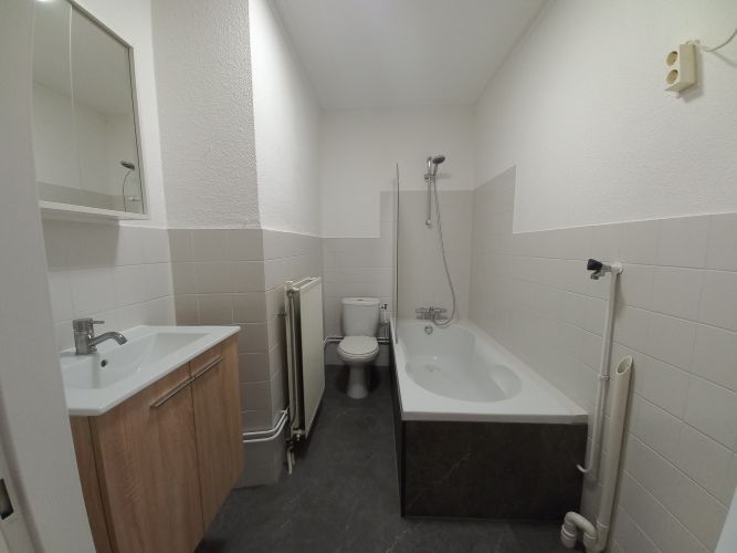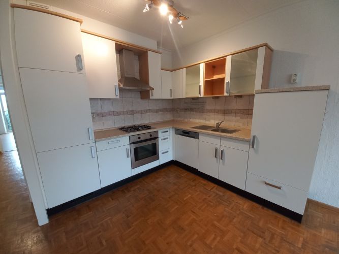 Welkom bij de Akerstraat 150E! Een net appartement met balkon in Kerkrade, in een goed onderhouden gebouw. Gelegen op de 3e, tevens bovenste etage, profiteer je van veel lichtinval en heb je geen bovenburen. Op de begane grond heb je de beschikking over een eigen parkeerplaats op een afgesloten binnenterrein en een berging. Het appartement is goed bereikbaar. In slechts enkele minuten ben je met de auto op de Euregioweg. Een bushalte is op loopafstand. Ook op loopafstand bevindt zich het Carboonplein met winkels en supermarkten voor je boodschappen. Indeling Ruime entree van het portiek. Met de trap bereik je de 3e etage waar de toegang is tot het appartement. Bij binnenkomst stap je in de centrale gang vanwaar je toegang hebt tot de woonkamer, slaapkamer, badkamer, een ruime opbergkast, de meterkast en de ruimte met CV-ketel. De woonkamer met open keuken van in totaal ca. 28m² heeft een grote raampartij die zorgt voor veel natuurlijke lichtinval. De hoekkeuken met veel kastruimte is uitgerust met een gaskookplaat, elektrische oven, vaatwasser (2024), koelkast en rvs-schouw. De slaapkamer van ca. 12m² biedt toegang tot het balkon en is voorzien van een nieuwe laminaatvloer. De balkondeur beschikt over een rolluik; ideaal voor zonwering, privacy en extra wooncomfort. De badkamer, voorzien van een nieuwe vloer, beschikt over een ligbad, nieuw wastafelmeubel, toilet en een radiator. Op de begane grond is er een eigen parkeerplaats op het afgesloten binnenterrein. Hier heb je ook toegang tot een eigen berging. Ben je benieuwd naar dit leuke en nette appartement?