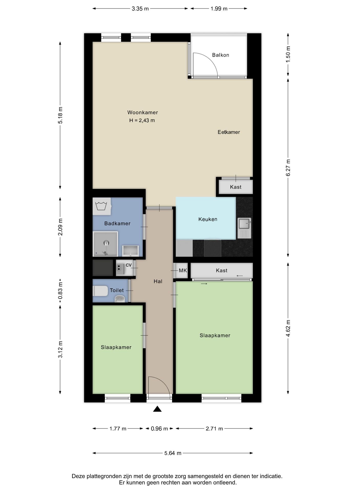 Alle door ons kantoor verstrekte informatie omtrent onroerende zaken, moet beschouwd worden als een uitnodiging om in onderhandeling te treden, en is geheel vrijblijvend! Alle vermelde maten en afmetingen zijn slechts bij benadering. Aan deze beperkte info kunnen geen rechten worden ontleend. Indien in enige documentatie of op enige website informatie staat die niet overeen komt met de werkelijkheid, dan geldt de feitelijke situatie waarin de woning zich bevindt, zoals koper deze tijdens de bezichtiging heeft kunnen waarnemen, en wordt de woning in deze feitelijke situatie/staat verkocht. Een (eventueel) bijgevoegde plattegrond dient uitsluitend als globale indicatie/visualisatie. Hieraan kunnen uitdrukkelijk geen rechten worden ontleend.