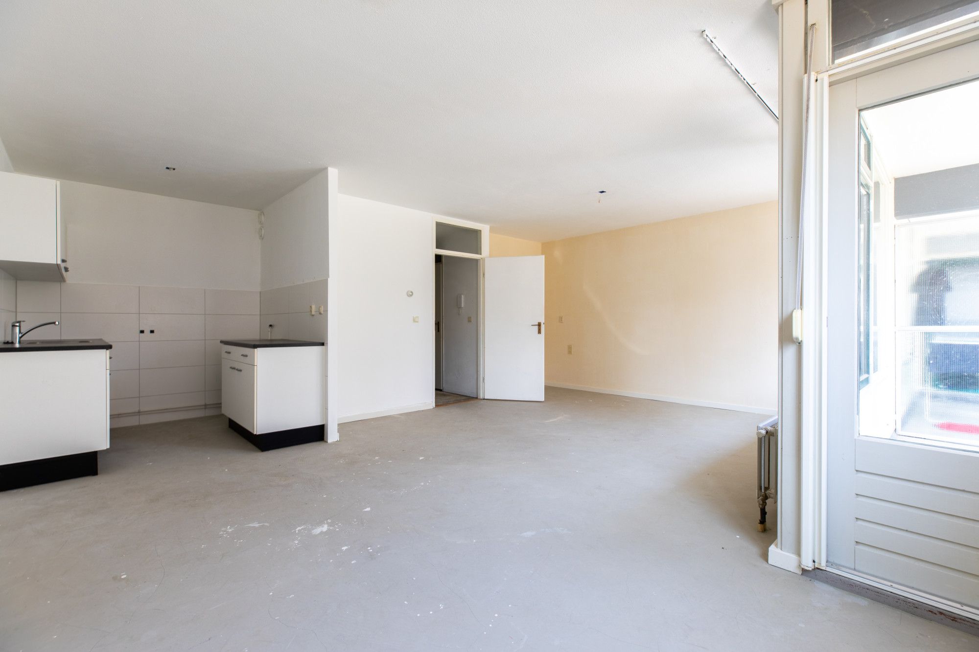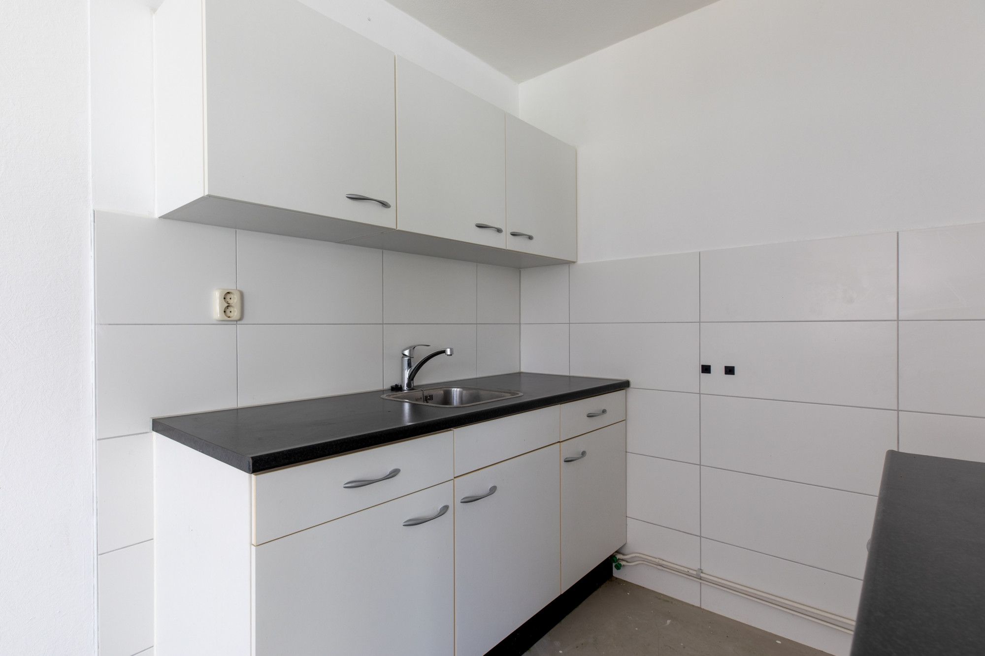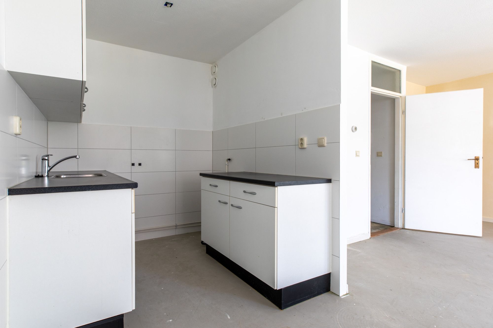 Vanuit de parkeerplaats direct toegang tot het appartement. Hal met toegang alle ruimtes. Woonkamer met toegang balkon en keukenhoek met witte keukeninstallatie met diverse onder- en bovenkasten.