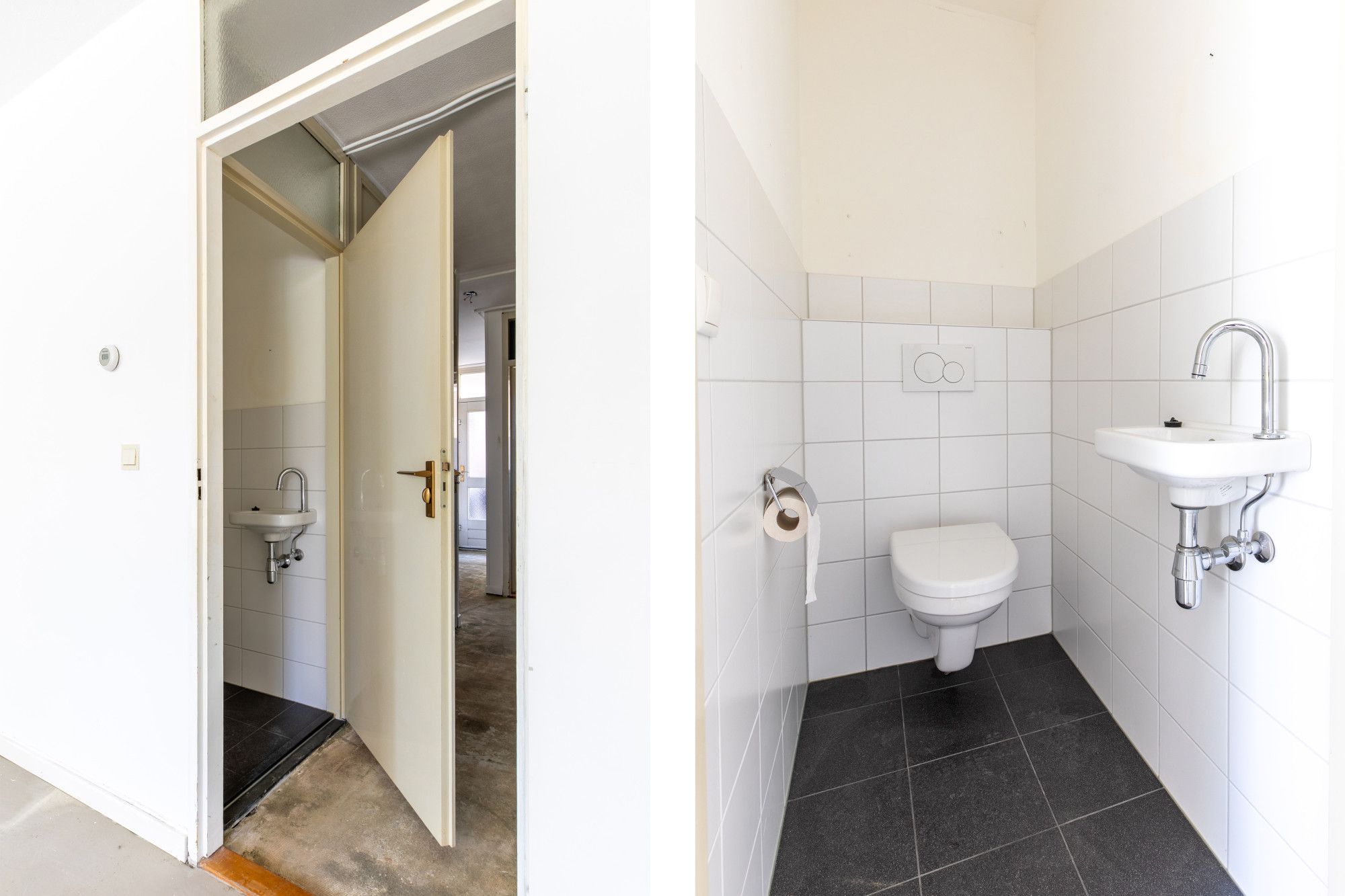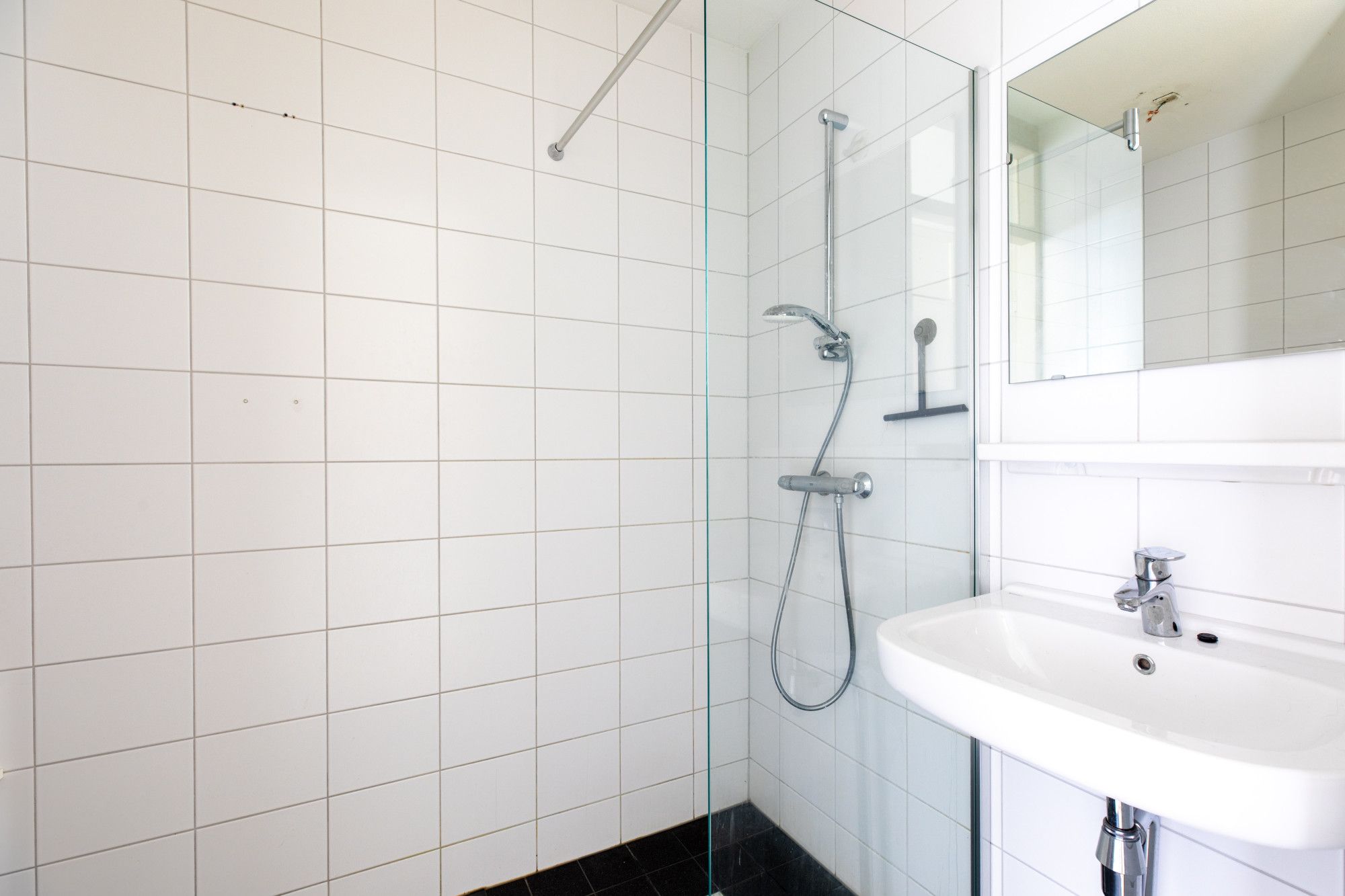 Moderne badkamer met inloopdouche, wastafel en witgoed aansluiting. Separate toiletruimte voorzien van wandcloset en fonteintje.