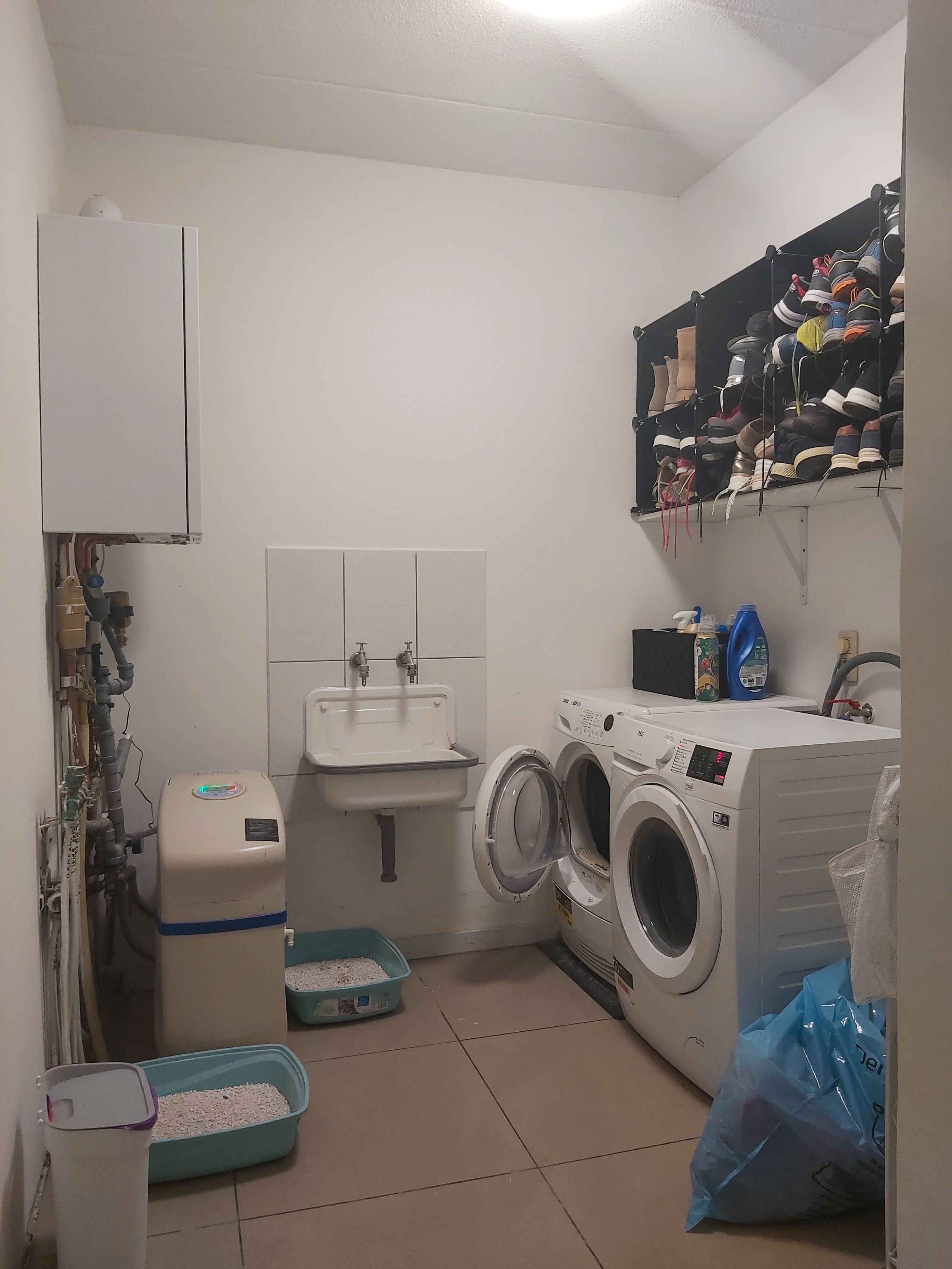 Praktisch gemak staat centraal met een ruime berging voorzien van aansluitingen voor wasmachine en droogkast. Hier bevindt zich ook de recent vernieuwde Vaillant ketel (2024) op aardgas en een waterontkalker.
