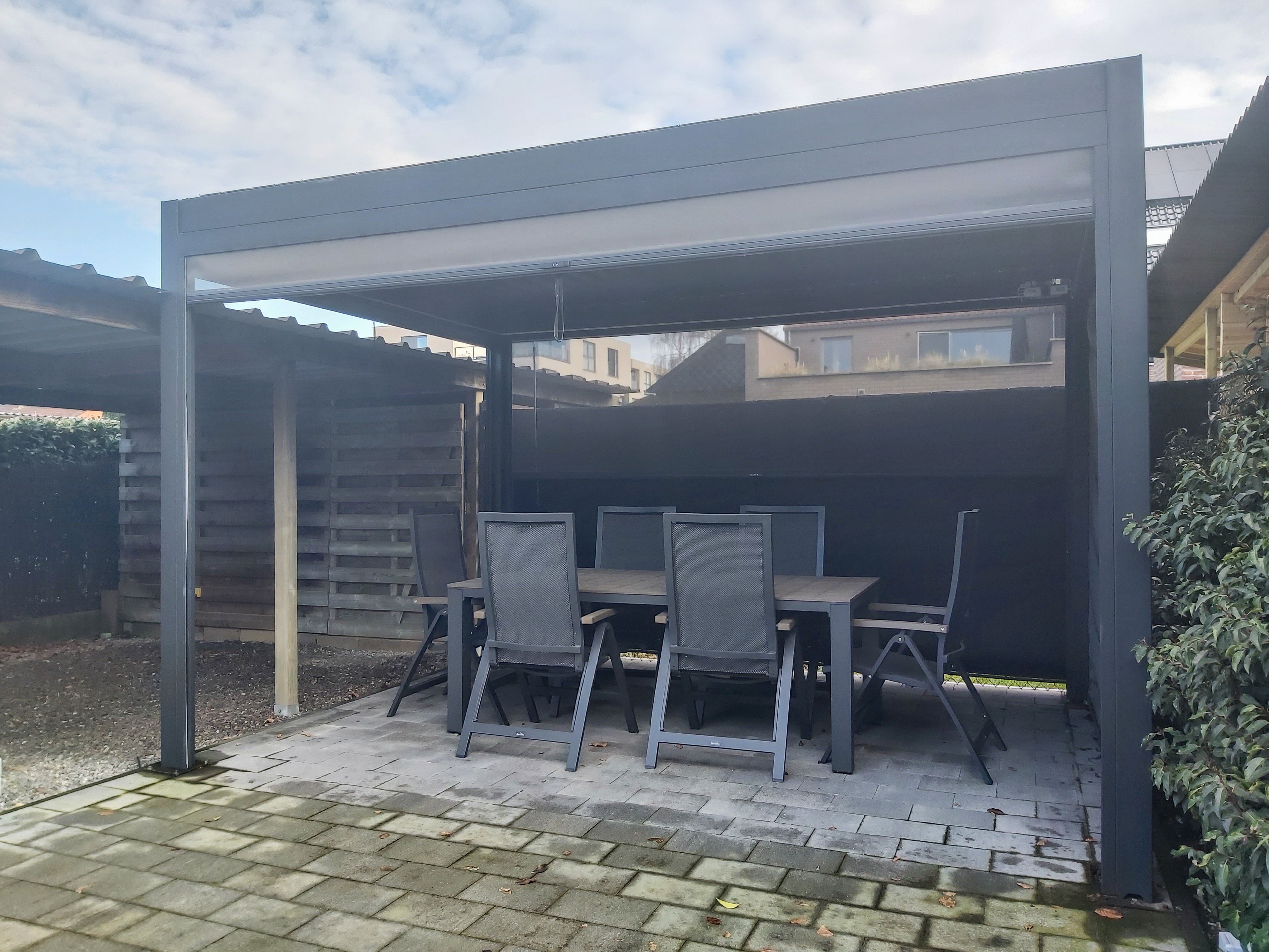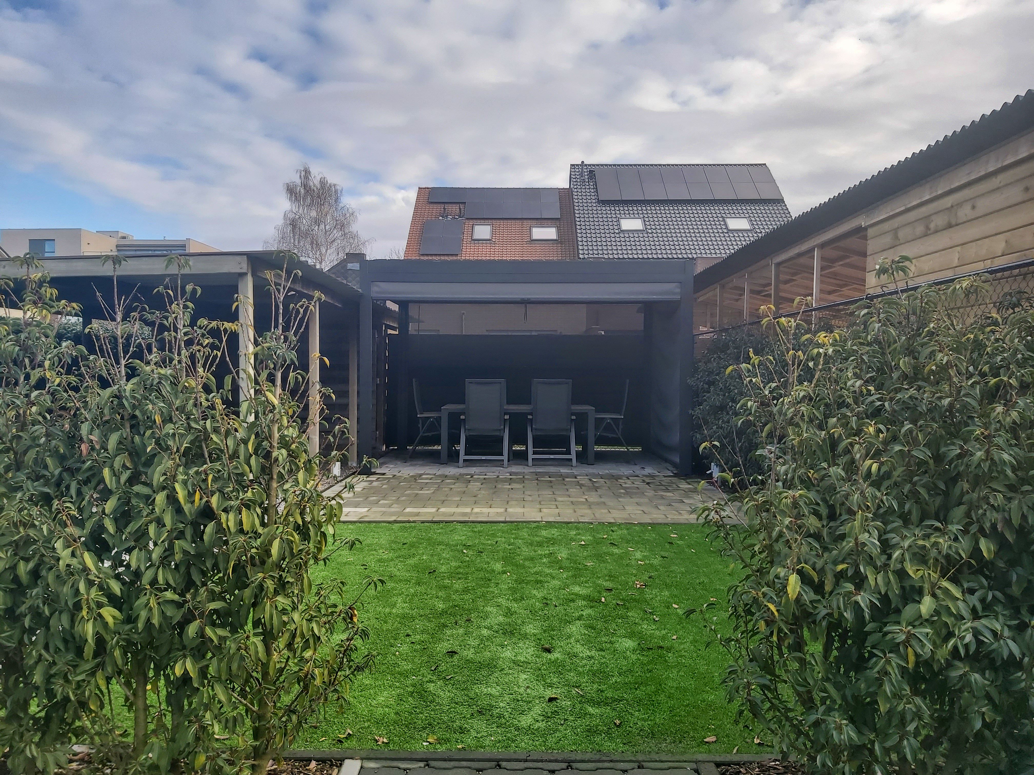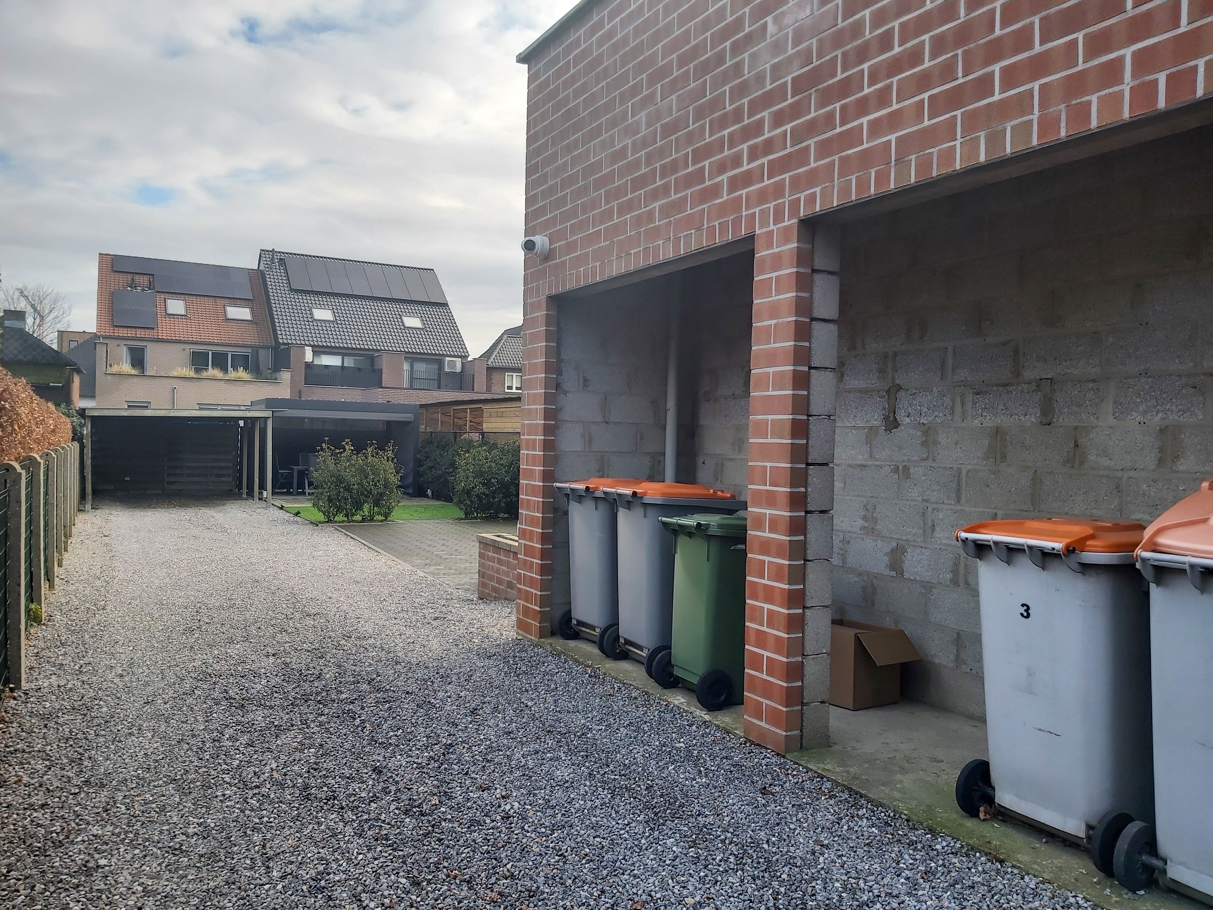 Aan de buitenzijde is er een oprit naar achteren, die toegang biedt tot de twee afgesloten garages met elektrische poorten. Het appartement beschikt bovendien over een klein tuintje met kunstgras en een mooi terras met overkapping en screens, ideaal om te genieten van de zon en het buitenleven!