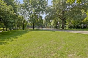 - Grotendeels betegelde badkamer van circa 4 m² met douche, toilet, wastafel en aansluiting wasmachine.