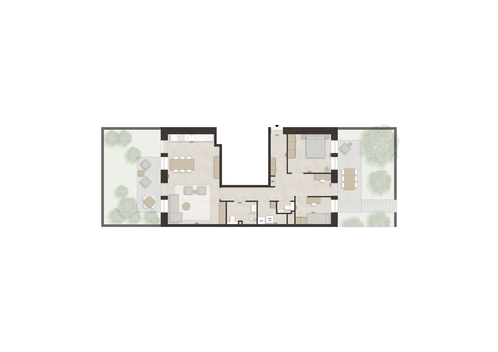 Op de begane grond van COUR bevinden zich de Lofts du COUR-woningen: royale tuinwoningen met een ongekend gevoel van vrijheid. Door de hoge plafonds en royale ramen ademt elke loft licht en openheid. De woningen beschikken over een eigen voor- én achtertuin, met uitzicht op zowel de groene loper als de rustige binnentuin.