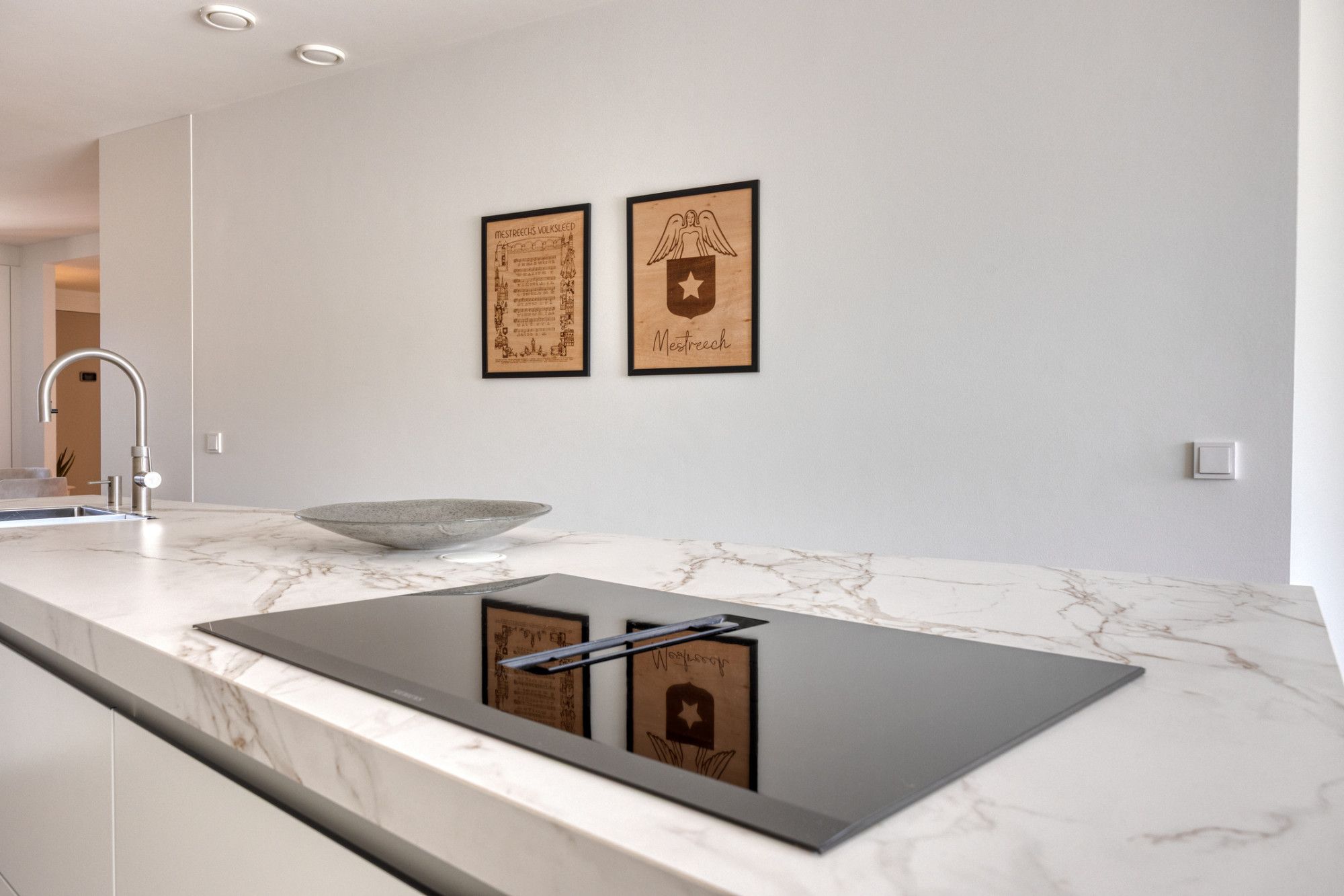 keramisch werkblad en ingebouwde Siemens inductiekookplaat met ingebouwde afzuiging, grote combi-