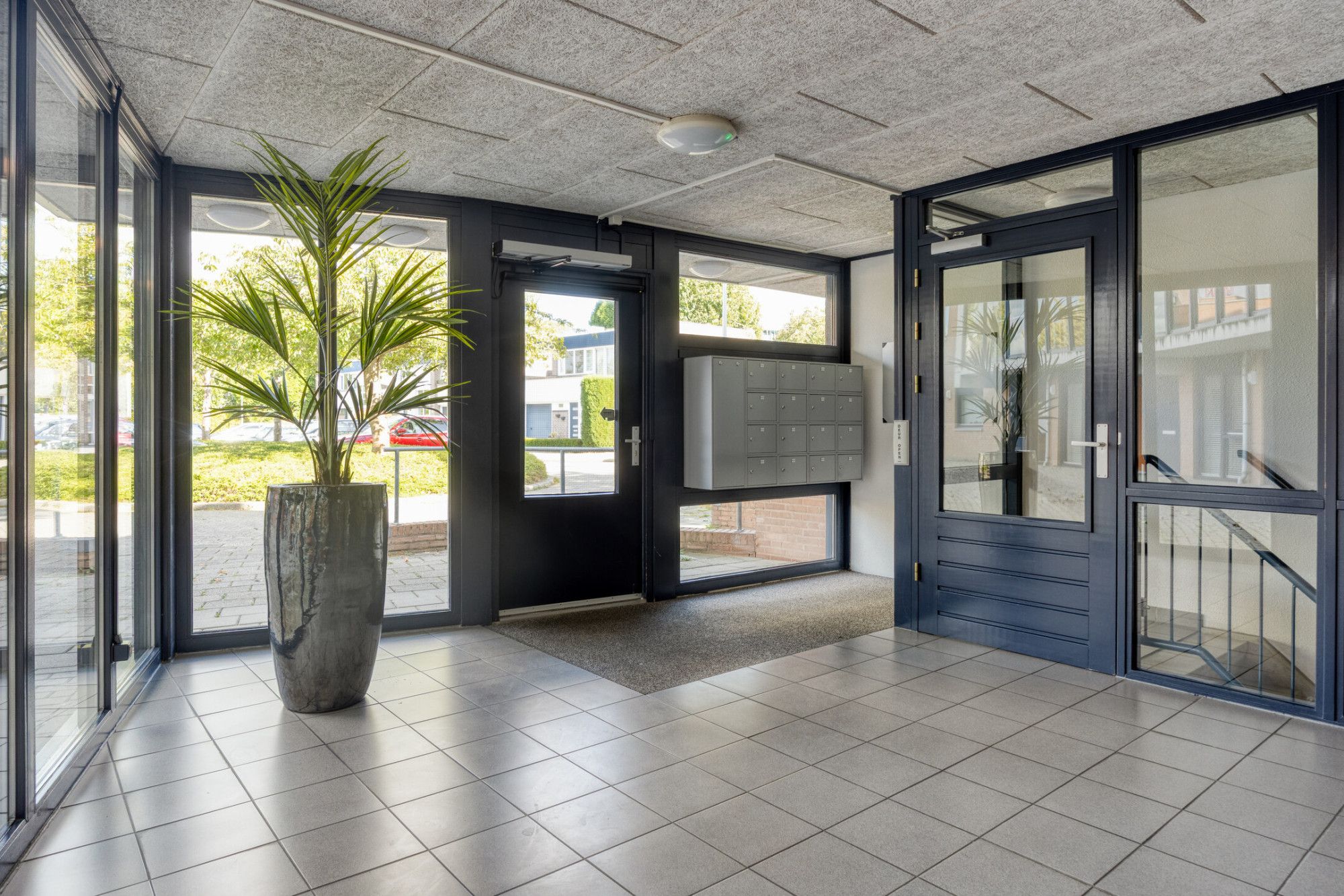 Centrale afgesloten entree met intercom, briefkasten, lift en trappenhuis.