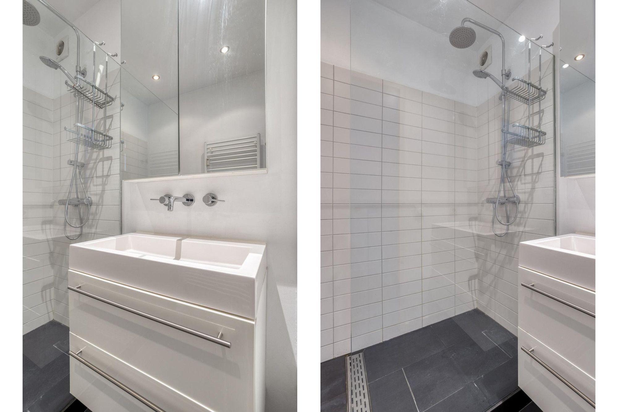 Het appartement beschikt over twee slaapkamers (resp. ca. 12 en 10 m²). De badkamer is modern uitgevoerd met een inloop regendouche, stijlvol wastafelmeubel en handdoekradiator. Separaat toilet met inbouwreservoir en fonteintje.